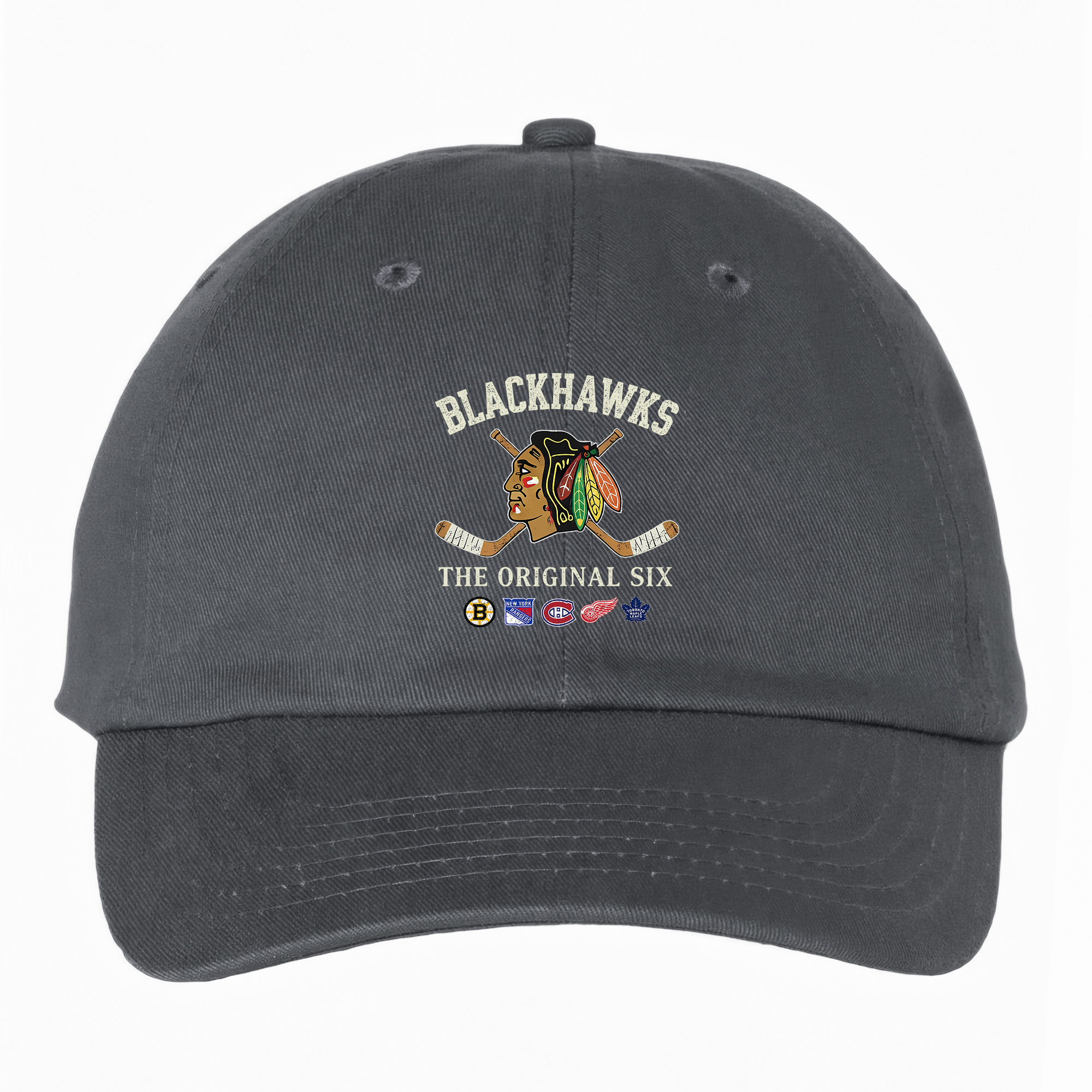 A vintage classic! This Chicago Blackhawks Dad Hat pays tribute to "The Original Six" with a bio-washed finish and all six founding team logos.