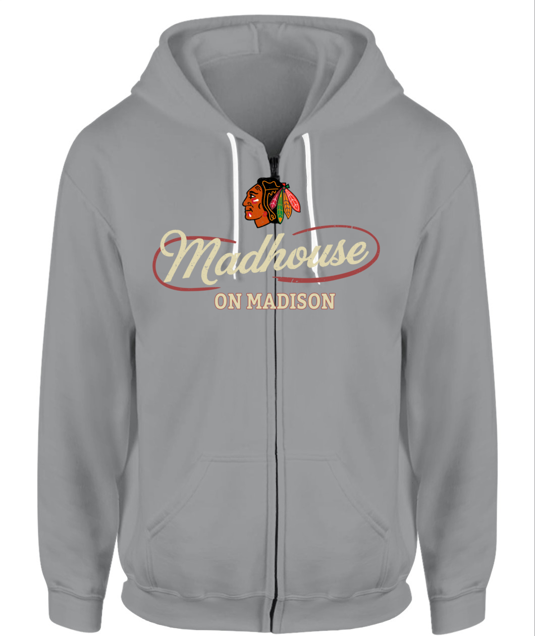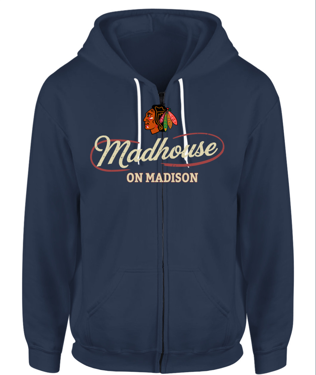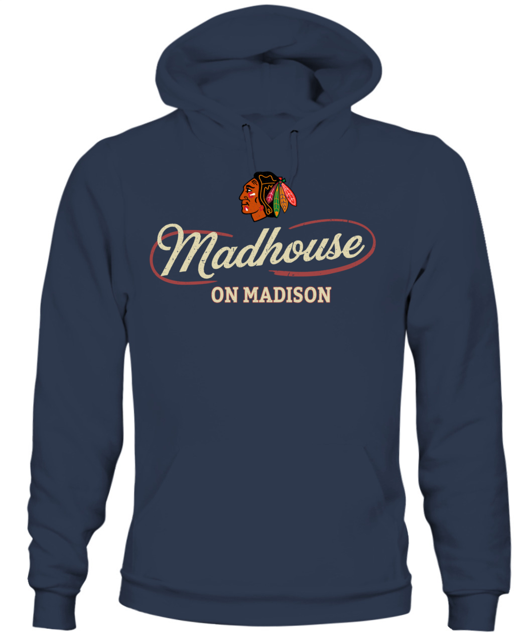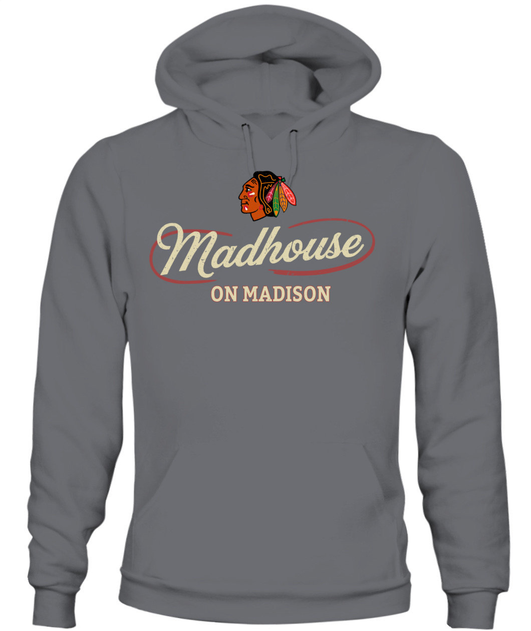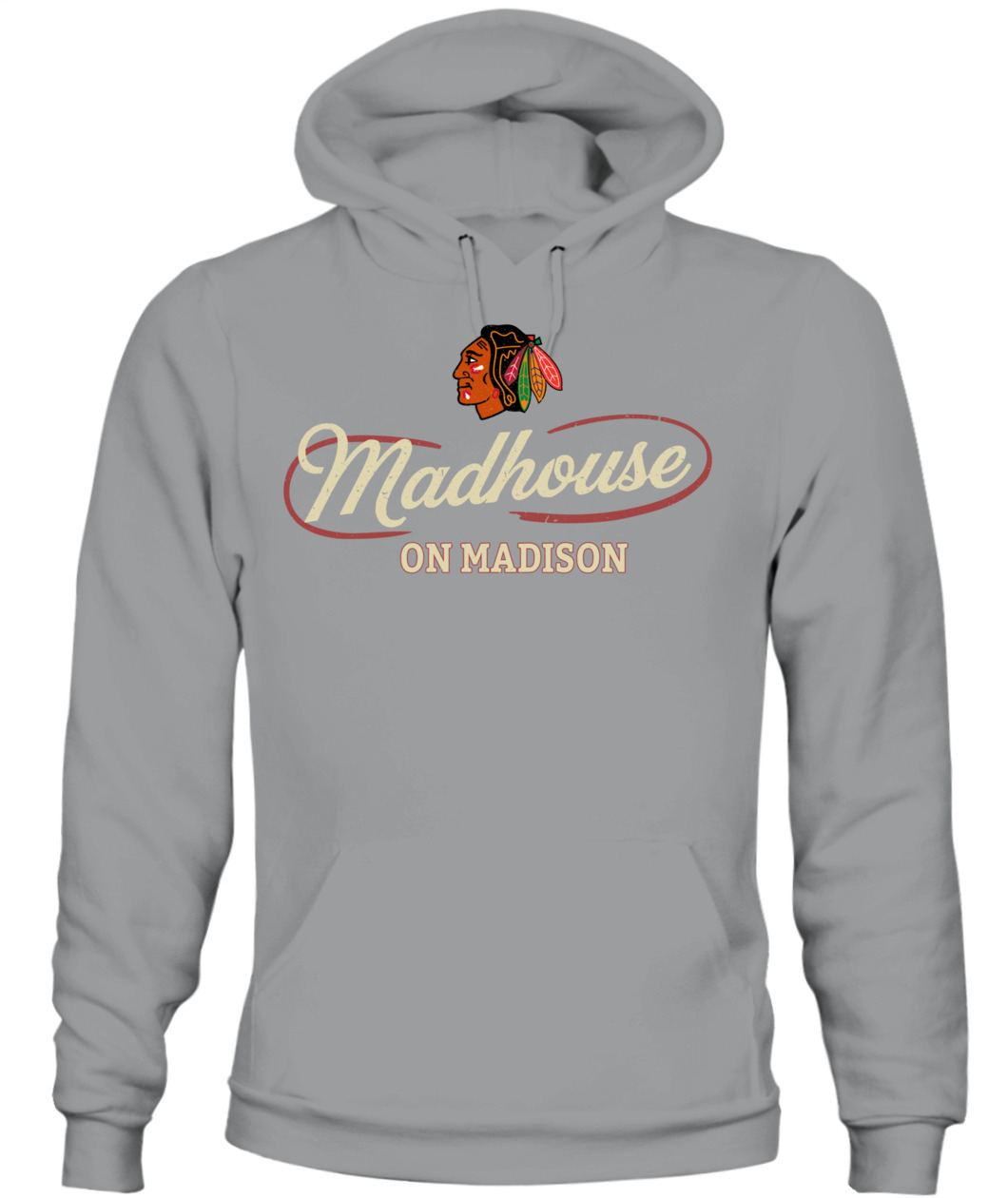 Celebrate the chaos, pride, and energy of Chicago hockey with the Madhouse on Madison Hoodie — where every fan’s heart beats loudest. 🔥🏒