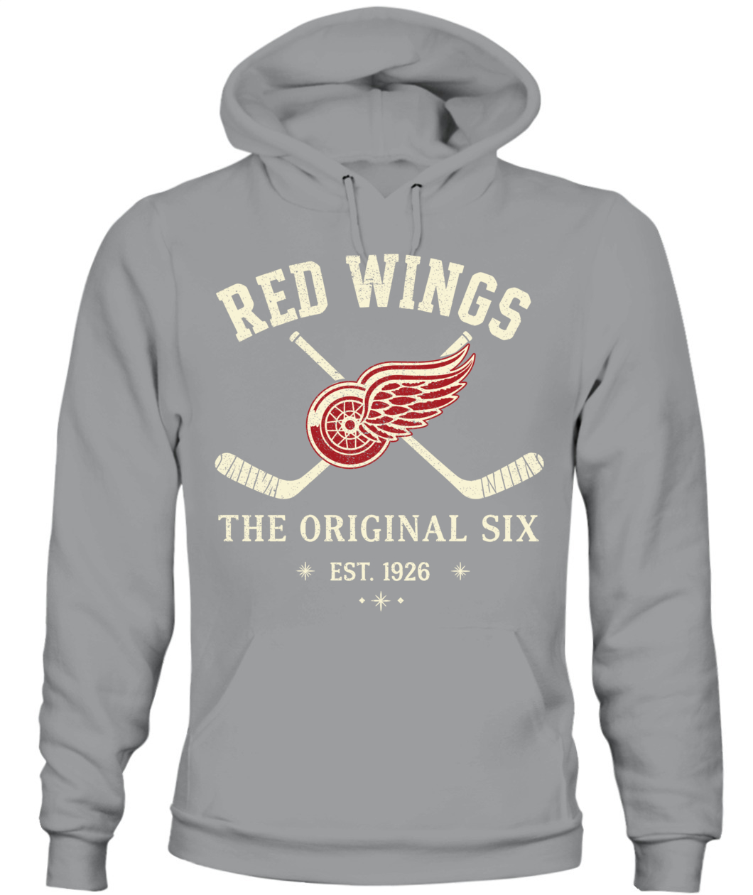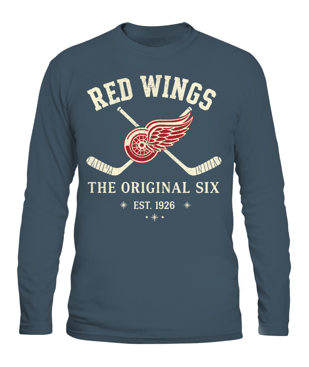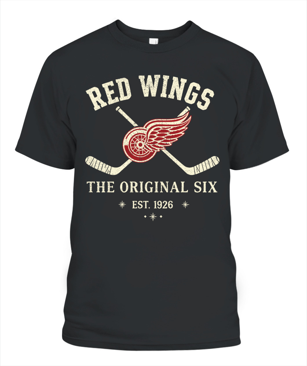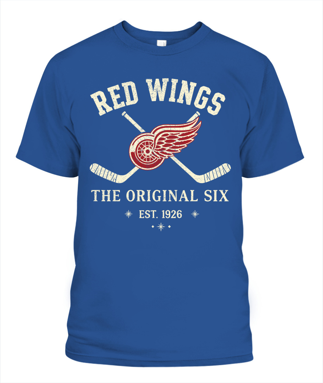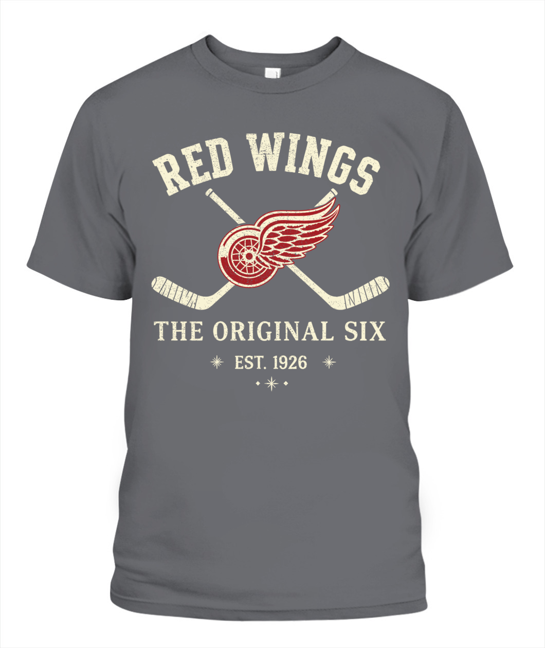 The “Original Six” Detroit Red Wings Tee celebrates the heart of Hockeytown — timeless design, championship heritage, and the enduring pride of Detroit.