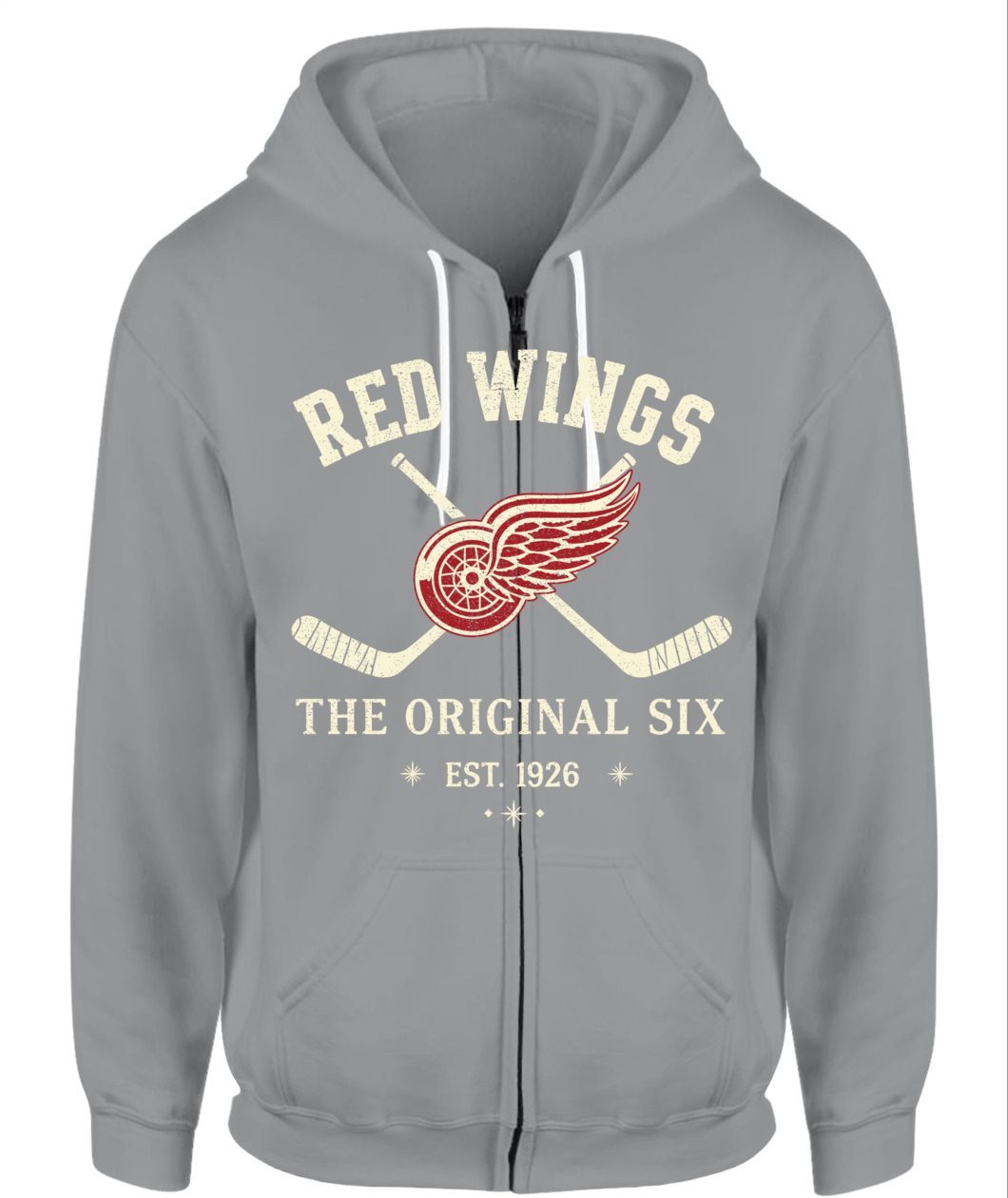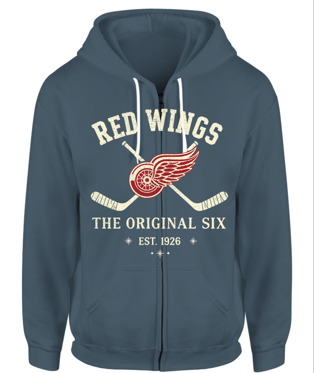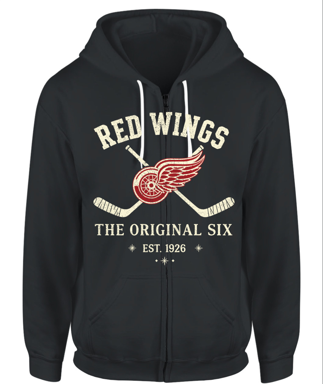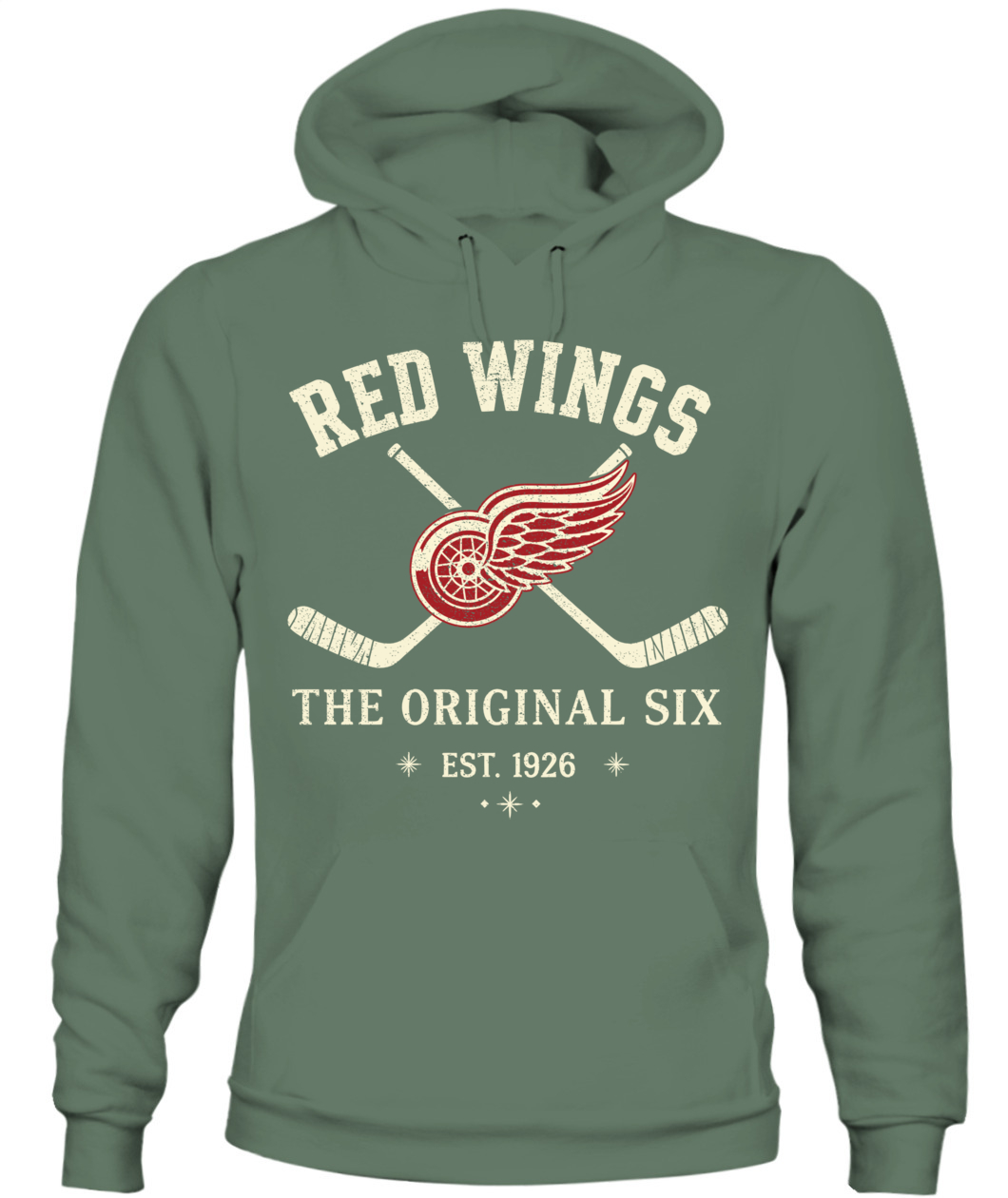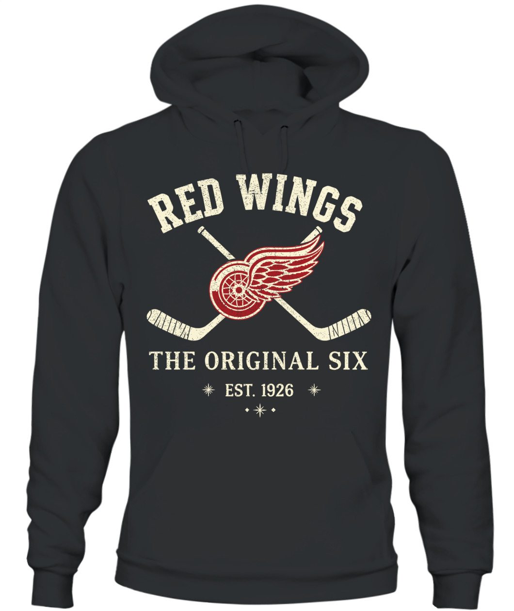 The “Original Six” Detroit Red Wings Tee celebrates the heart of Hockeytown — timeless design, championship heritage, and the enduring pride of Detroit.