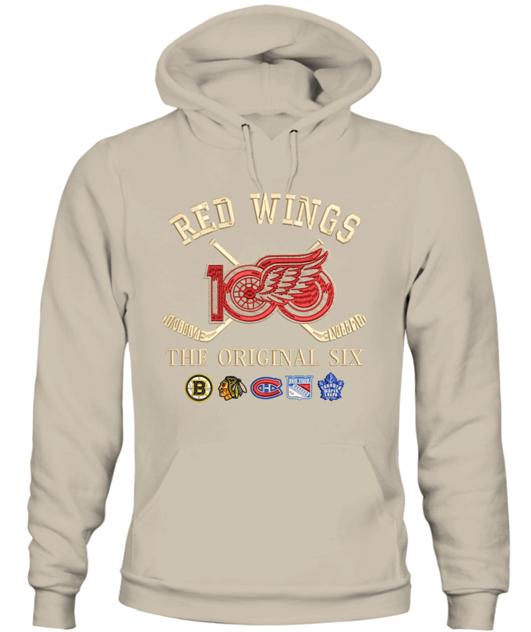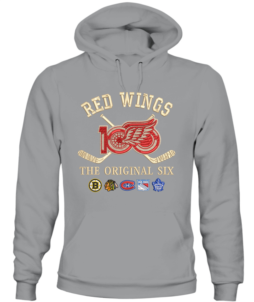 The pinnacle of Hockeytown heritage! This Detroit Red Wings Hoodie features premium real embroidery of the 100th Anniversary logo and the full Original Six lineup. A heavy-duty classic for the ultimate fan.