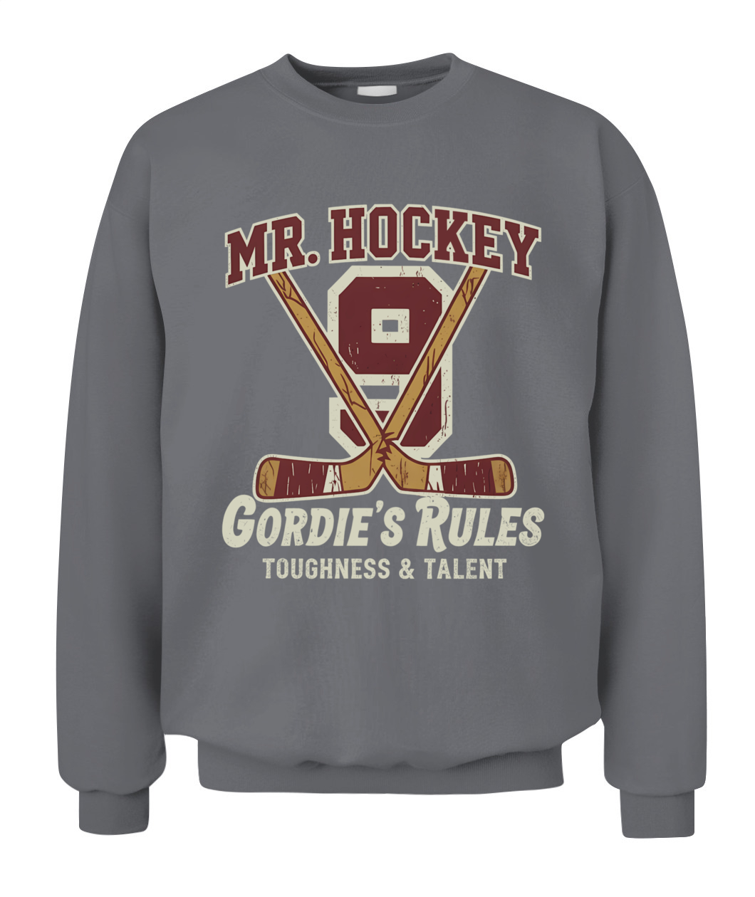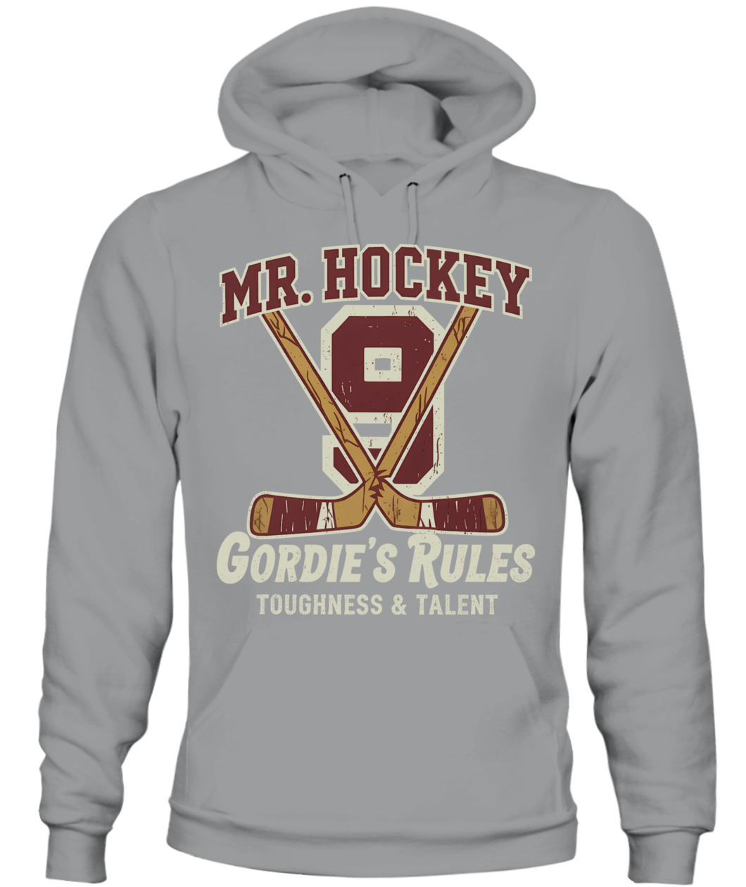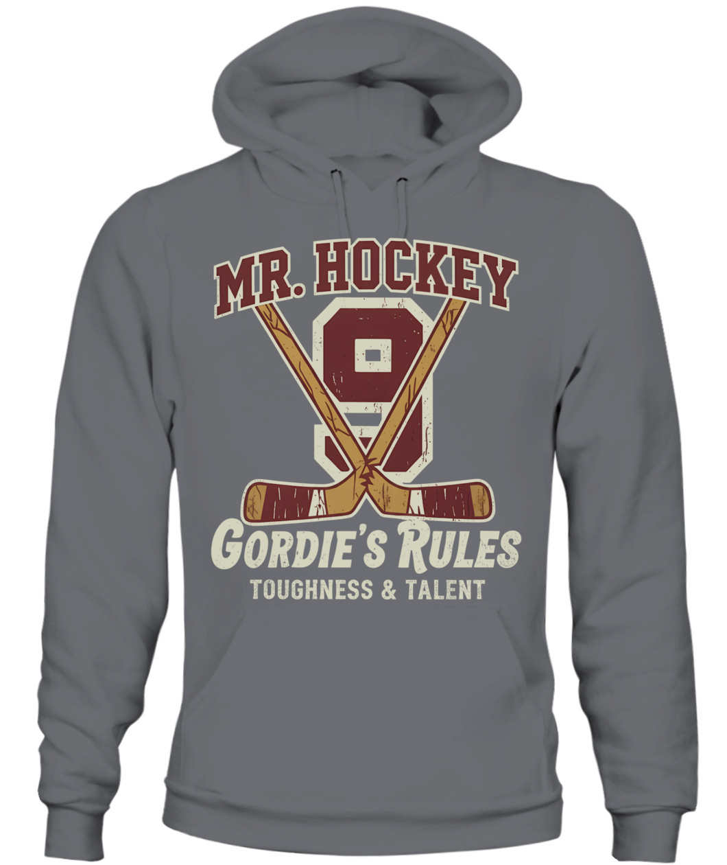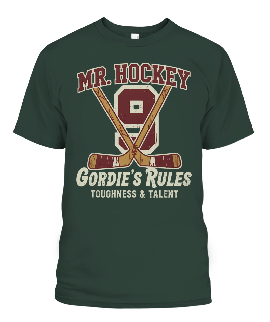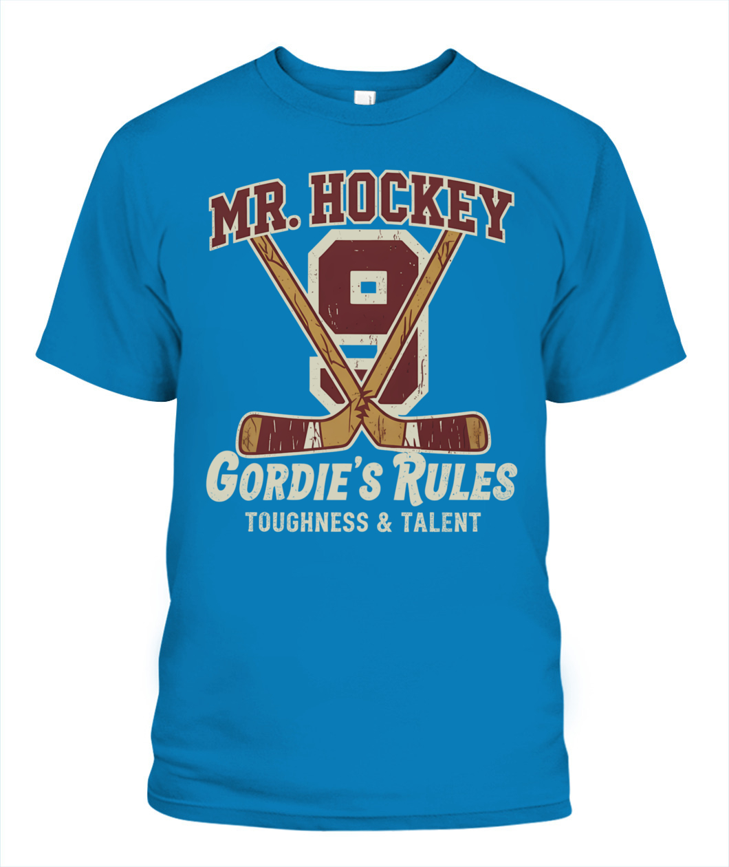 Honor the legend of No. 9 with the Gordie Howe “Mr. Hockey” Tribute Tee — a vintage salute to toughness, talent, and timeless greatness.