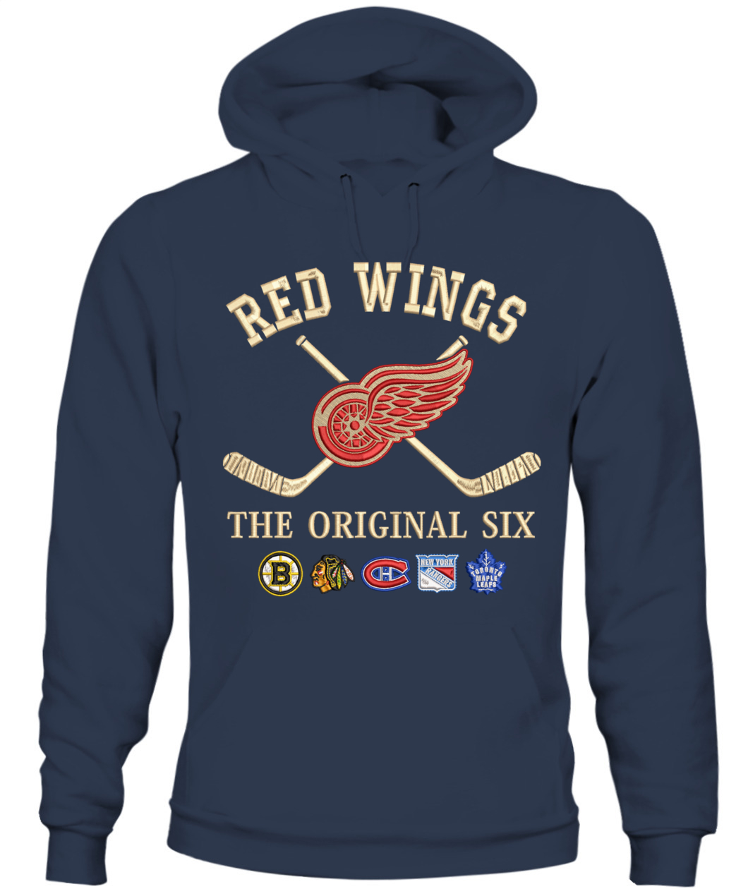 Hockeytown's ultimate statement! This Detroit Red Wings Hoodie features premium real embroidery of the Winged Wheel and the full Original Six lineup. Crafted for those who demand the highest quality heritage gear. 🐙🏒