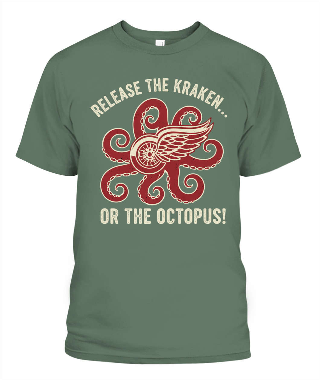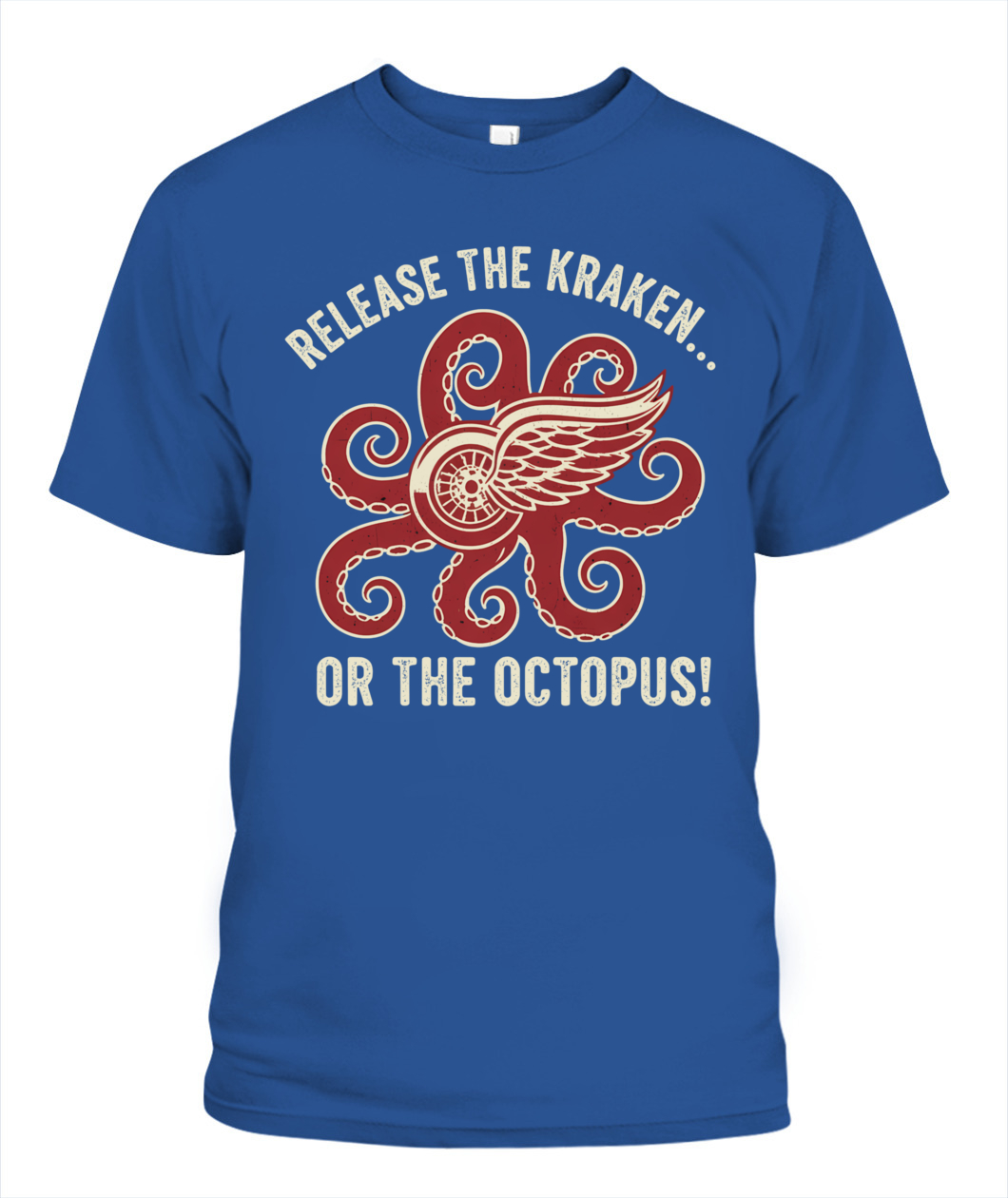 Honor Detroit’s wildest hockey tradition with the Release the Kraken... or the Octopus! Tee — where humor meets Motor City pride