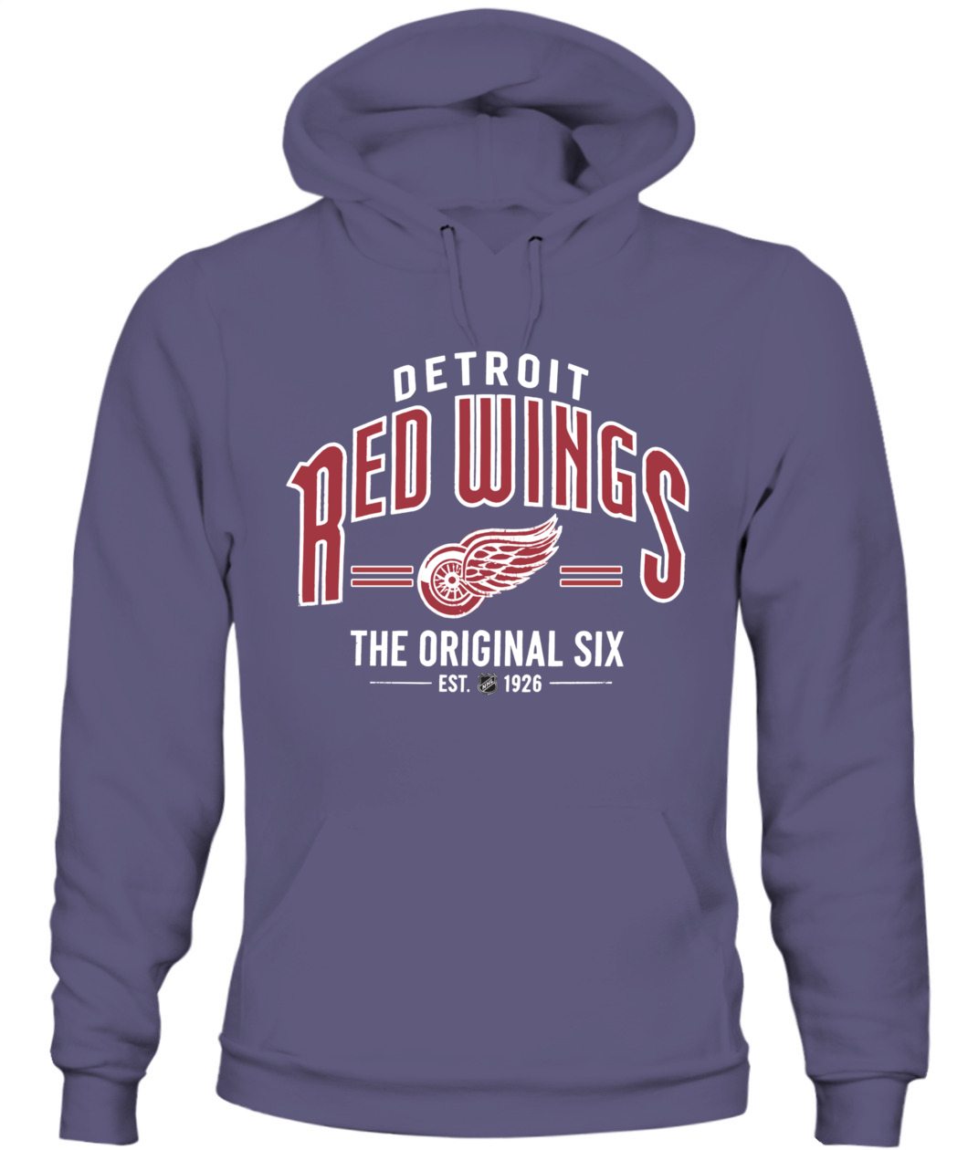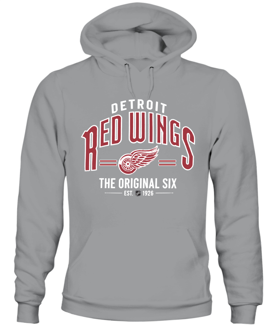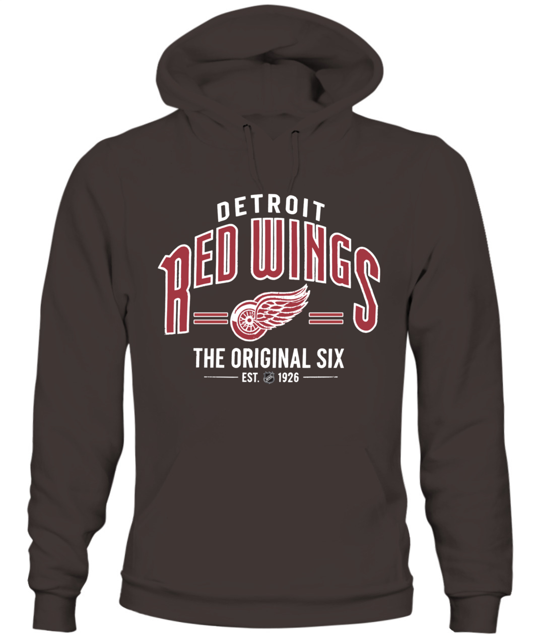 Honor Detroit’s Original Six legacy with this vintage-style hoodie. Features the Winged Wheel logo, "EST. 1926," and classic collegiate lettering—a true symbol of Red Wings pride. 🏒🔥