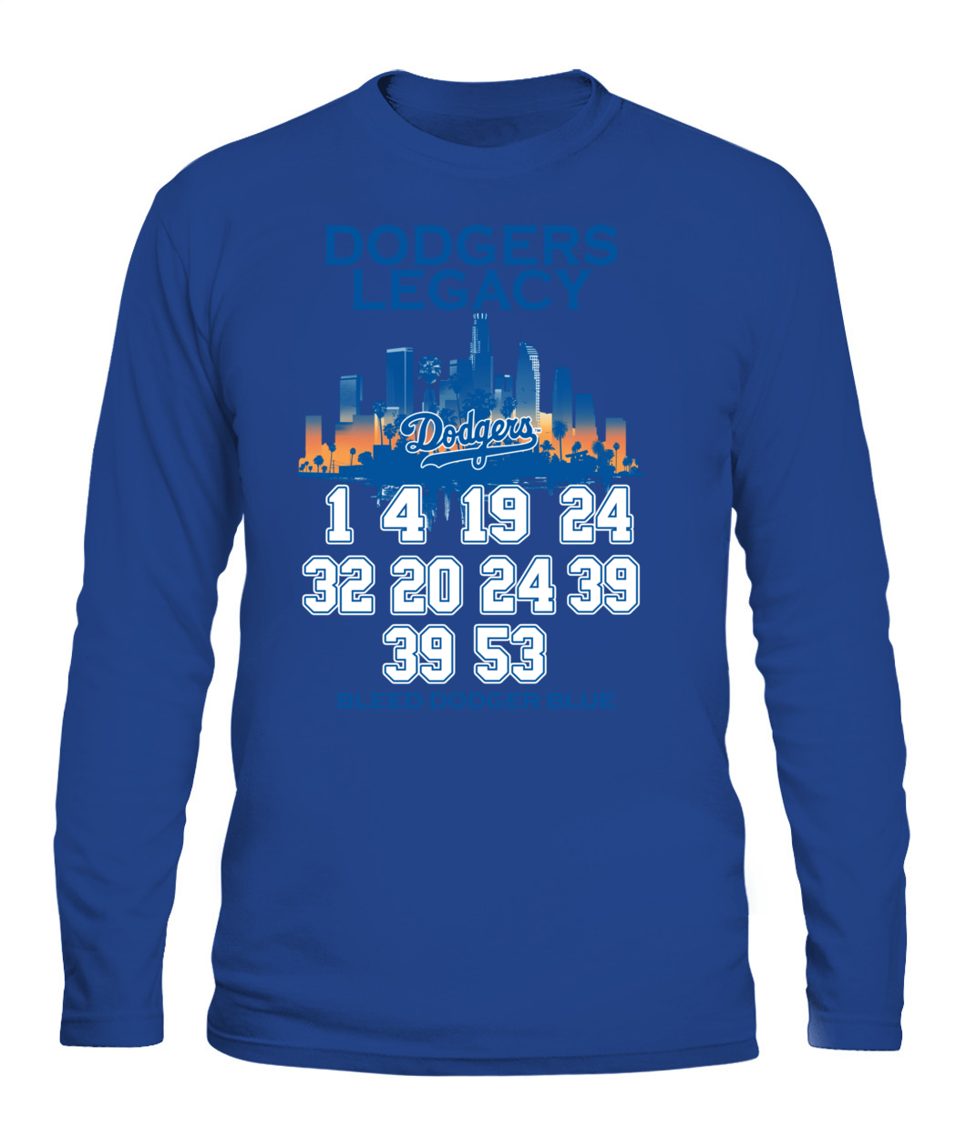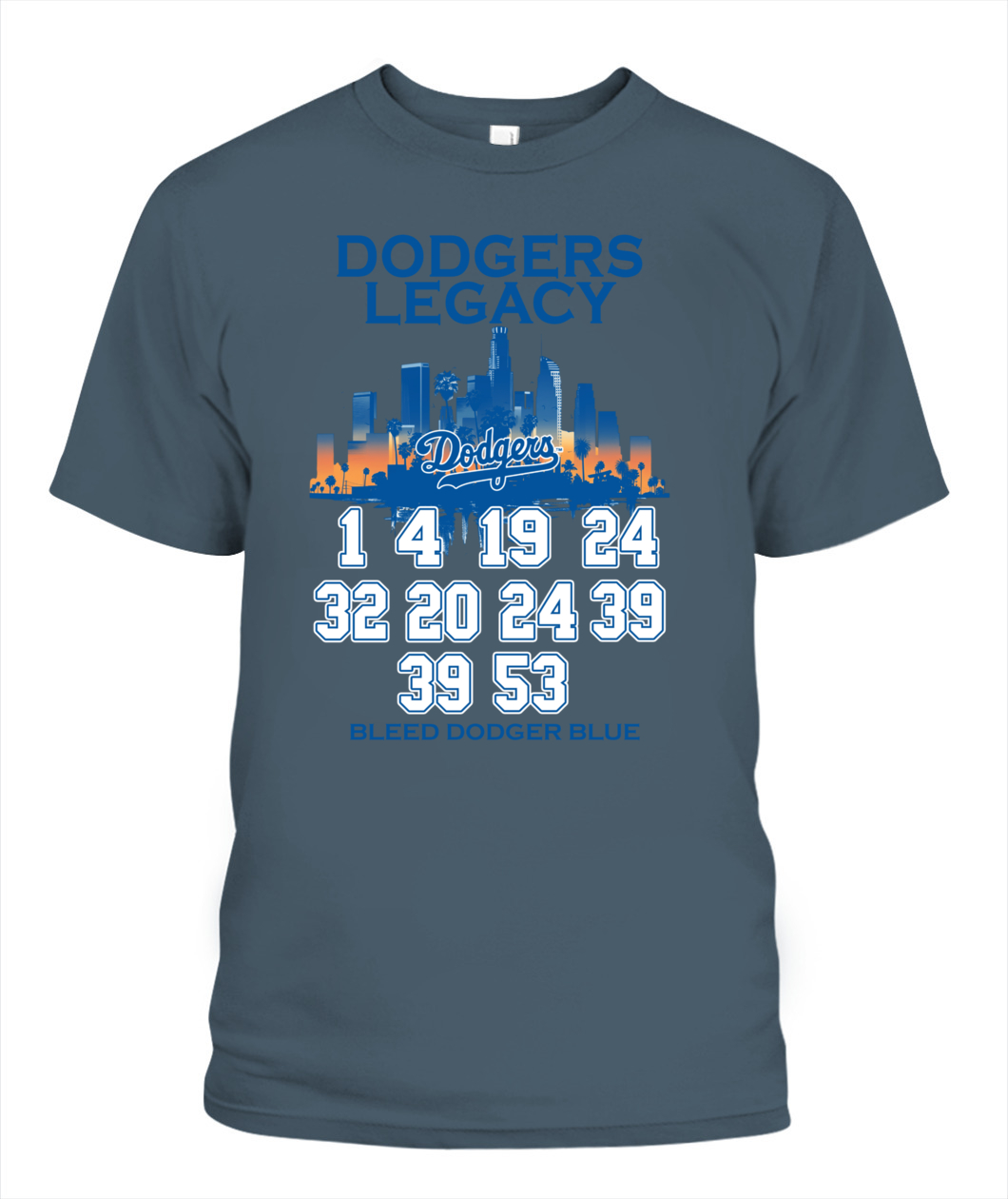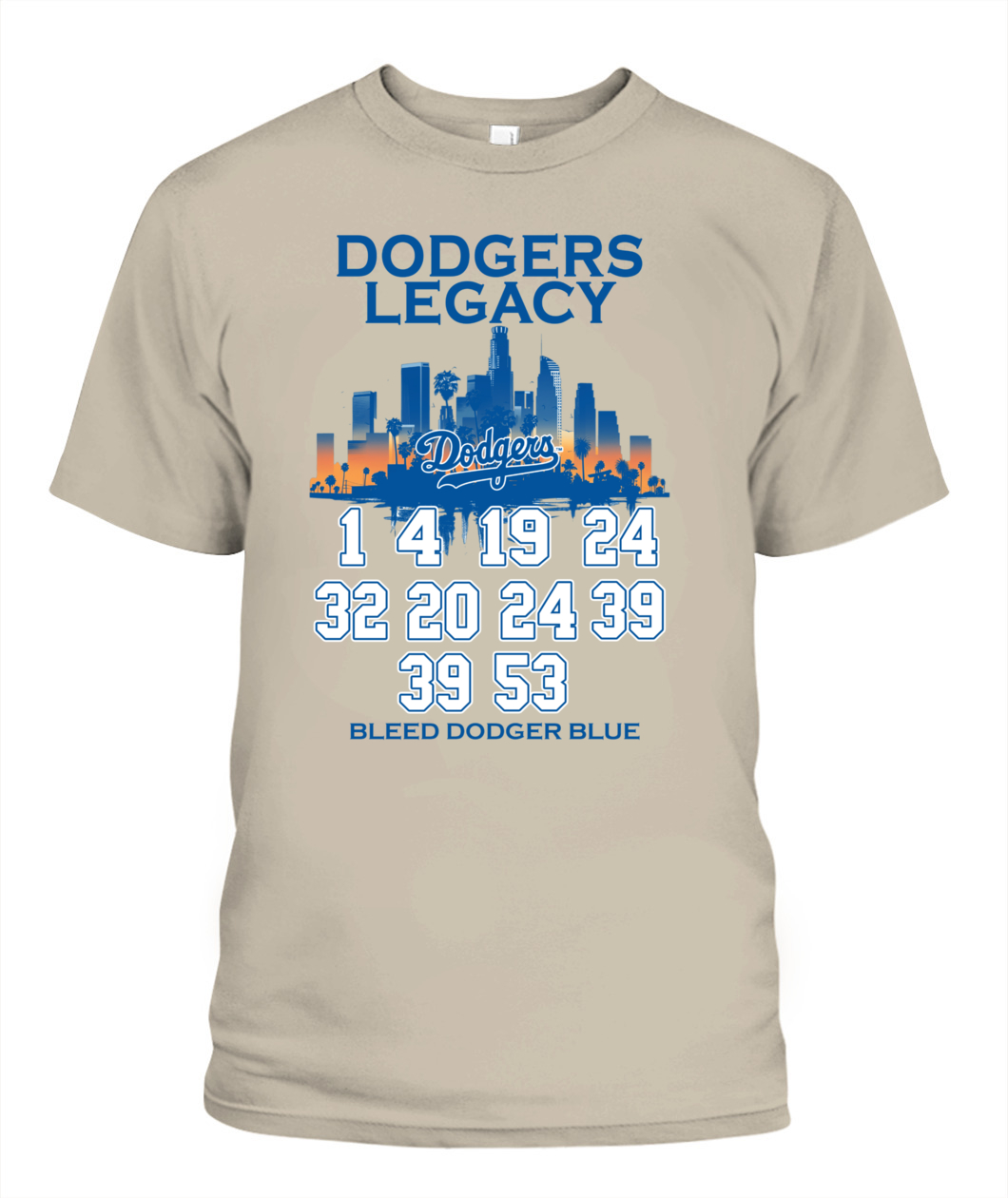 Rep the legends of Dodger Blue with this LEGACY NUMBERS tee — featuring LA’s skyline and the team’s iconic retired numbers. A true tribute to Dodgers history