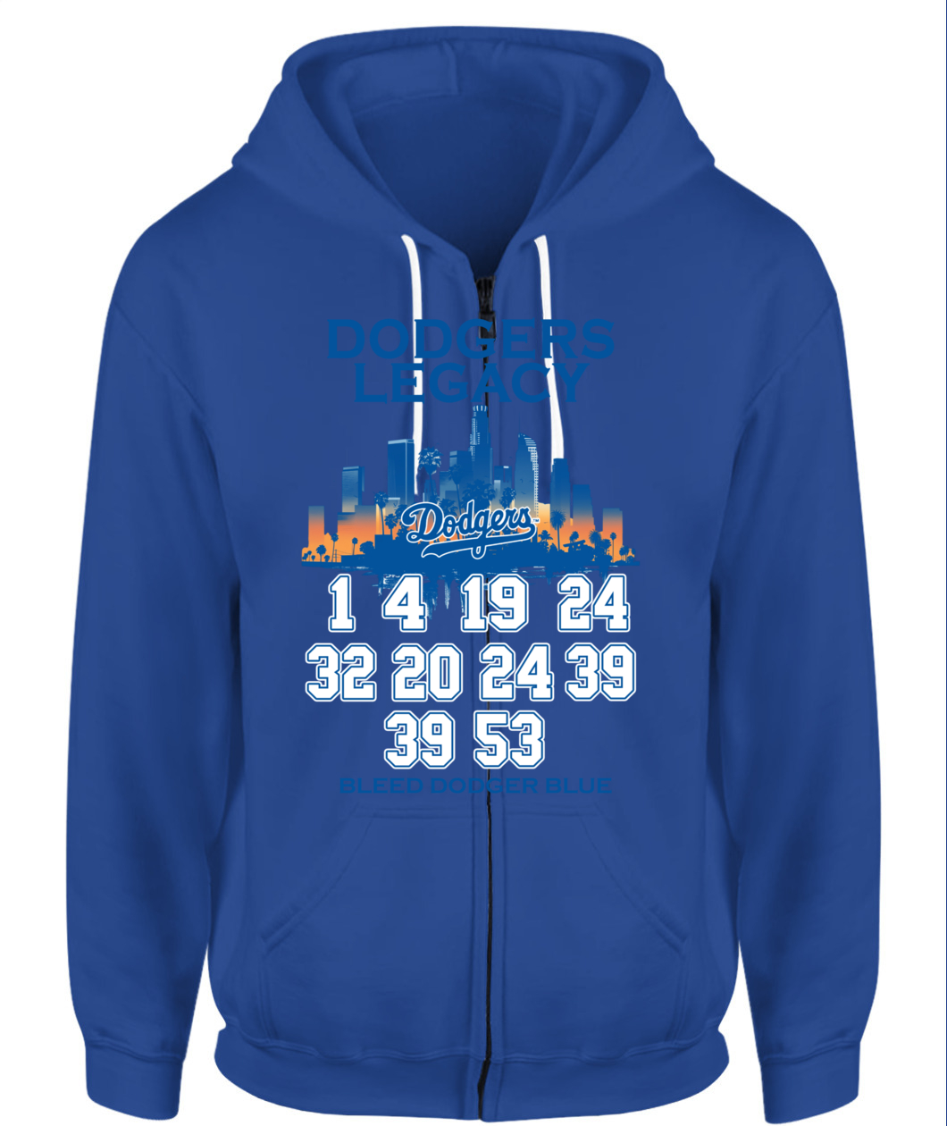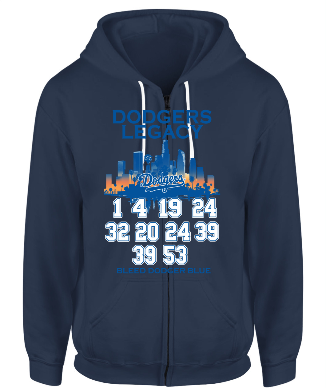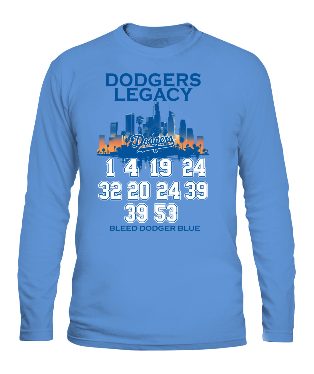 Rep the legends of Dodger Blue with this LEGACY NUMBERS tee — featuring LA’s skyline and the team’s iconic retired numbers. A true tribute to Dodgers history