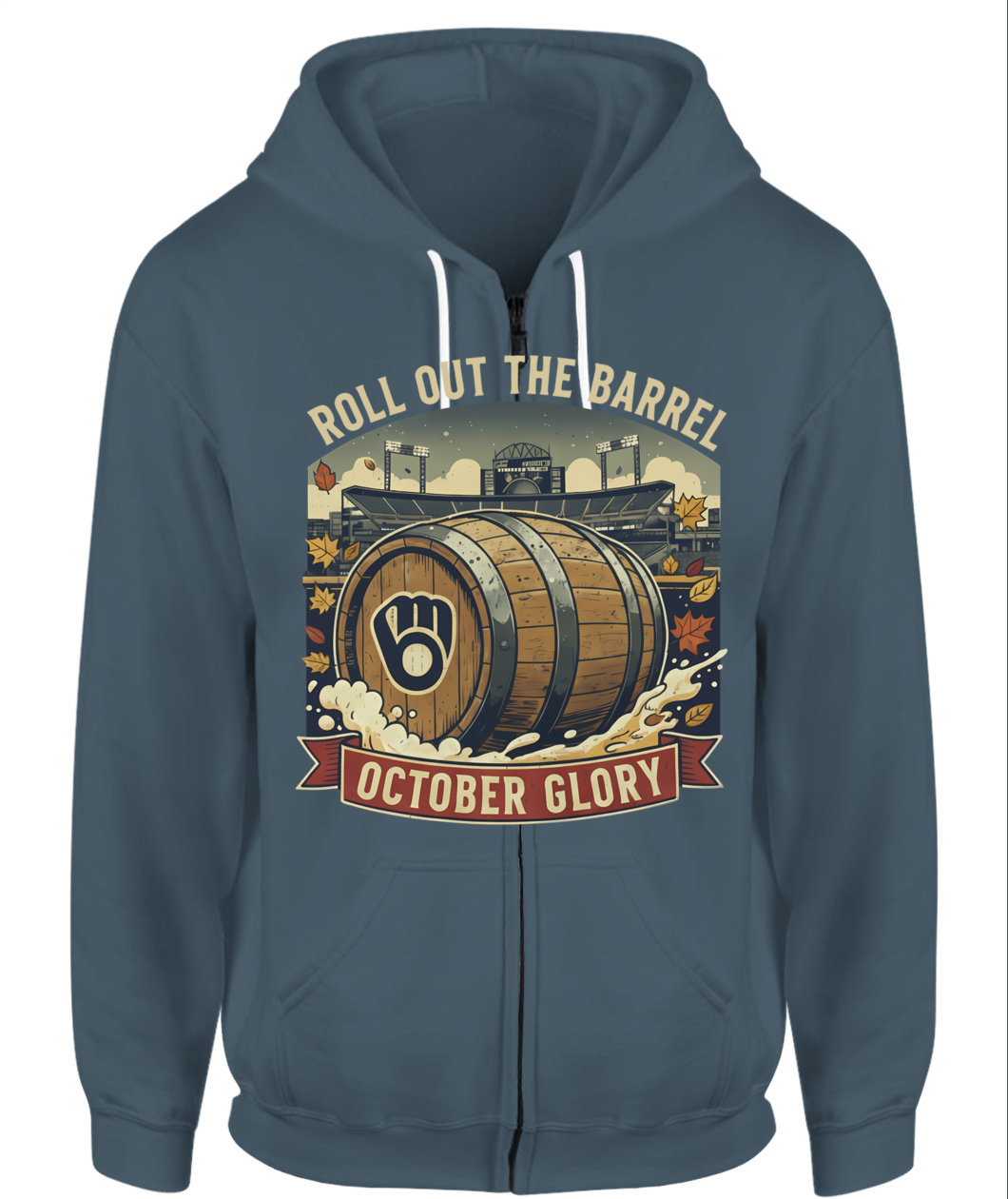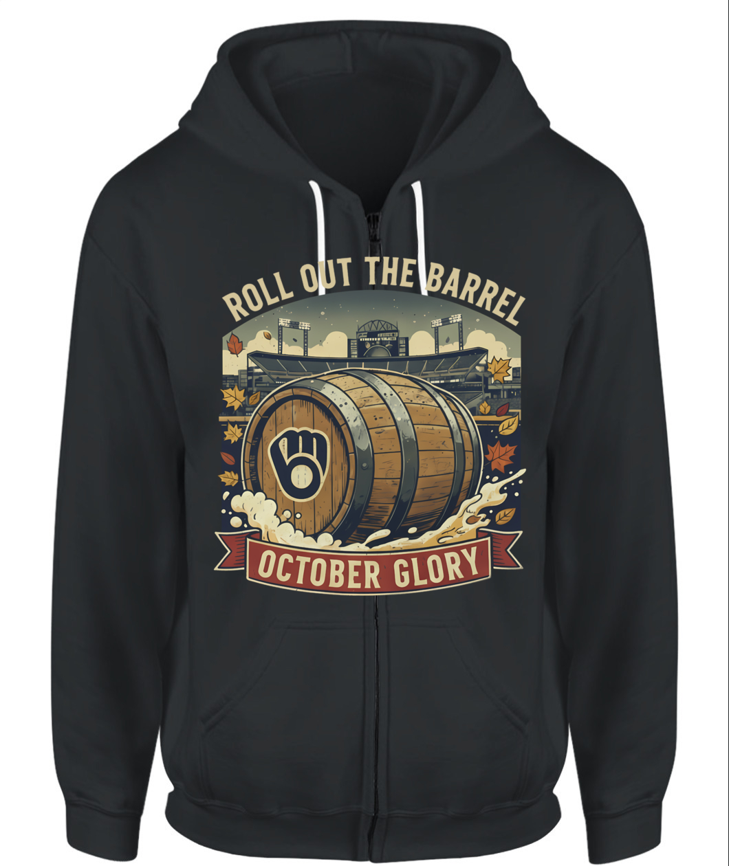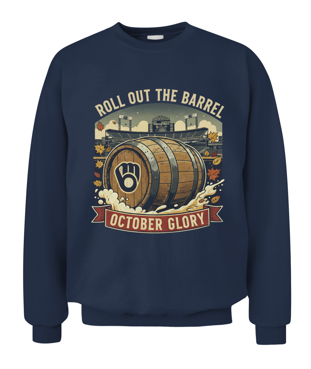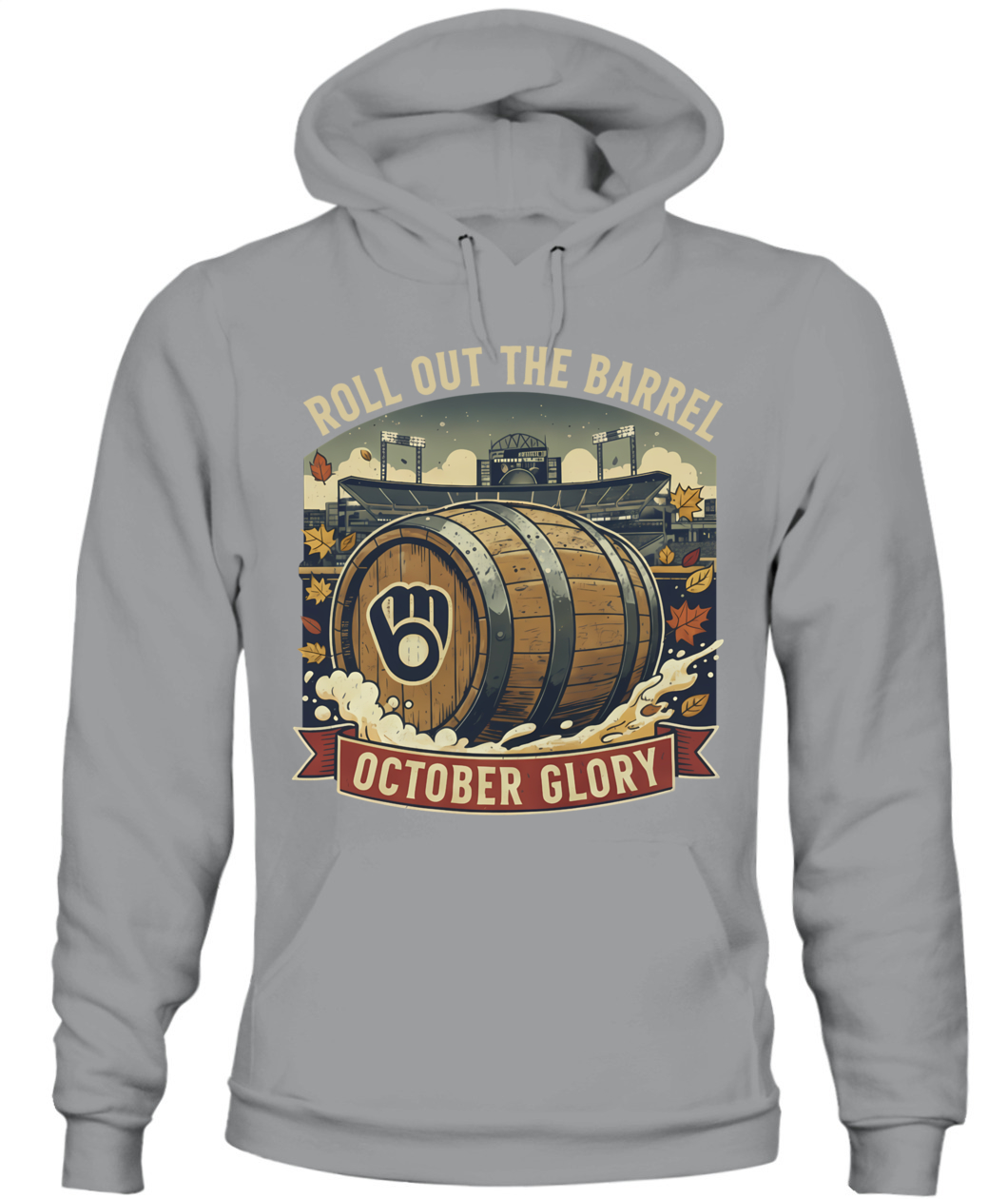 The “Roll Out the Barrel: October Glory” Brewers tee blends baseball and beer heritage into one bold playoff design. Celebrate Milwaukee’s October spirit with this must-have shirt.