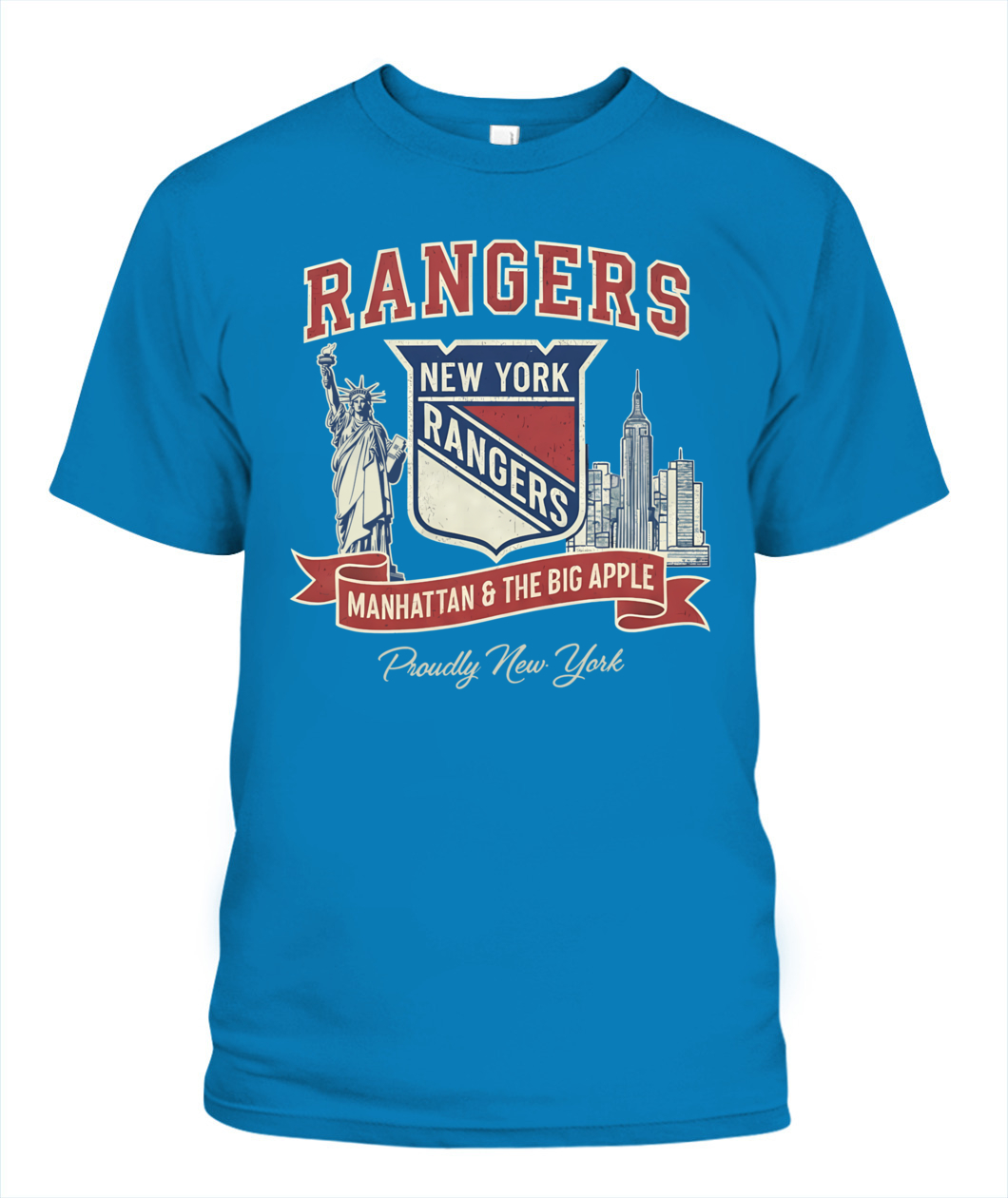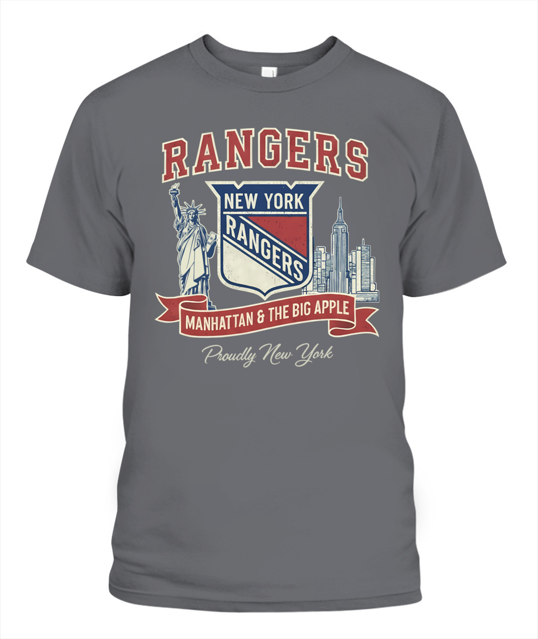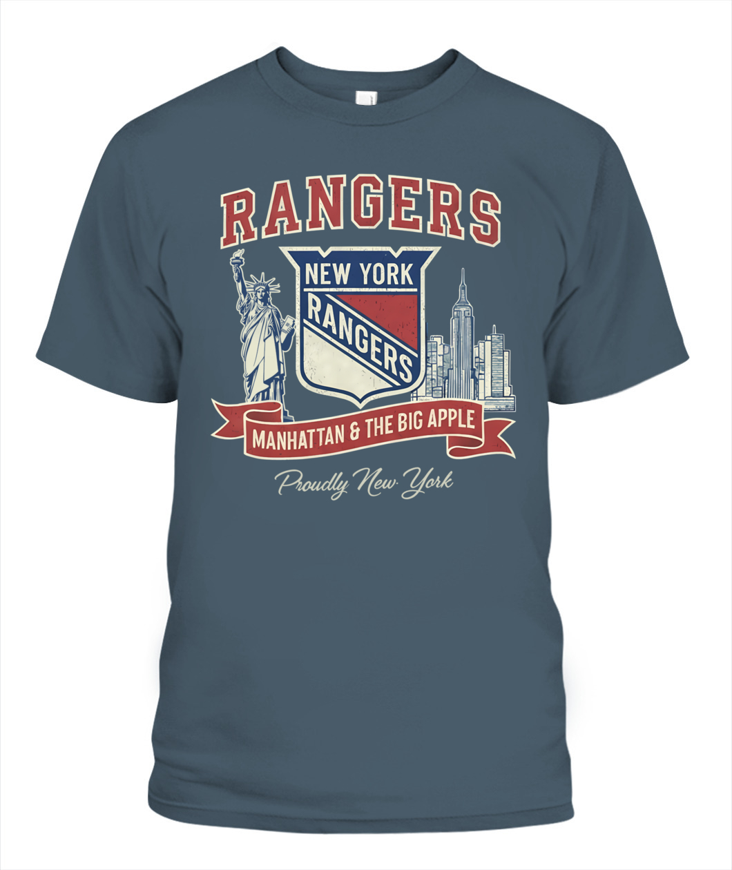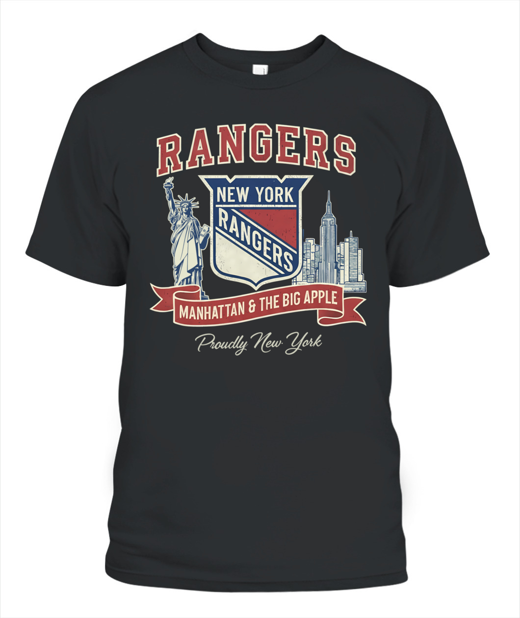 The “Manhattan & The Big Apple” Rangers tee celebrates New York’s hockey pride with bold vintage energy — proudly made for fans of the Garden and the city itself.