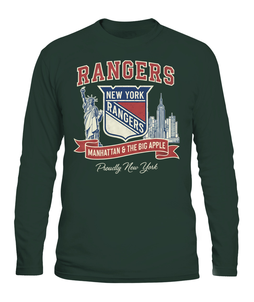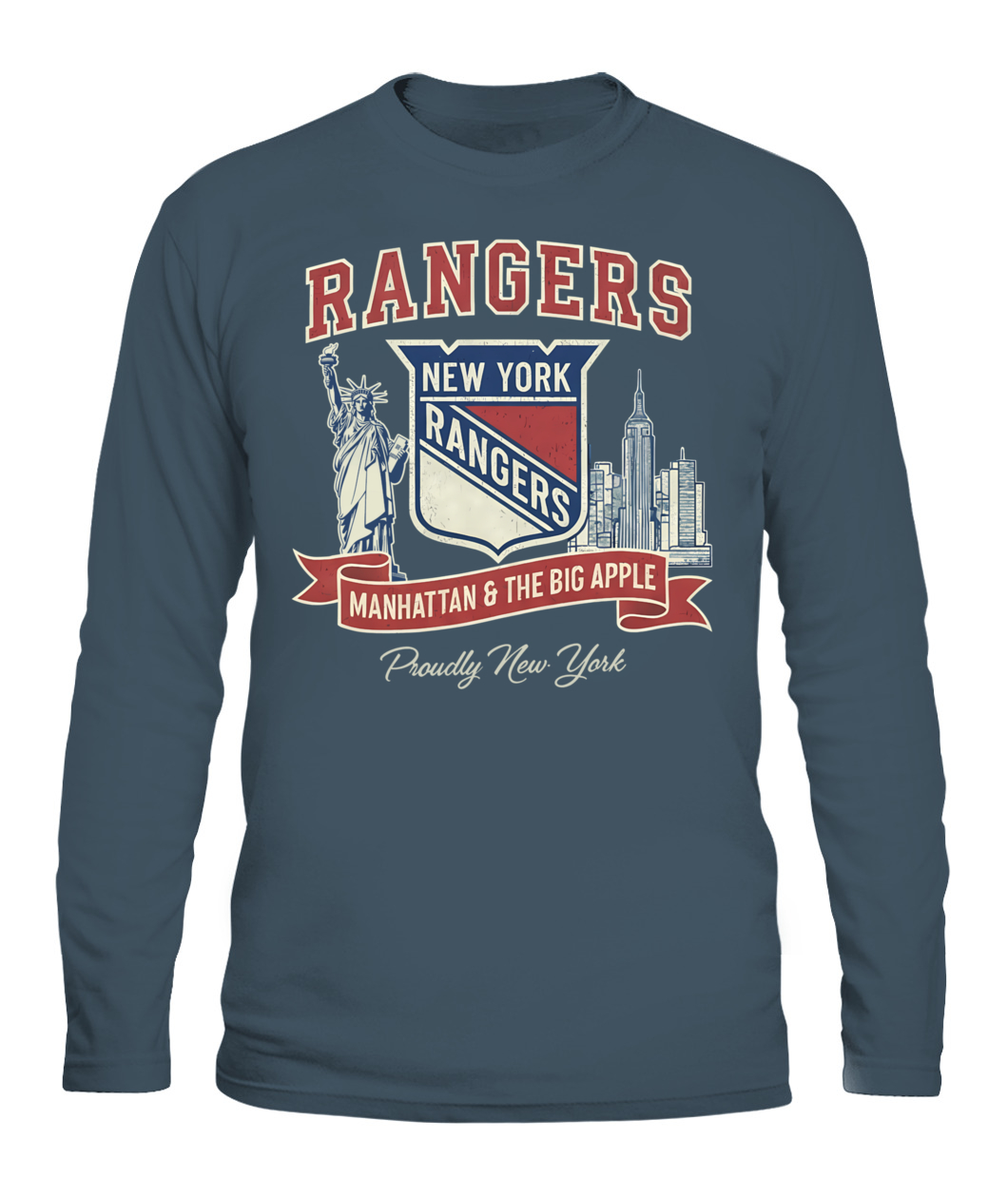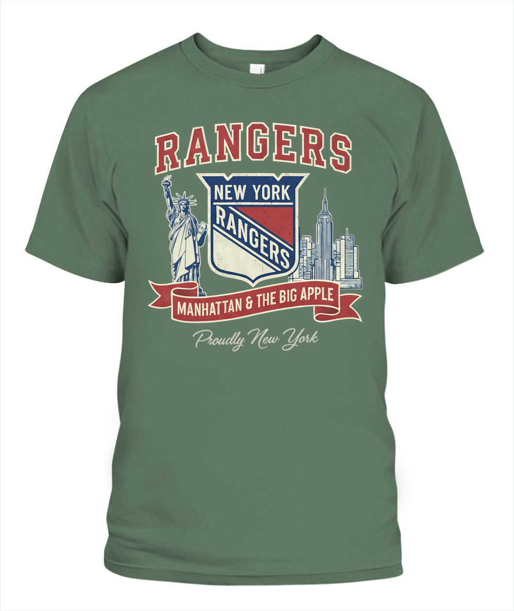 The “Manhattan & The Big Apple” Rangers tee celebrates New York’s hockey pride with bold vintage energy — proudly made for fans of the Garden and the city itself.