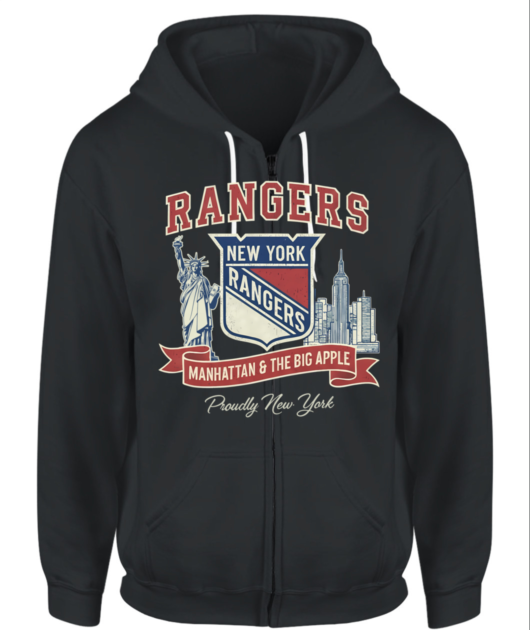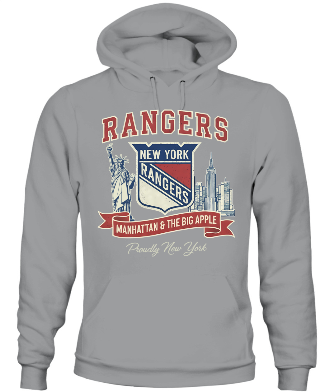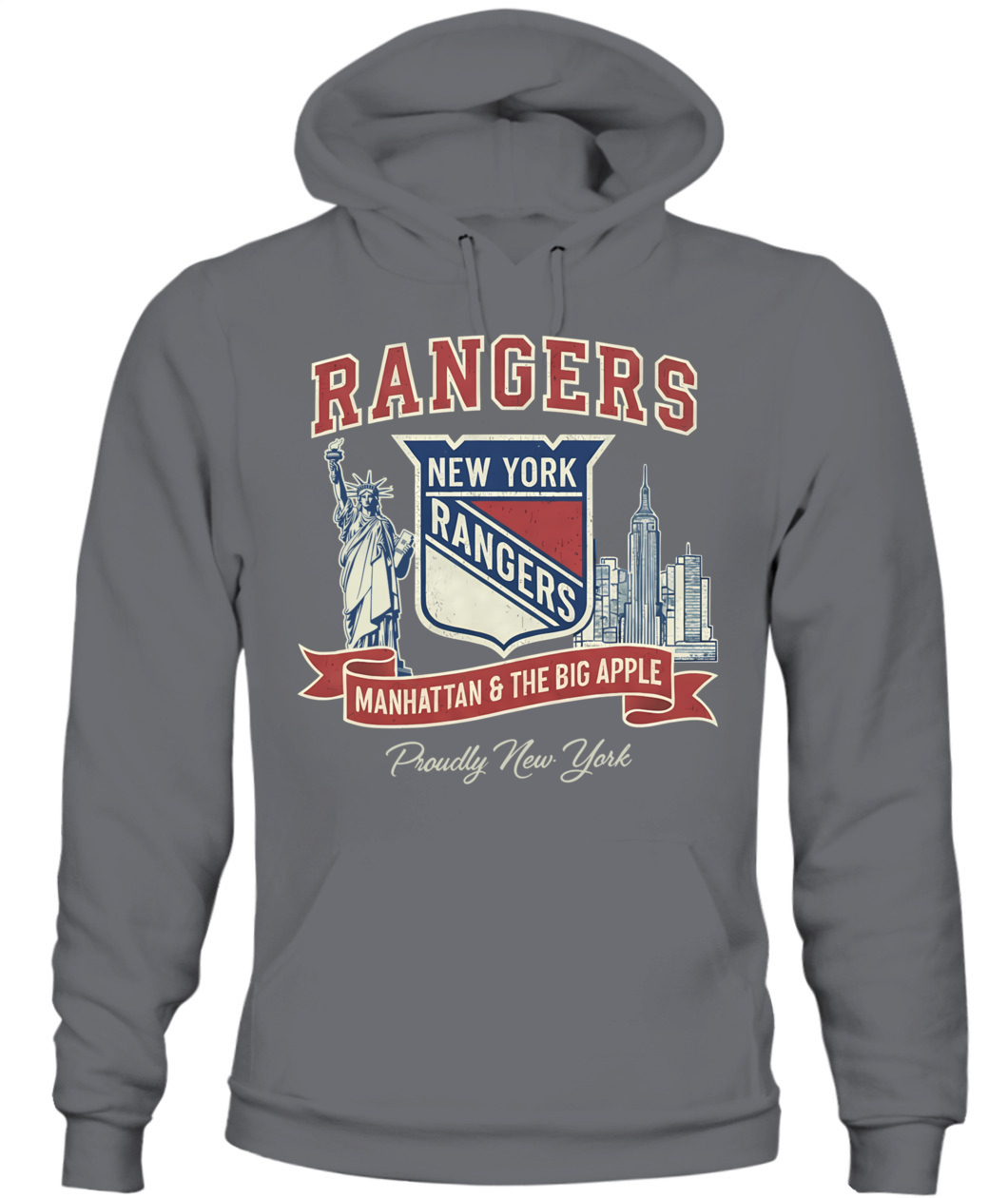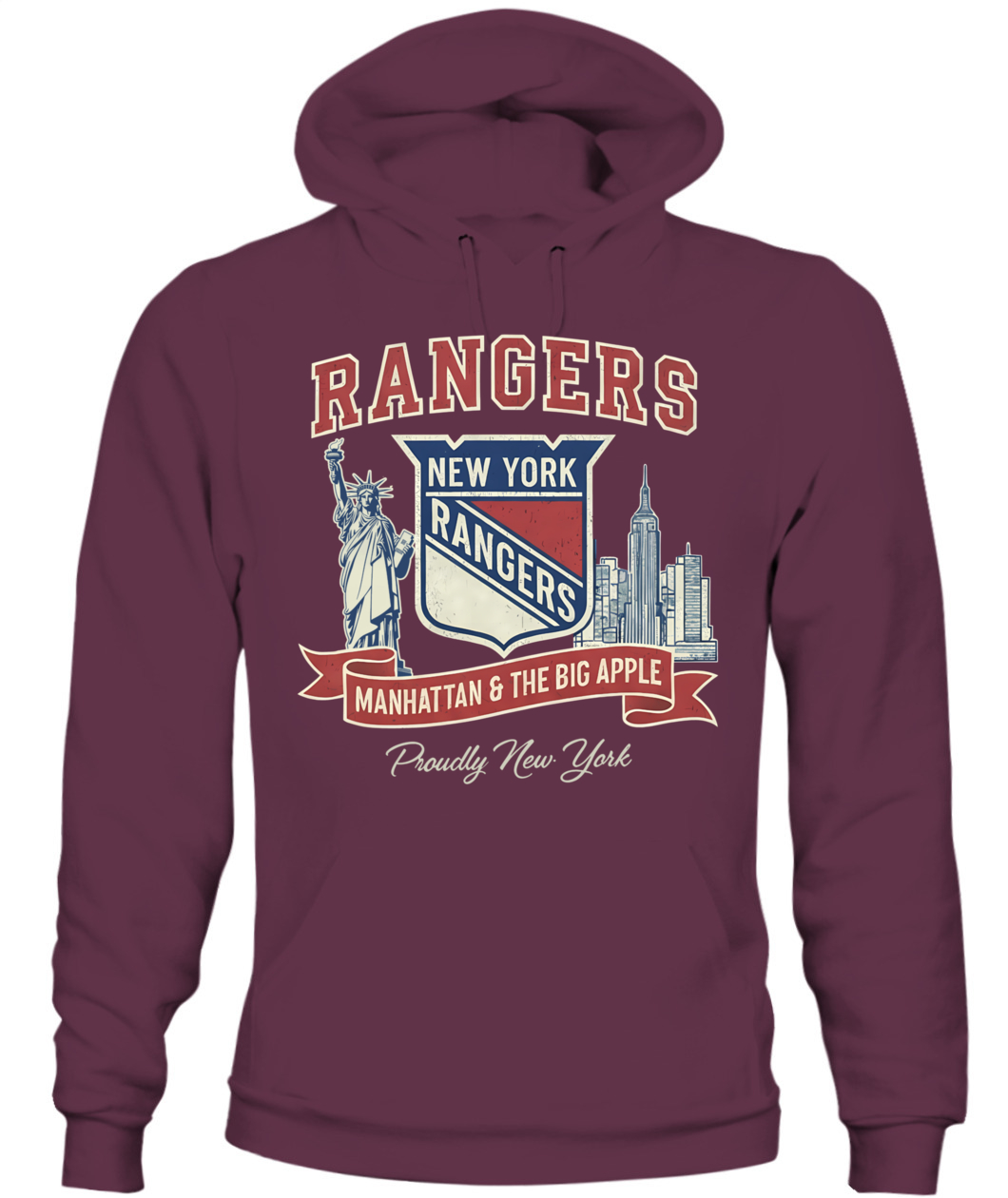 The “Manhattan & The Big Apple” Rangers tee celebrates New York’s hockey pride with bold vintage energy — proudly made for fans of the Garden and the city itself.