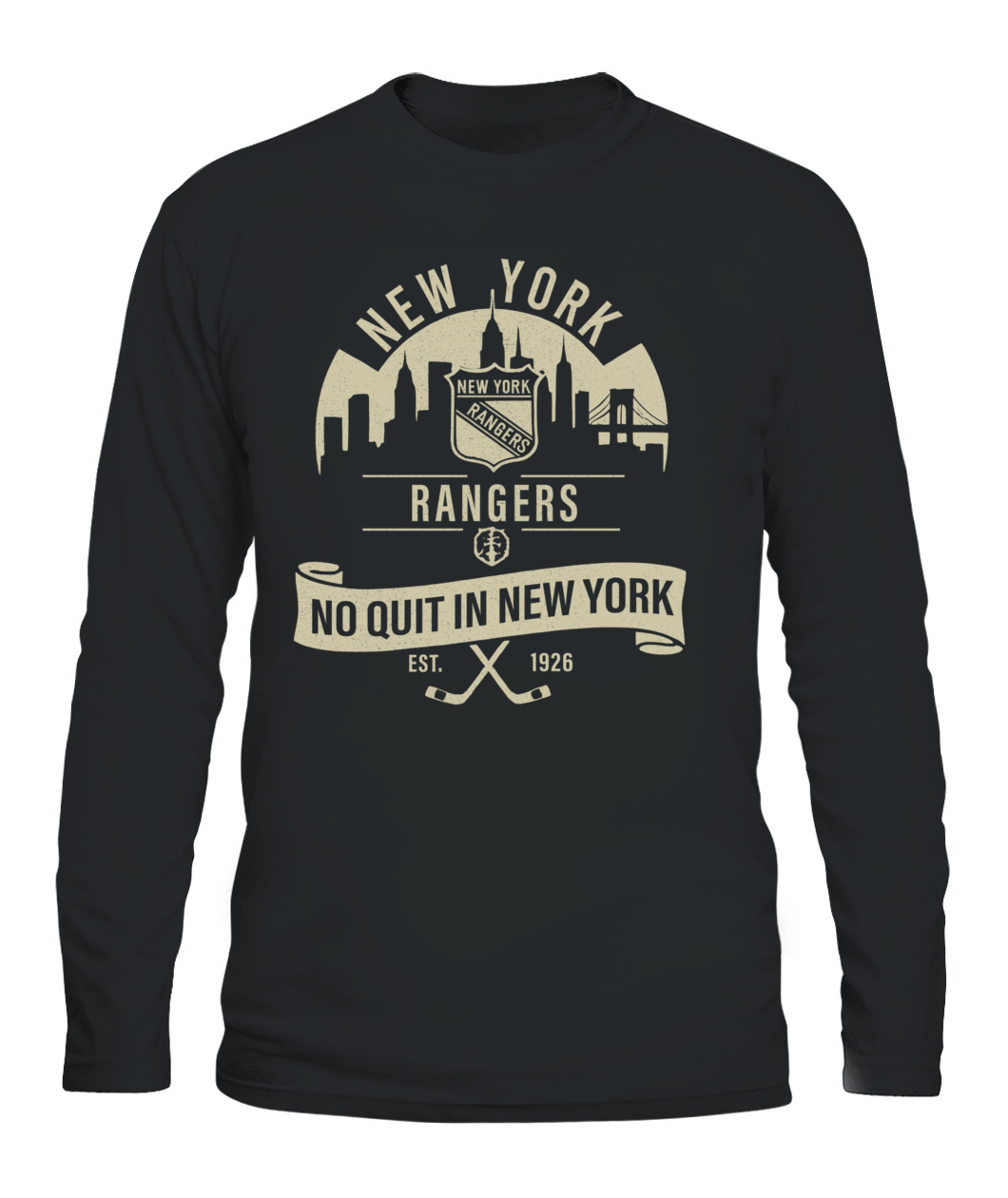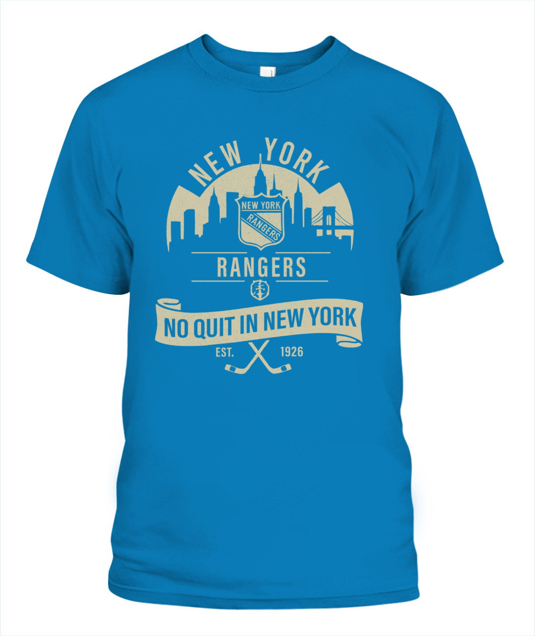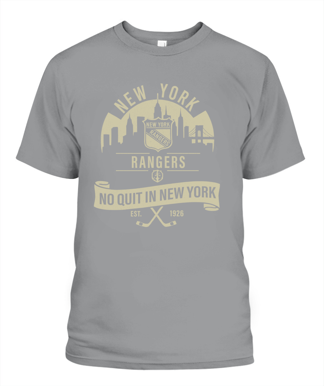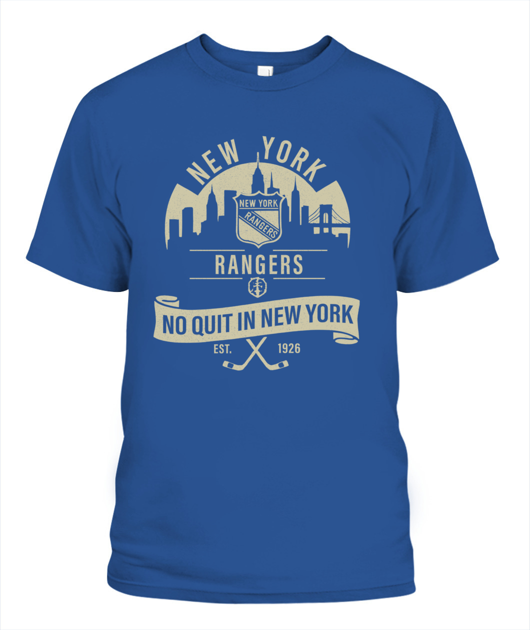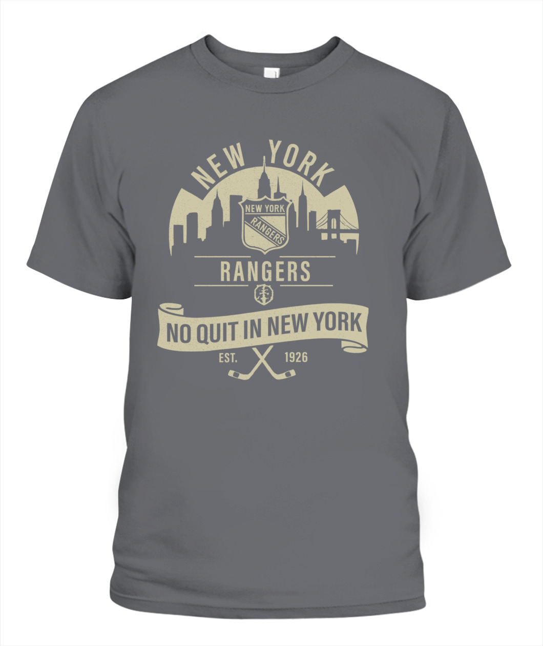The “No Quit in New York” Rangers tee honors the city’s toughness and hockey heritage — bold, timeless, and 100% New York grit.