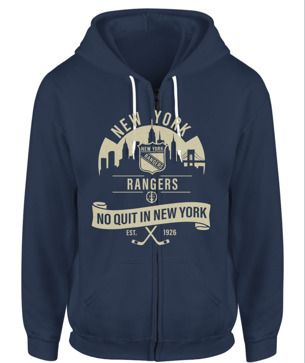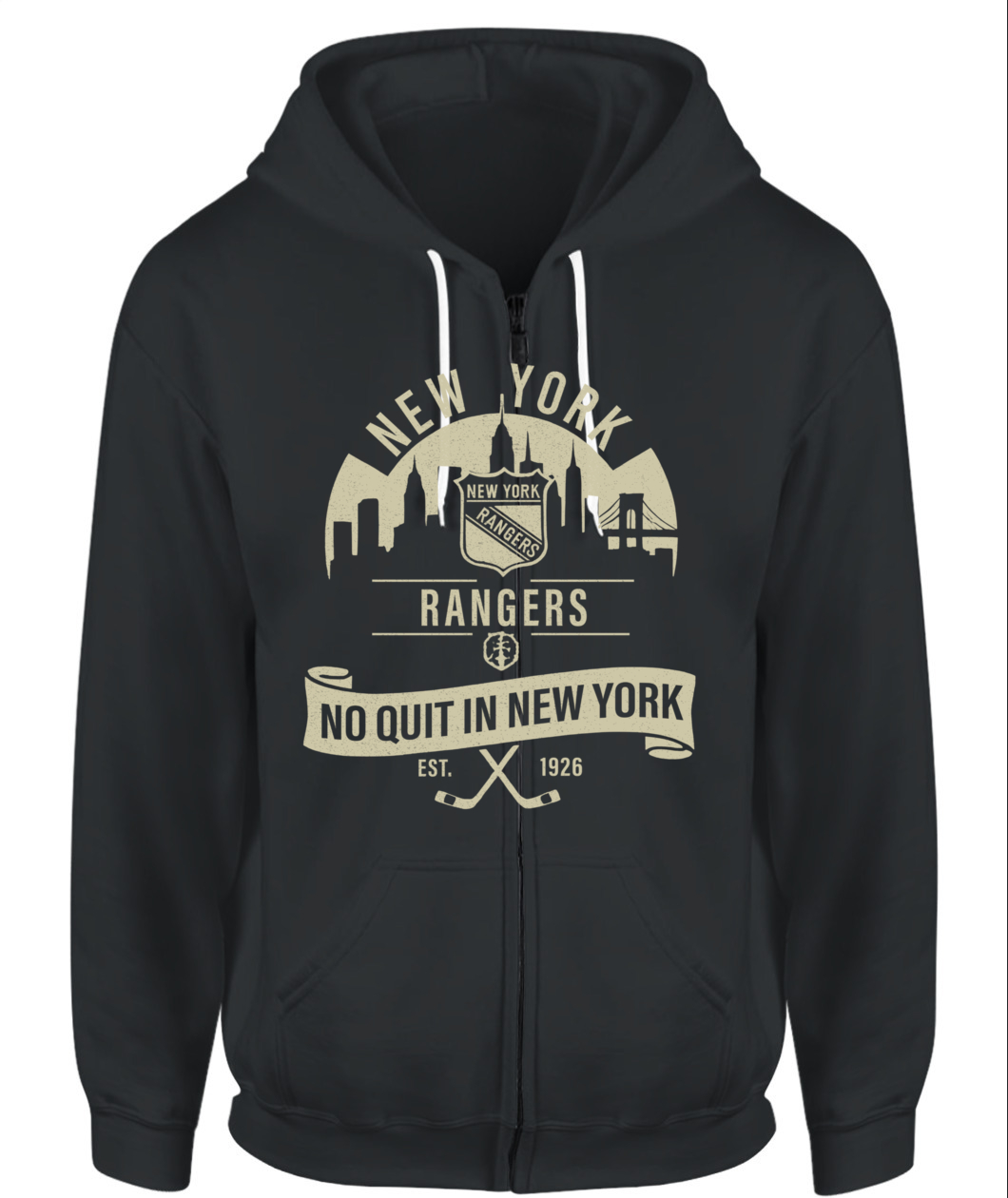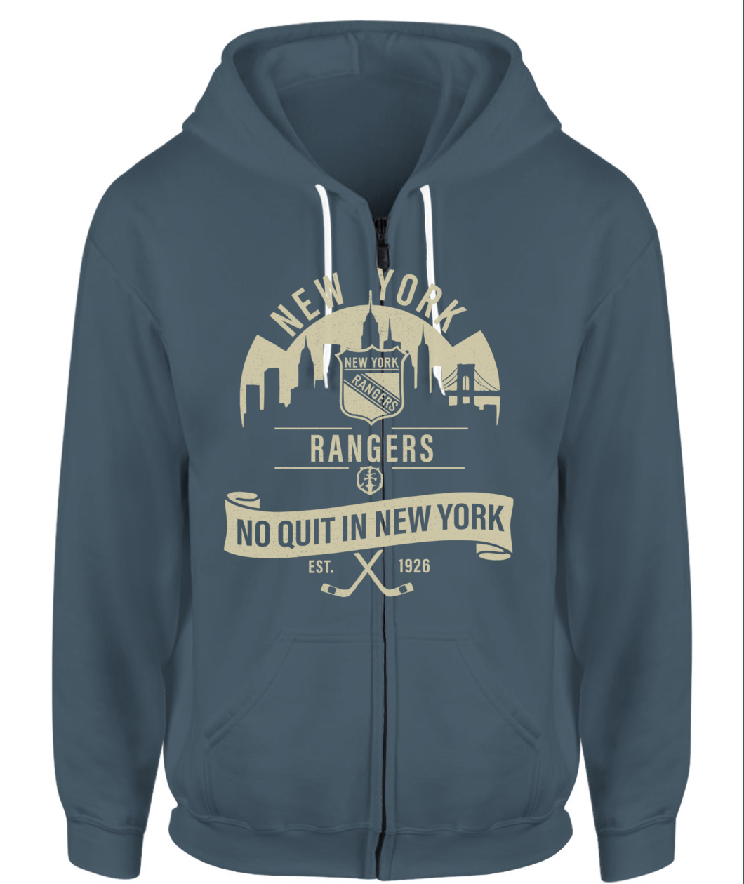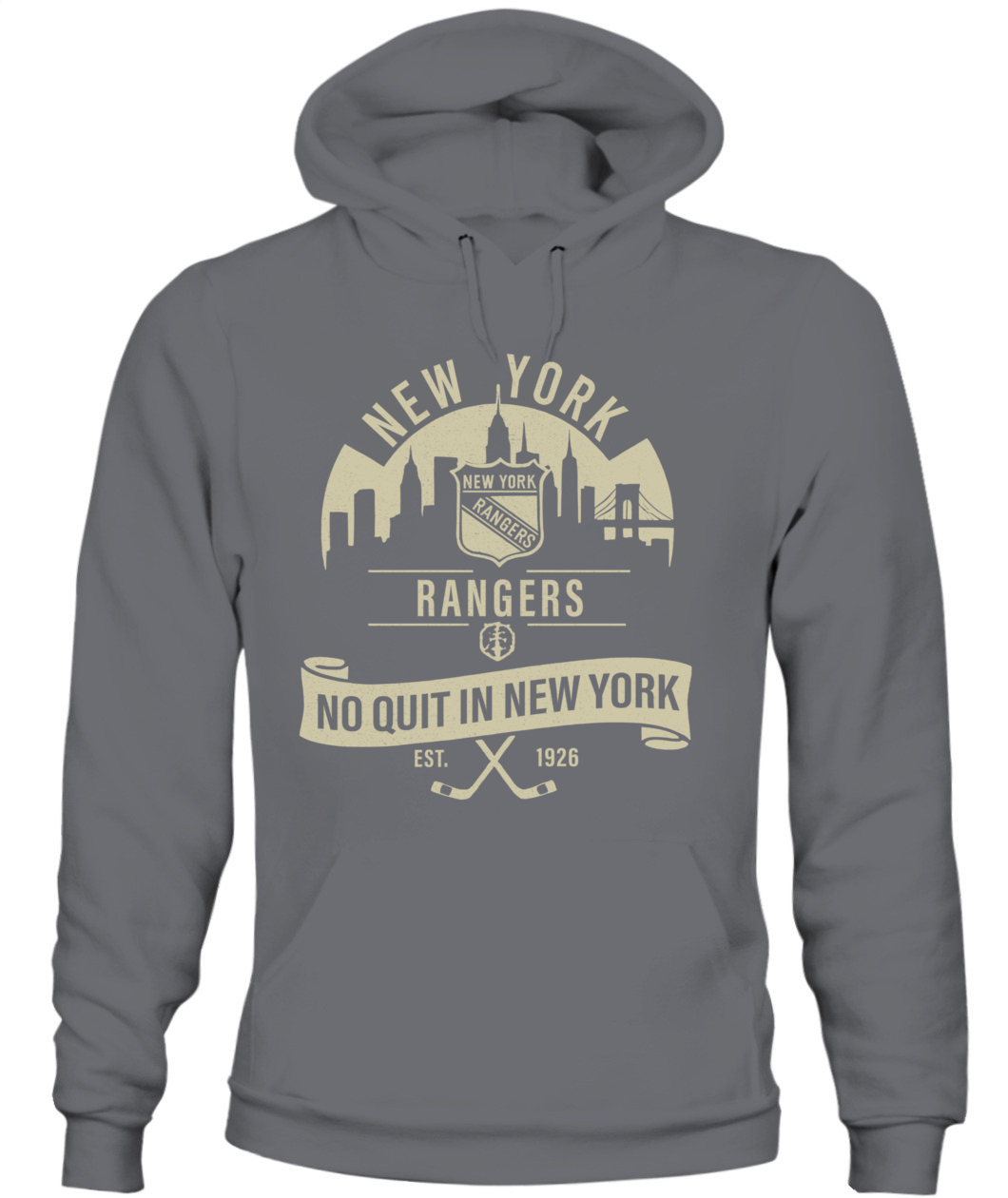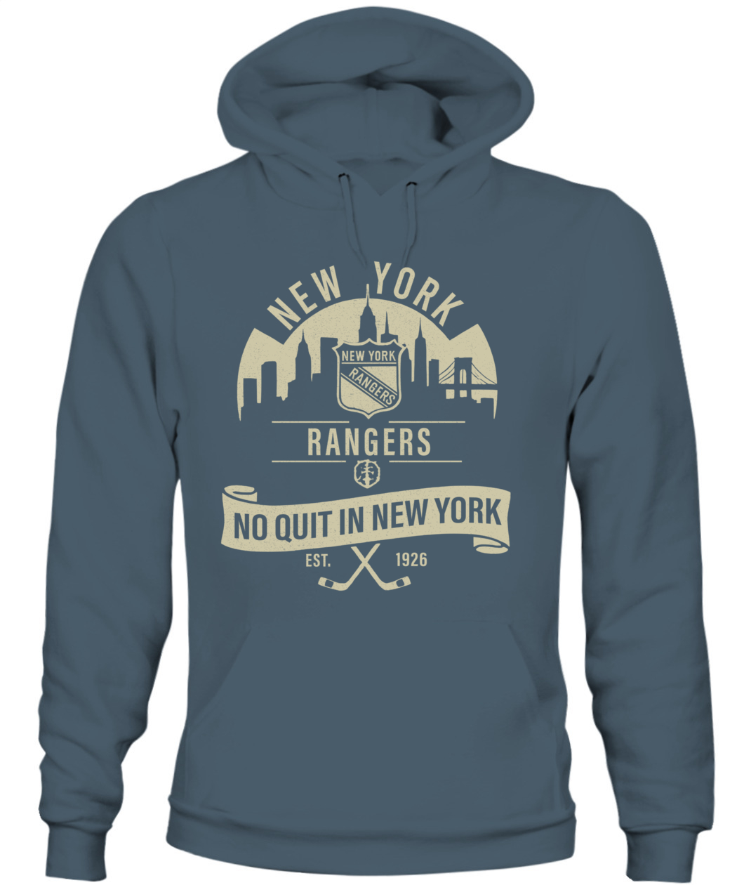 The “No Quit in New York” Rangers tee honors the city’s toughness and hockey heritage — bold, timeless, and 100% New York grit.