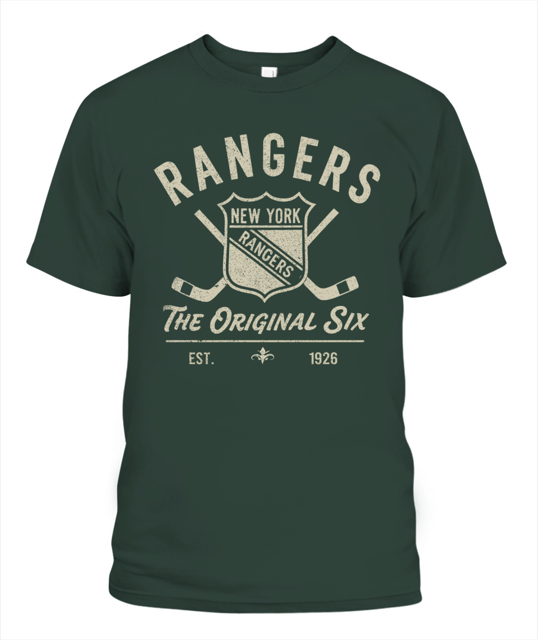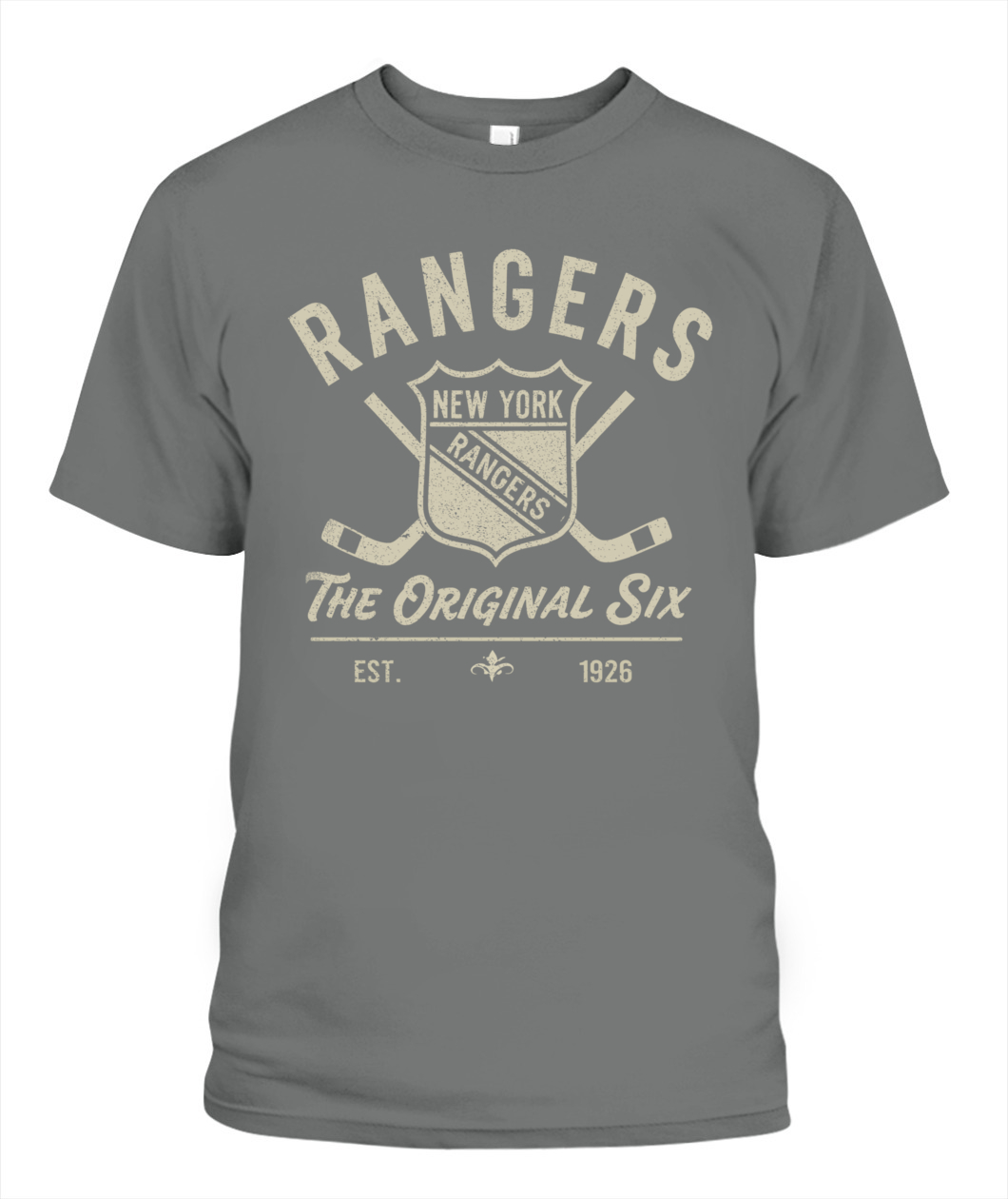 Celebrate nearly a century of hockey greatness with “The Original Six” Rangers tee — vintage design, modern comfort, and pure New York pride.