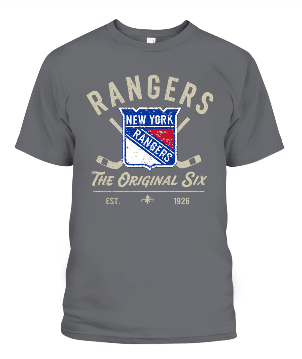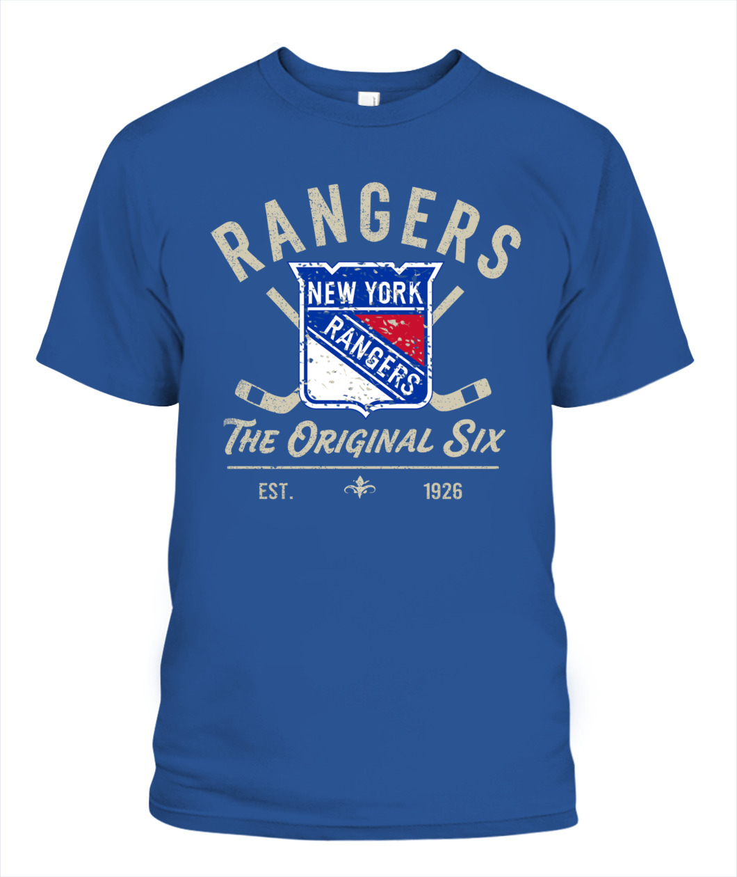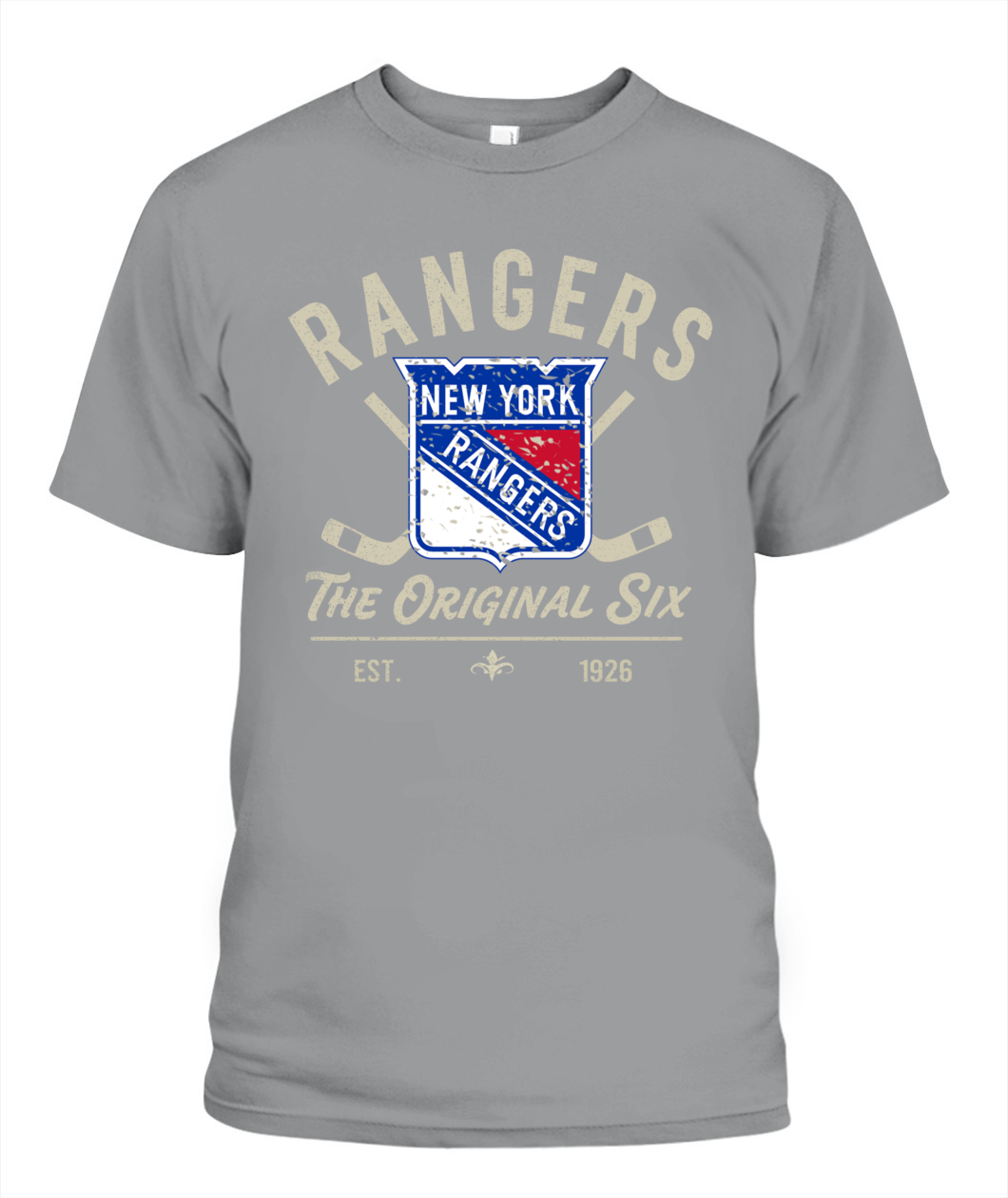 Celebrate nearly a century of hockey greatness with “The Original Six” Rangers tee — vintage design, modern comfort, and pure New York pride.