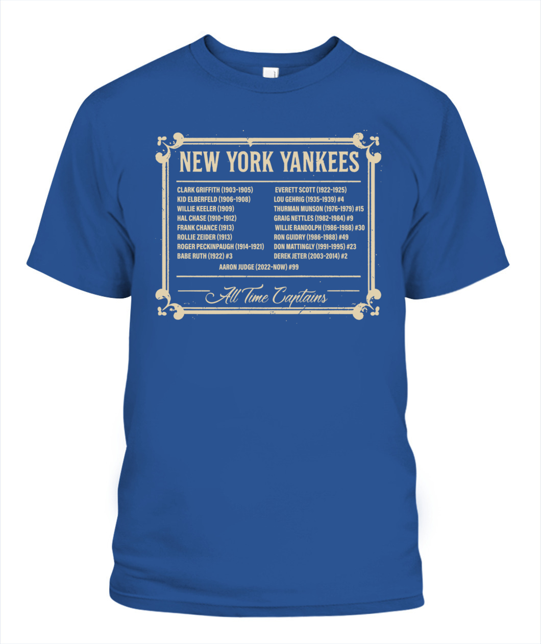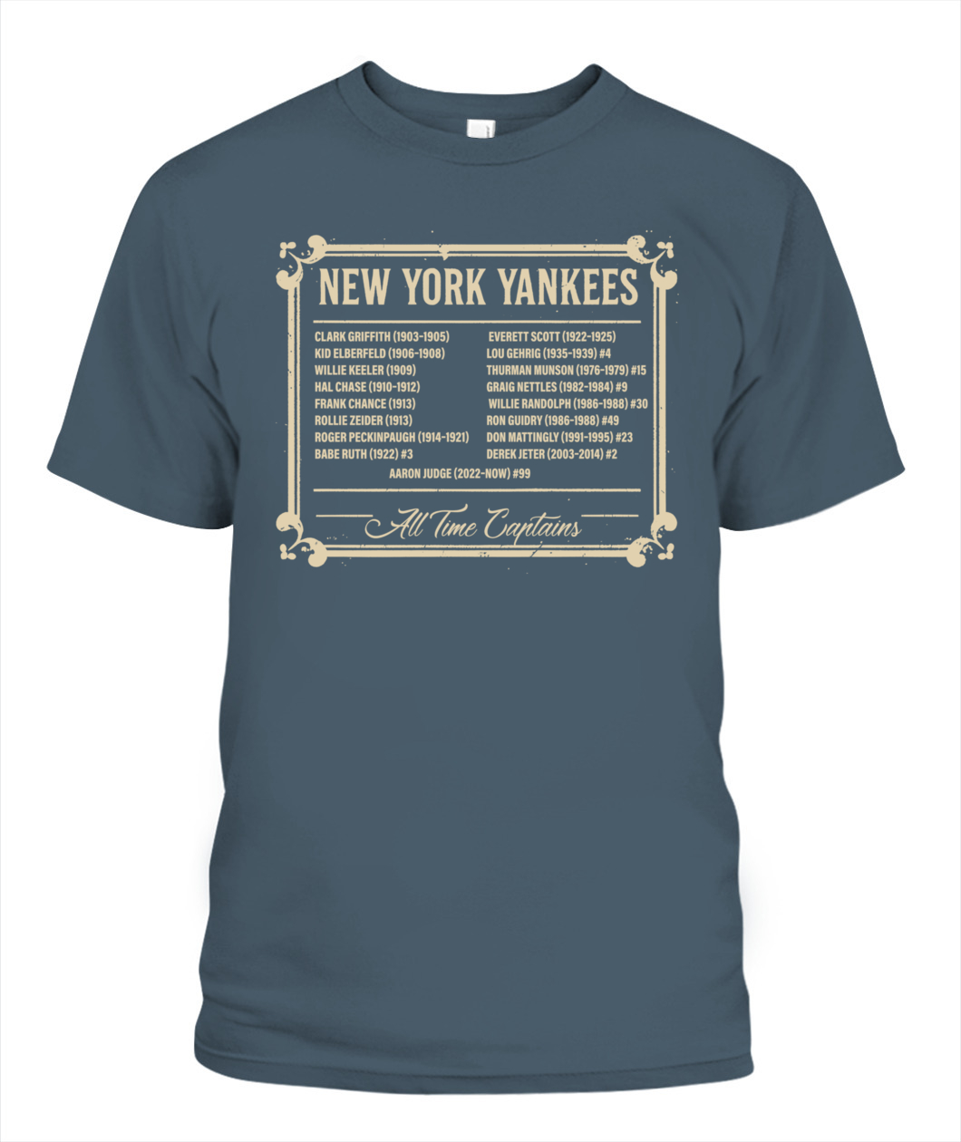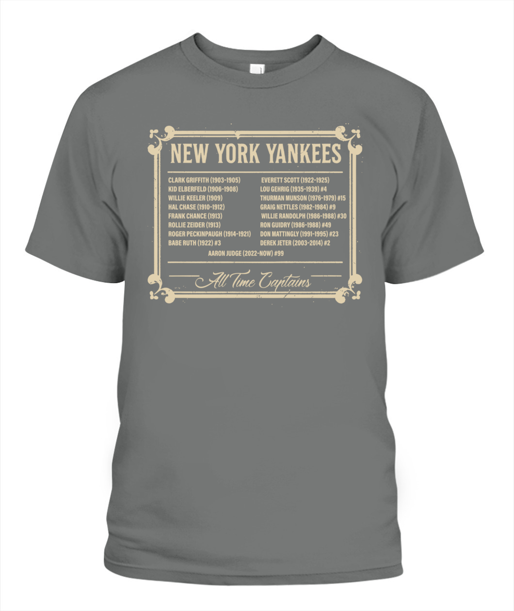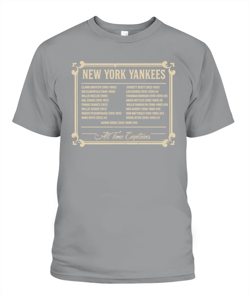 Honor Yankees leadership with the “ALL TIME CAPTAINS” tee – a timeless tribute to the legends who shaped the Bronx Bombers.