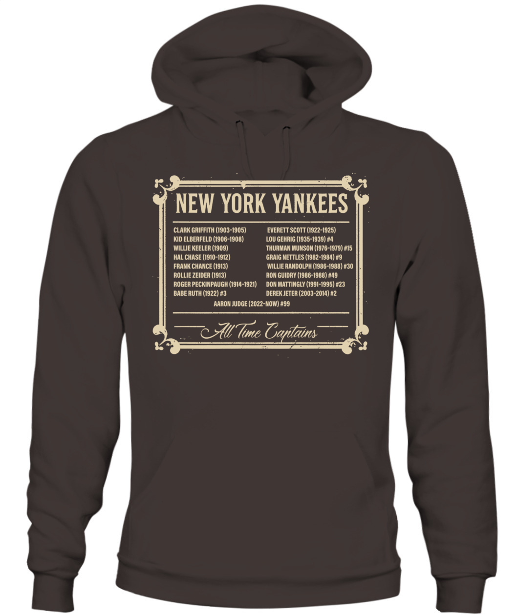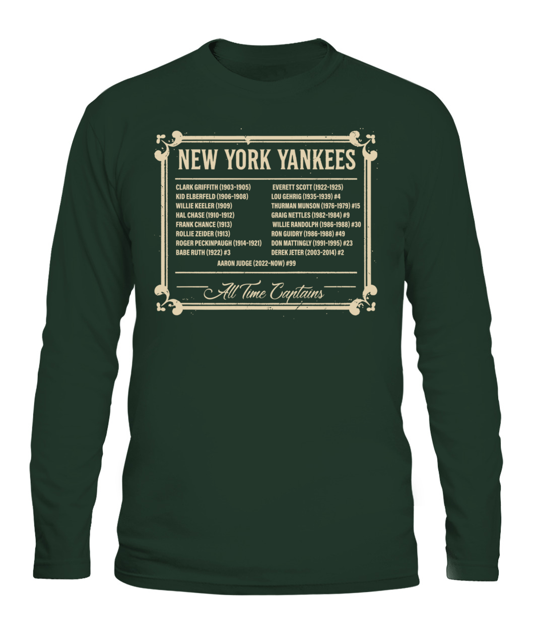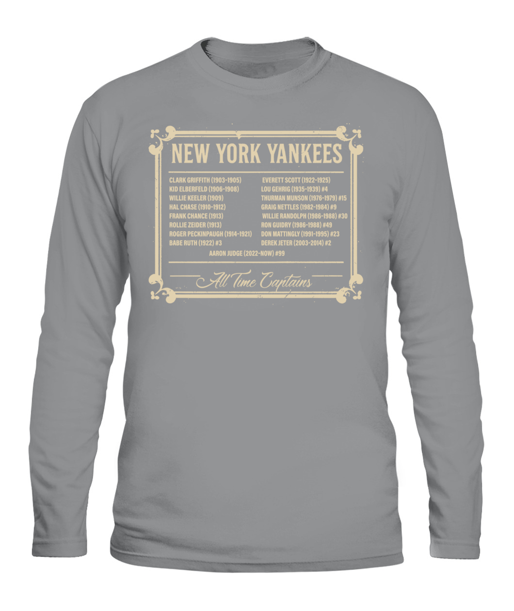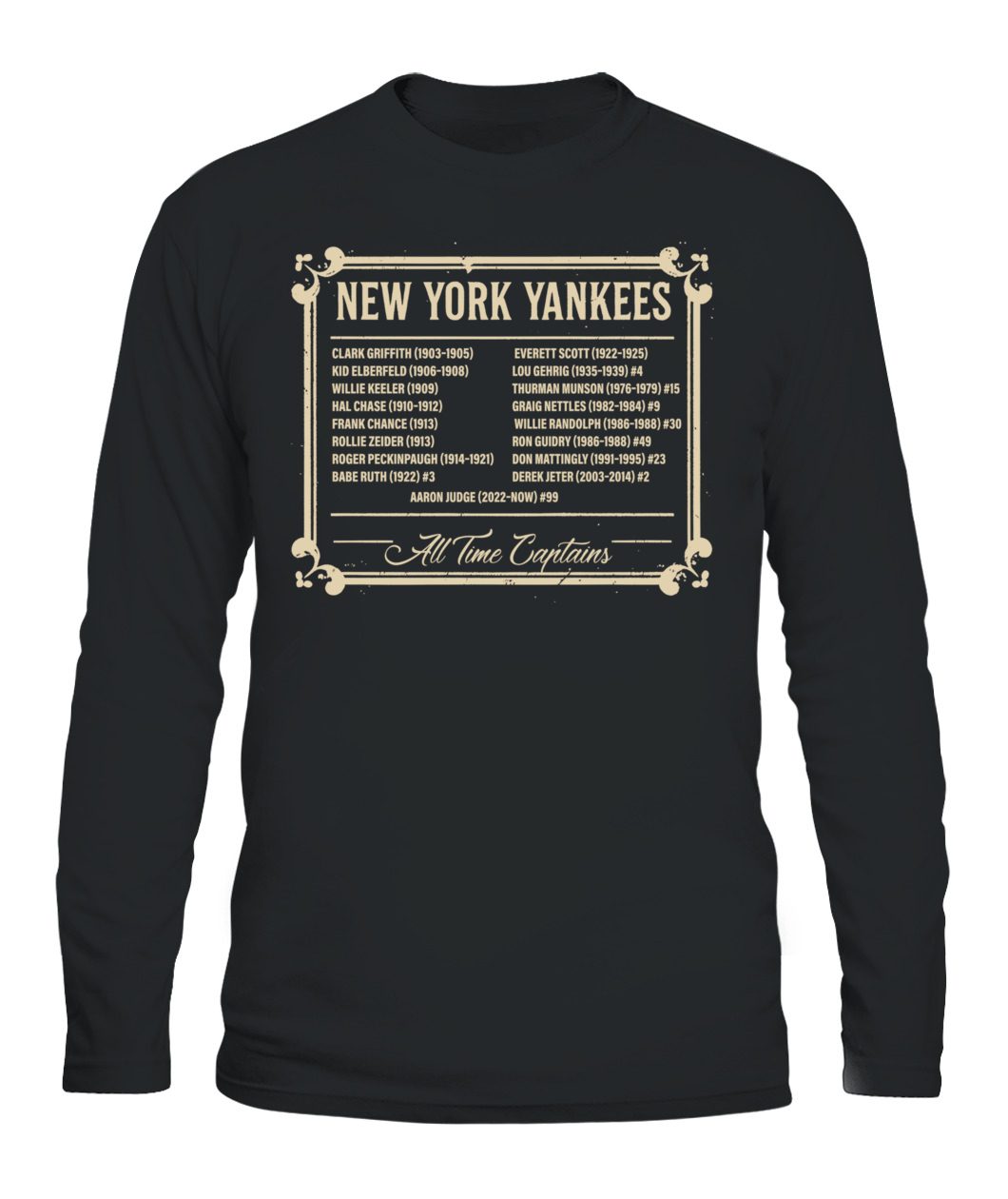 Honor Yankees leadership with the “ALL TIME CAPTAINS” tee – a timeless tribute to the legends who shaped the Bronx Bombers.