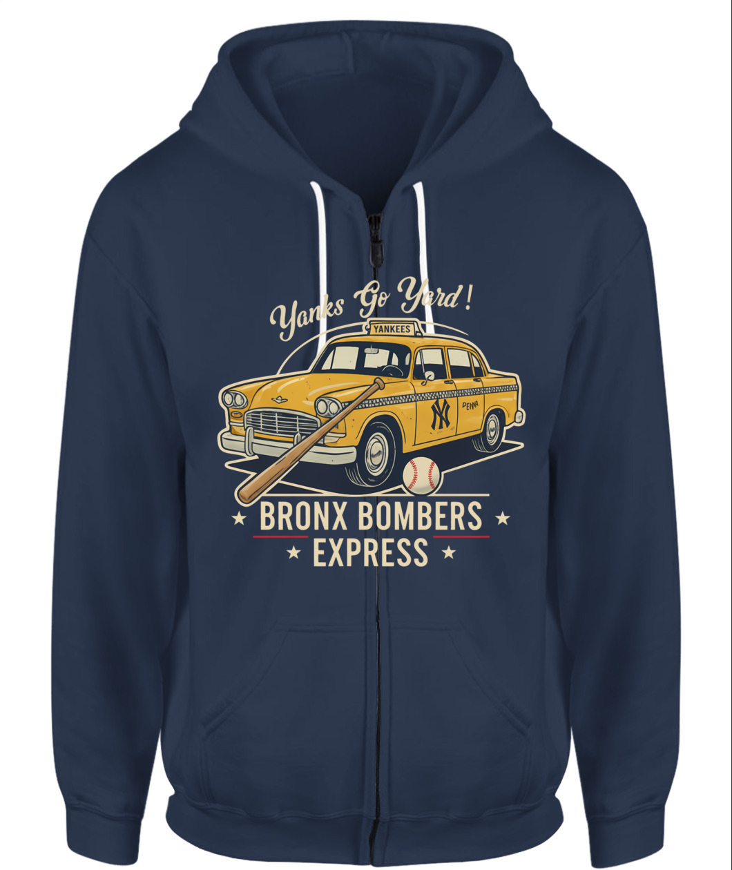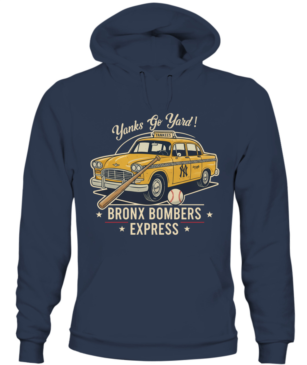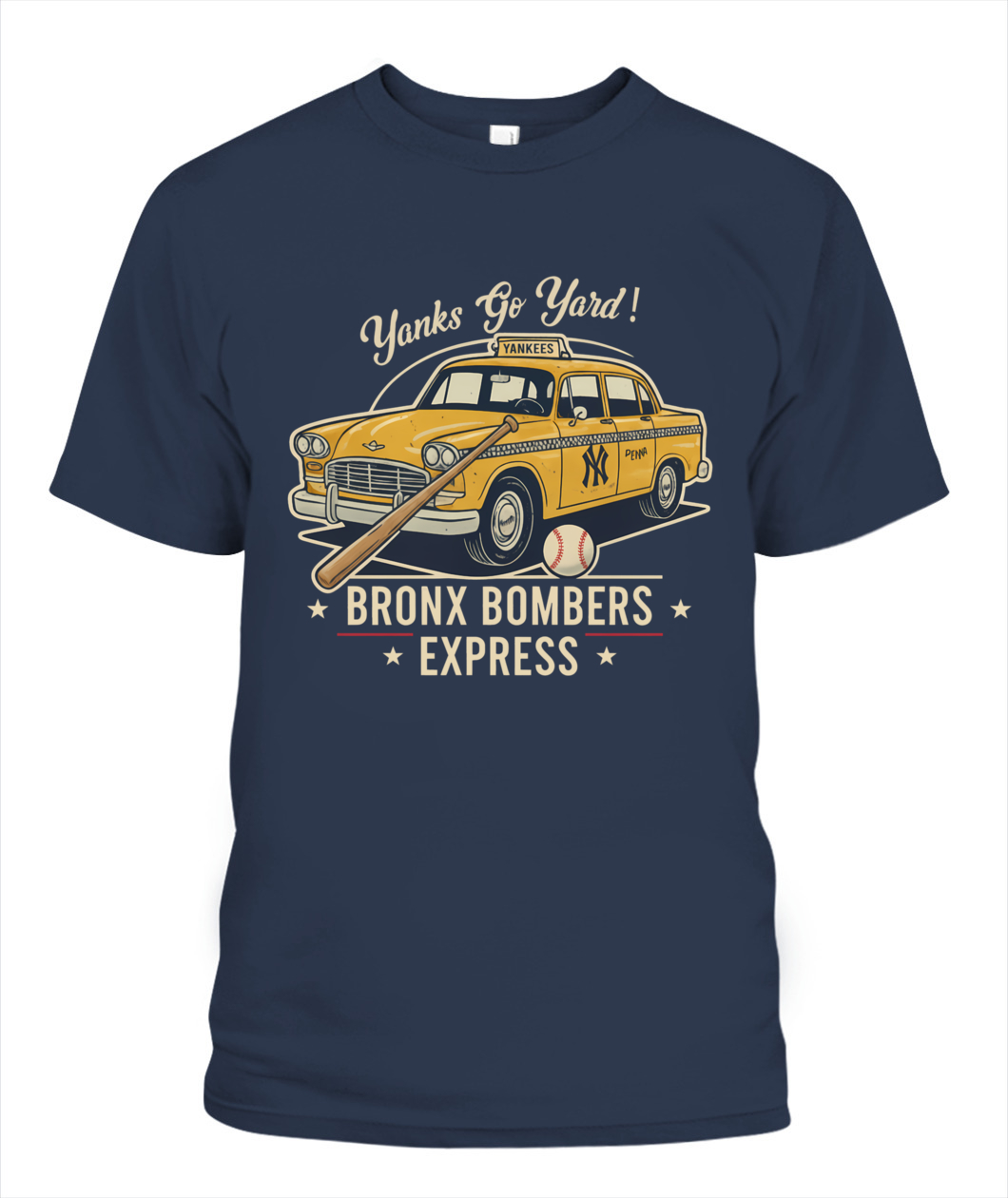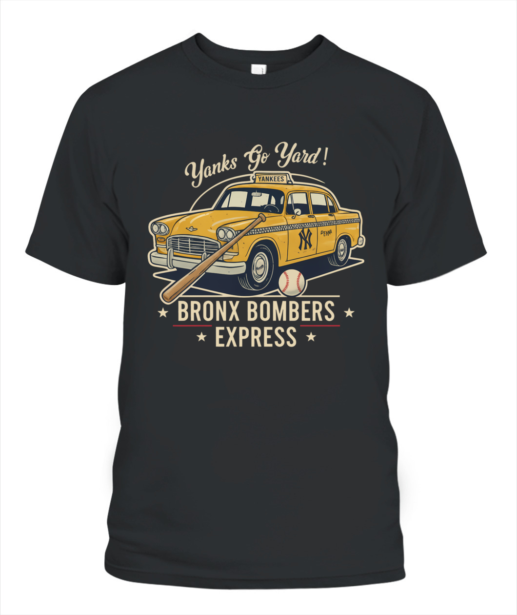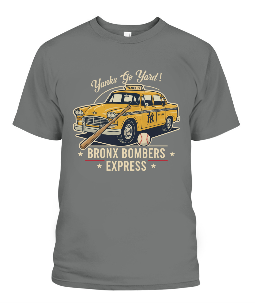 Hop on the “BRONX BOMBERS EXPRESS” tee – a retro taxi design that celebrates Yankees pride and New York spirit in one bold look.