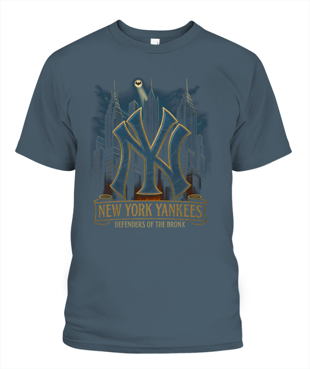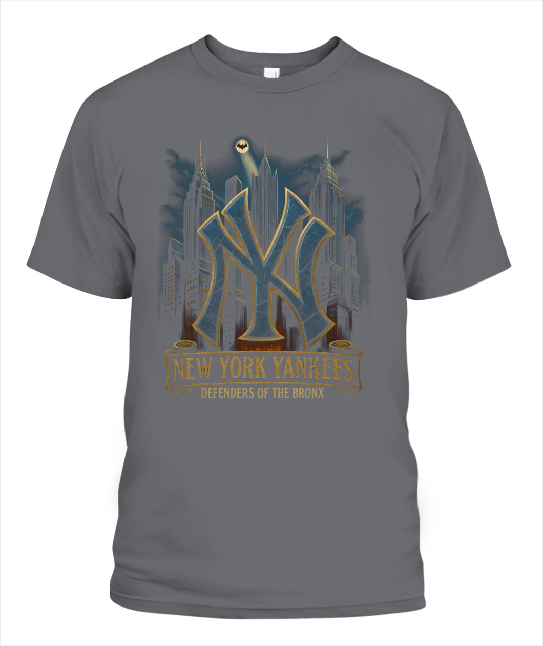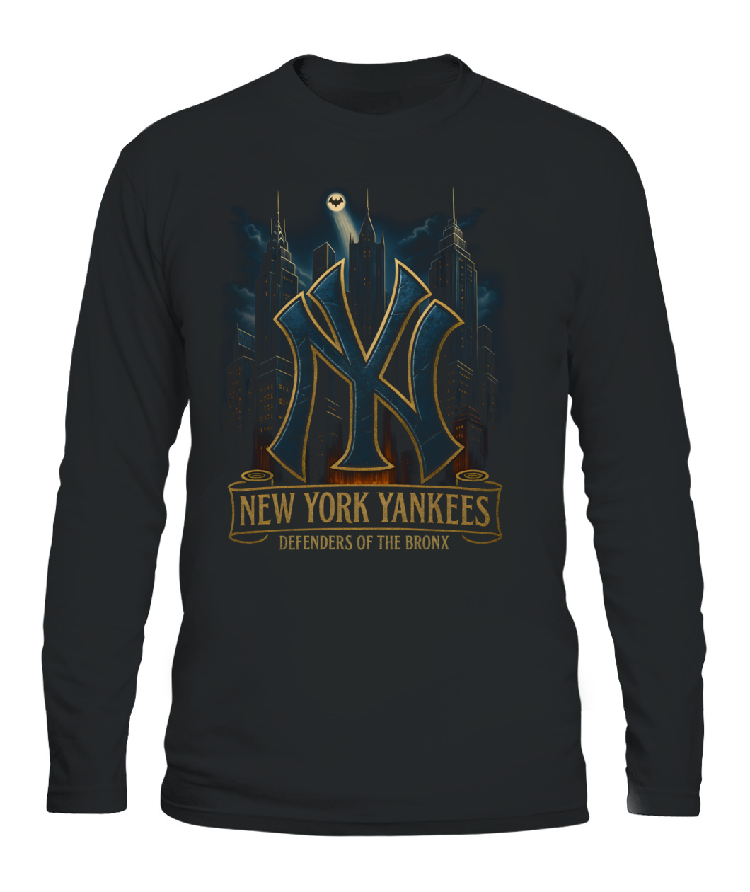 Channel Bronx grit with the “DEFENDERS OF THE BRONX” tee—an urban skyline tribute to Yankees pride.
