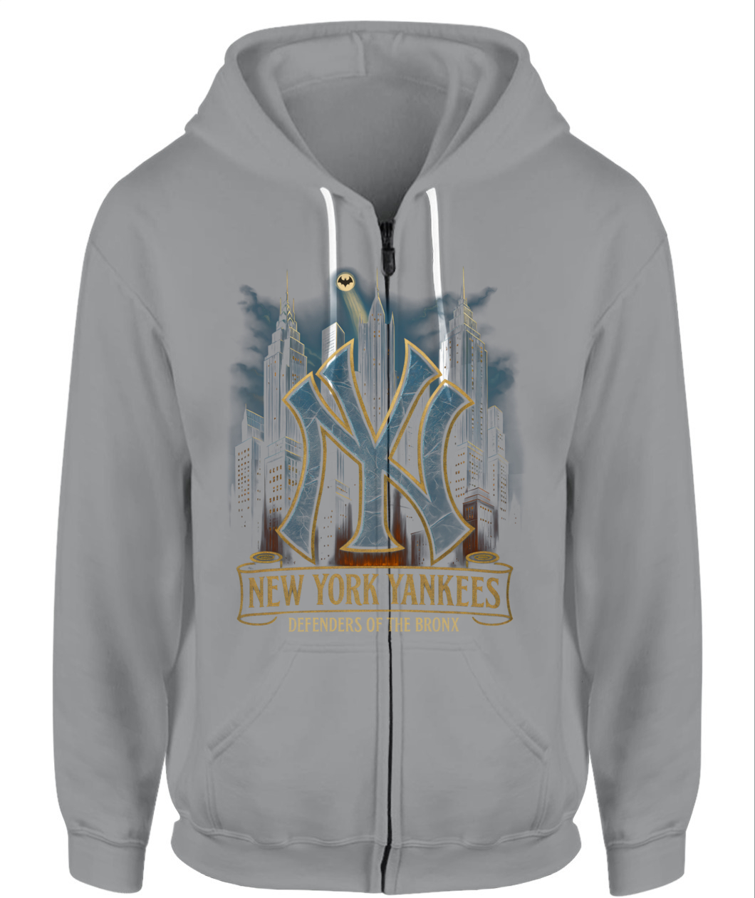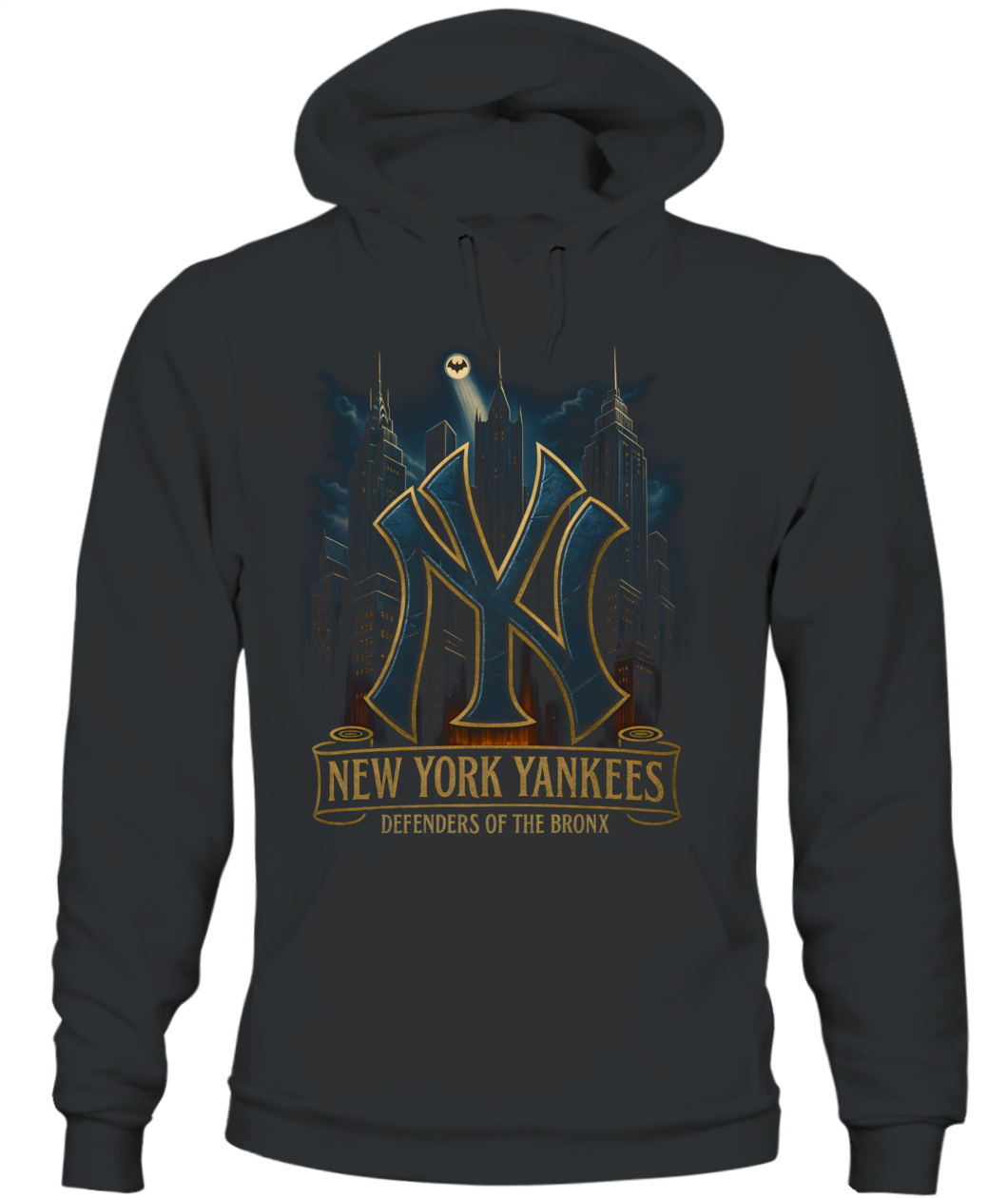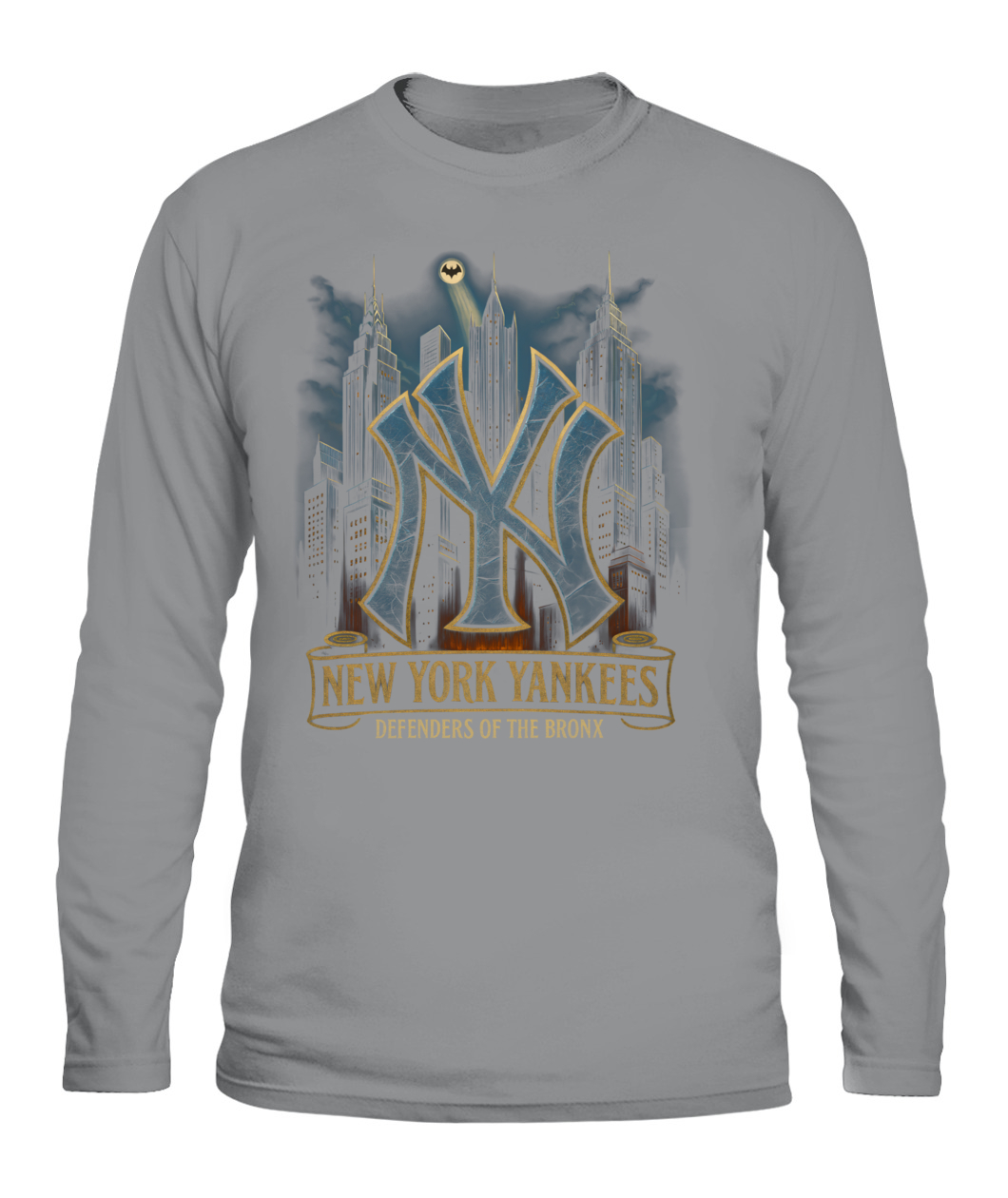 Channel Bronx grit with the “DEFENDERS OF THE BRONX” tee—an urban skyline tribute to Yankees pride.