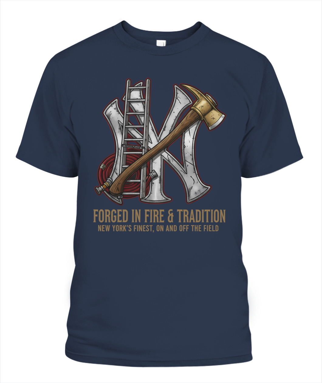 The “Forged in Fire & Tradition” Yankees Tee unites baseball pride with New York grit. A bold design honoring resilience, tradition, and the Bronx Bombers.