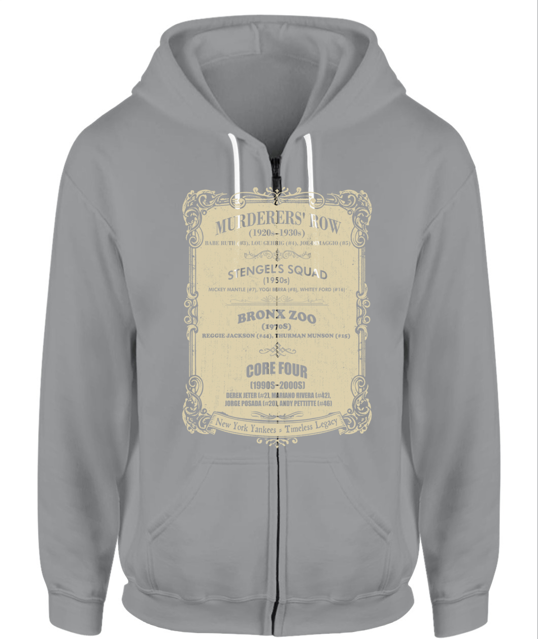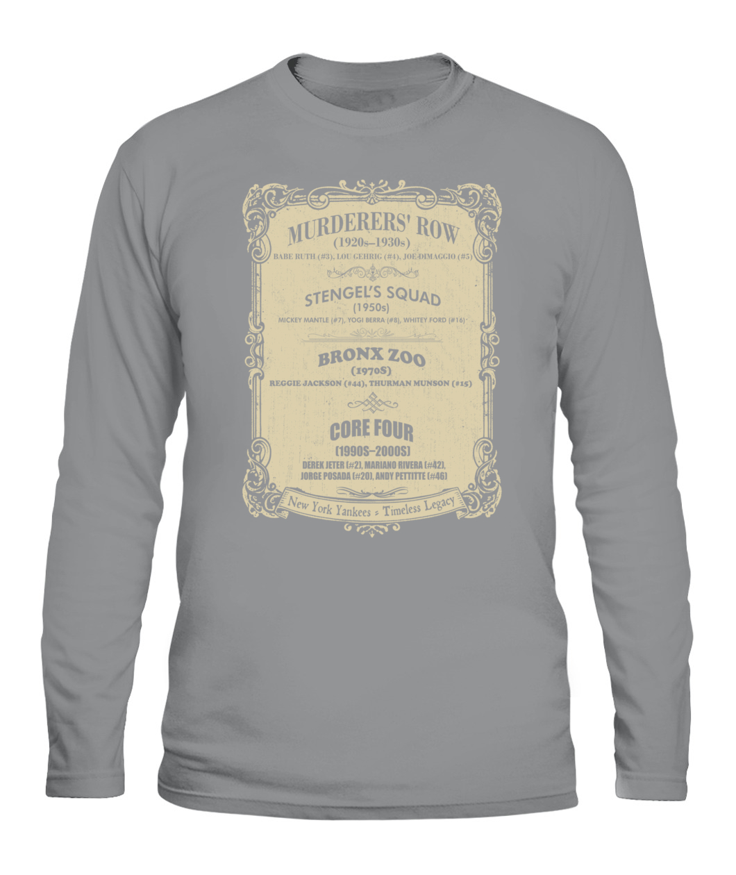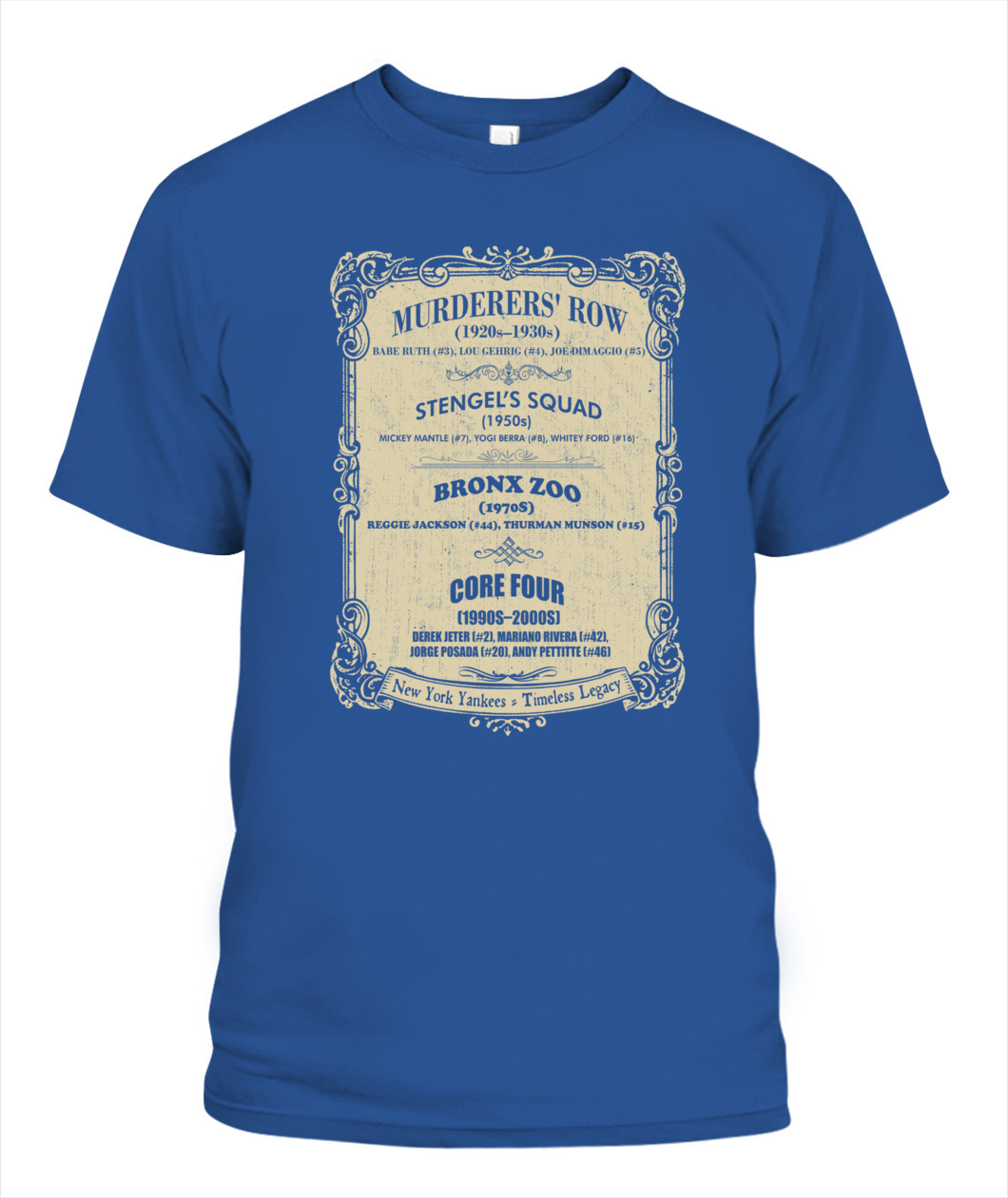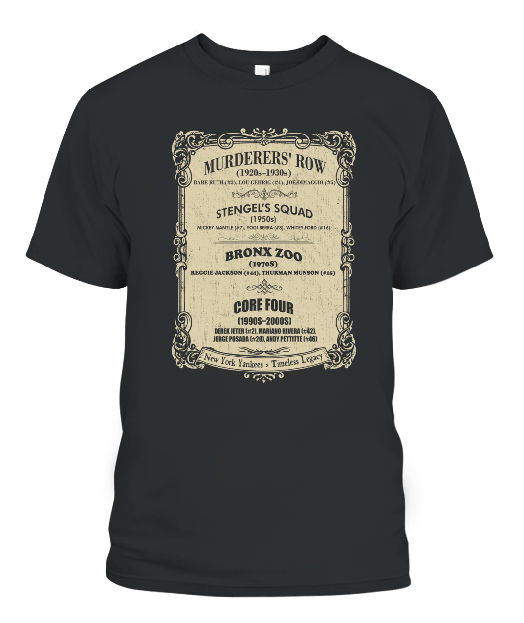Step into Yankees history with the “TIMELESS LEGACY” tee, honoring the legends from Murderers’ Row to The Core Four. A must-have for every true fan.