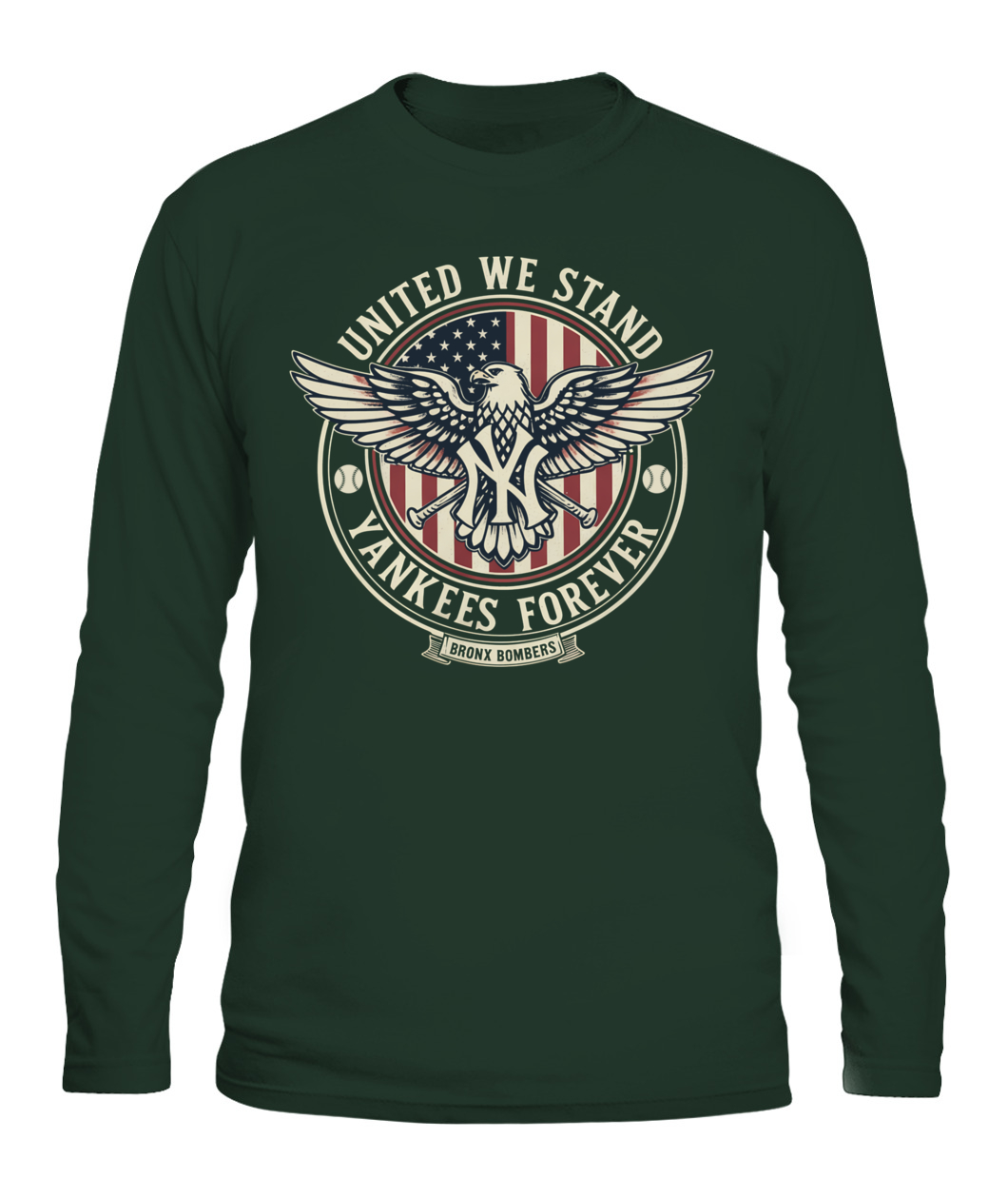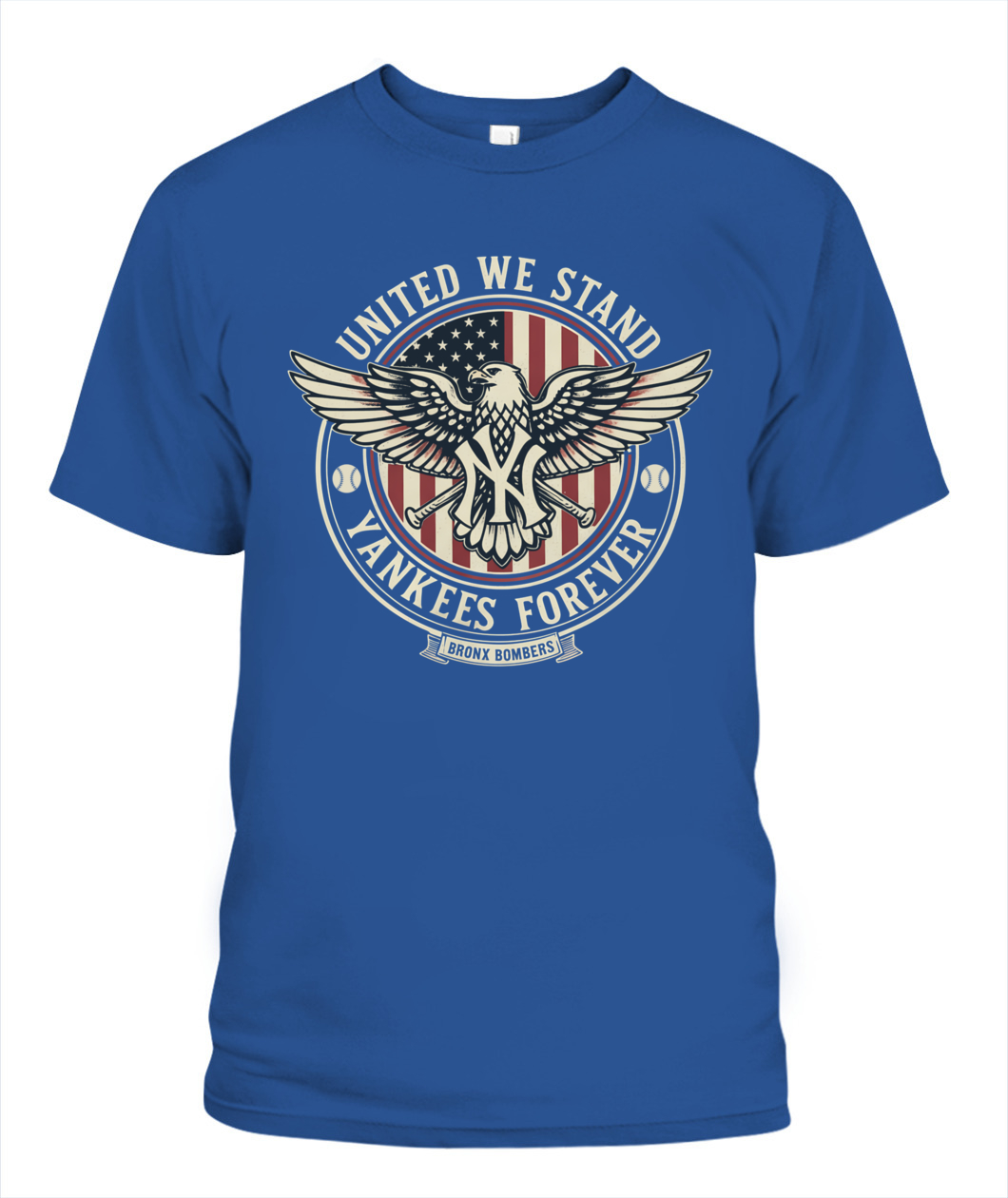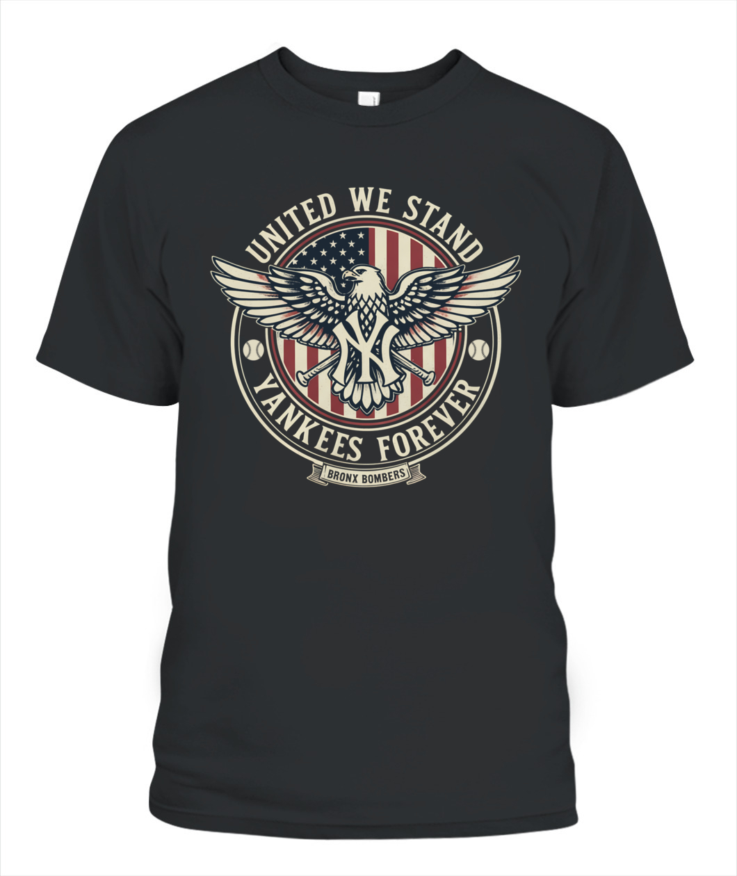 Stand proud with the “UNITED WE STAND, YANKEES FOREVER” tee, merging American pride and Yankees passion into one bold design.