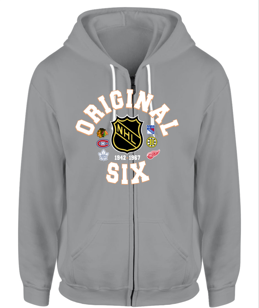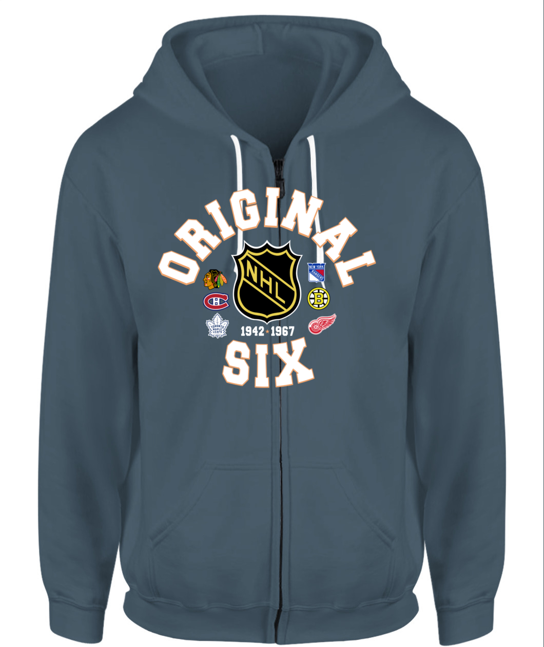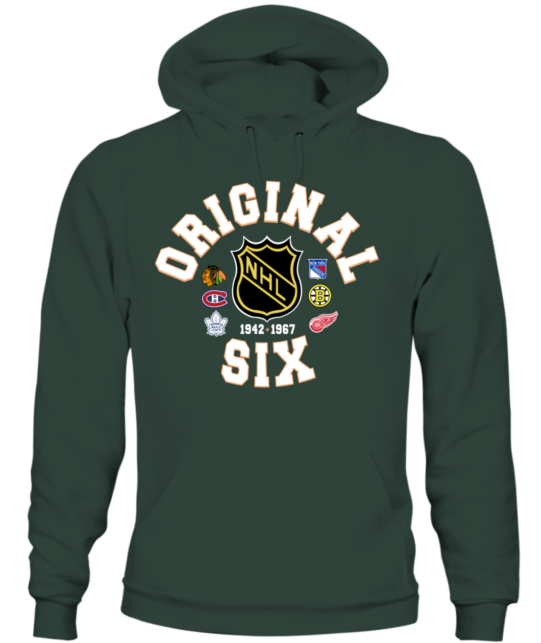 Wear the legacy of the league! This NHL Original Six Hoodie features the NHL Shield surrounded by all six team logos, celebrating the historic 1942-1967 era. ORIGINAL SIX!