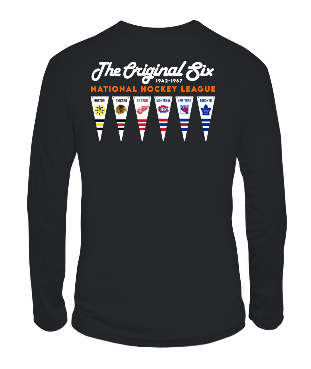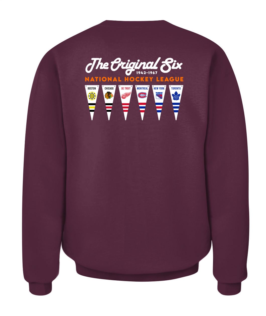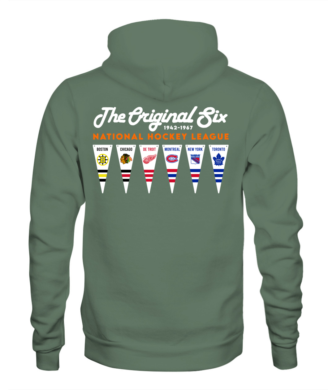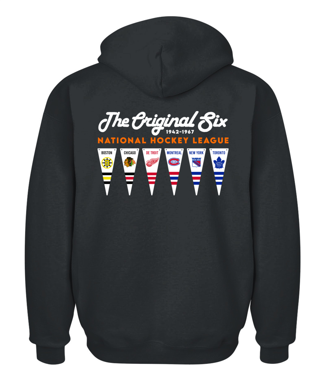 The ultimate heritage piece! This Original Six Hoodie features six pennant flags celebrating the founding NHL teams and the legendary 1942-1967 era.