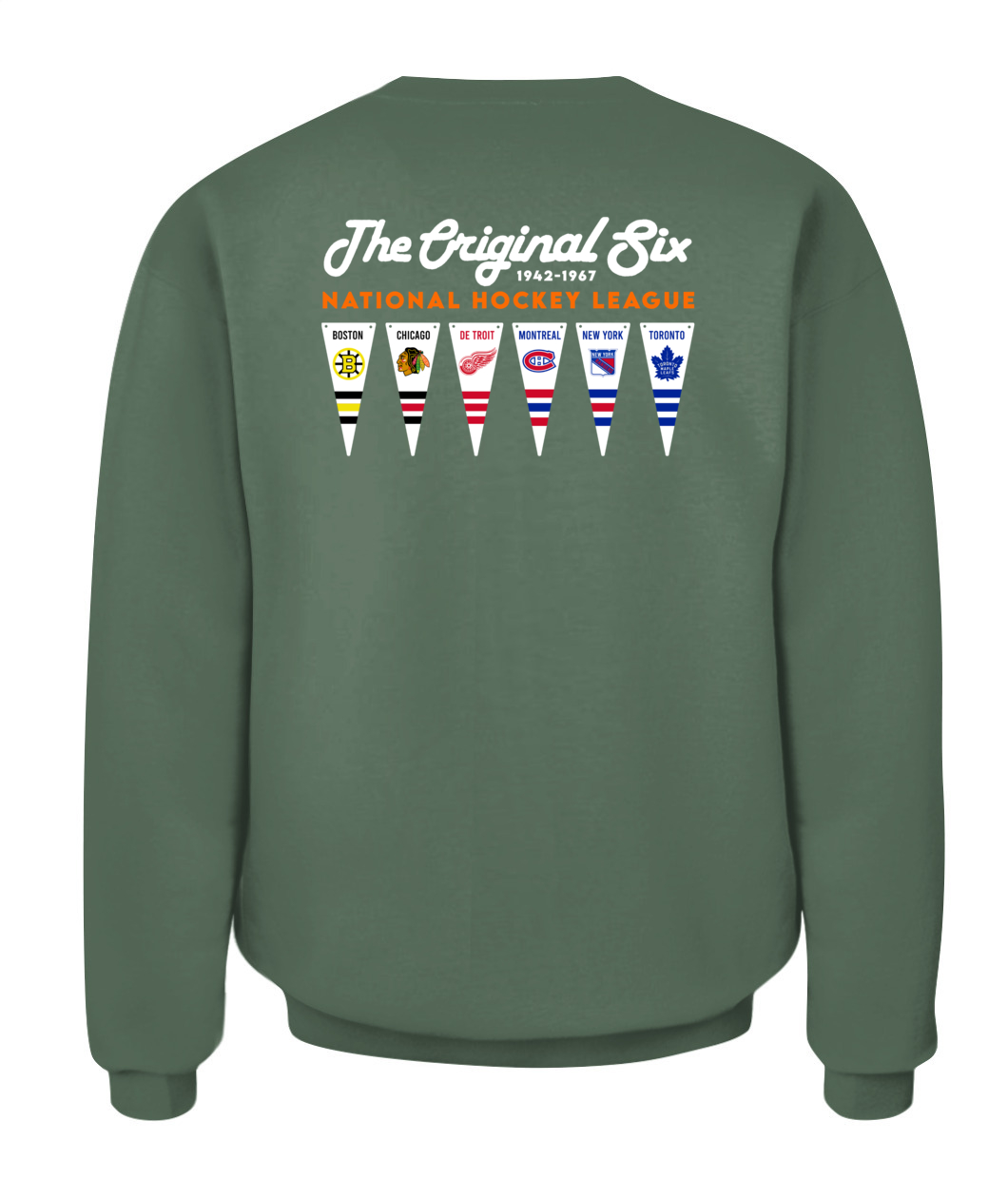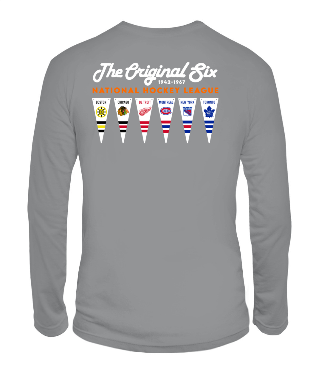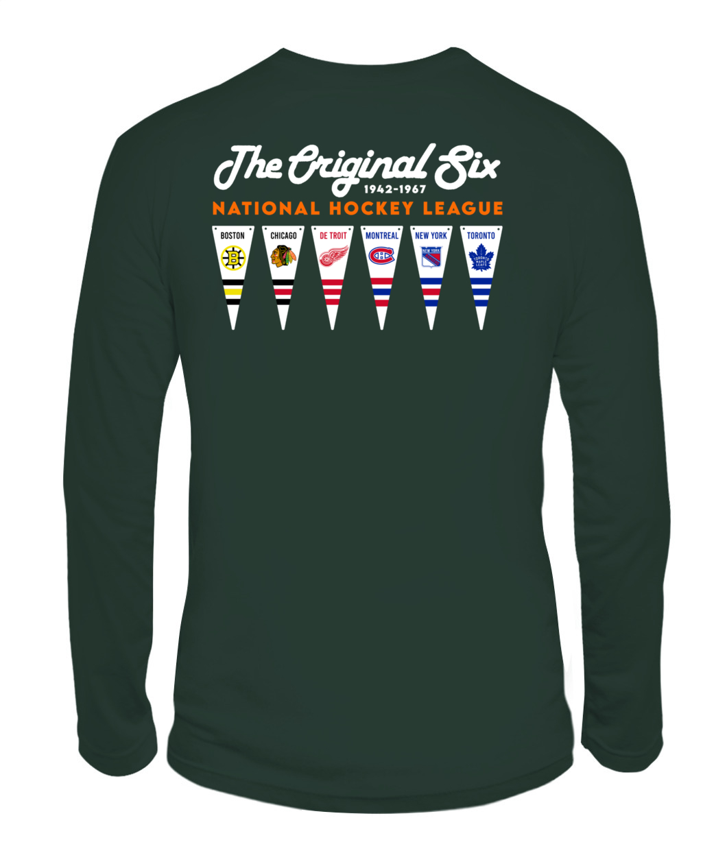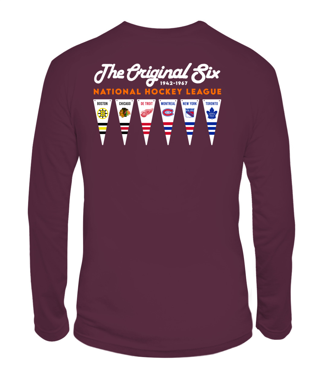 The ultimate heritage piece! This Original Six Hoodie features six pennant flags celebrating the founding NHL teams and the legendary 1942-1967 era.