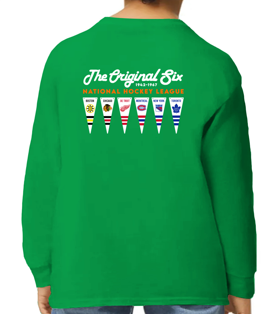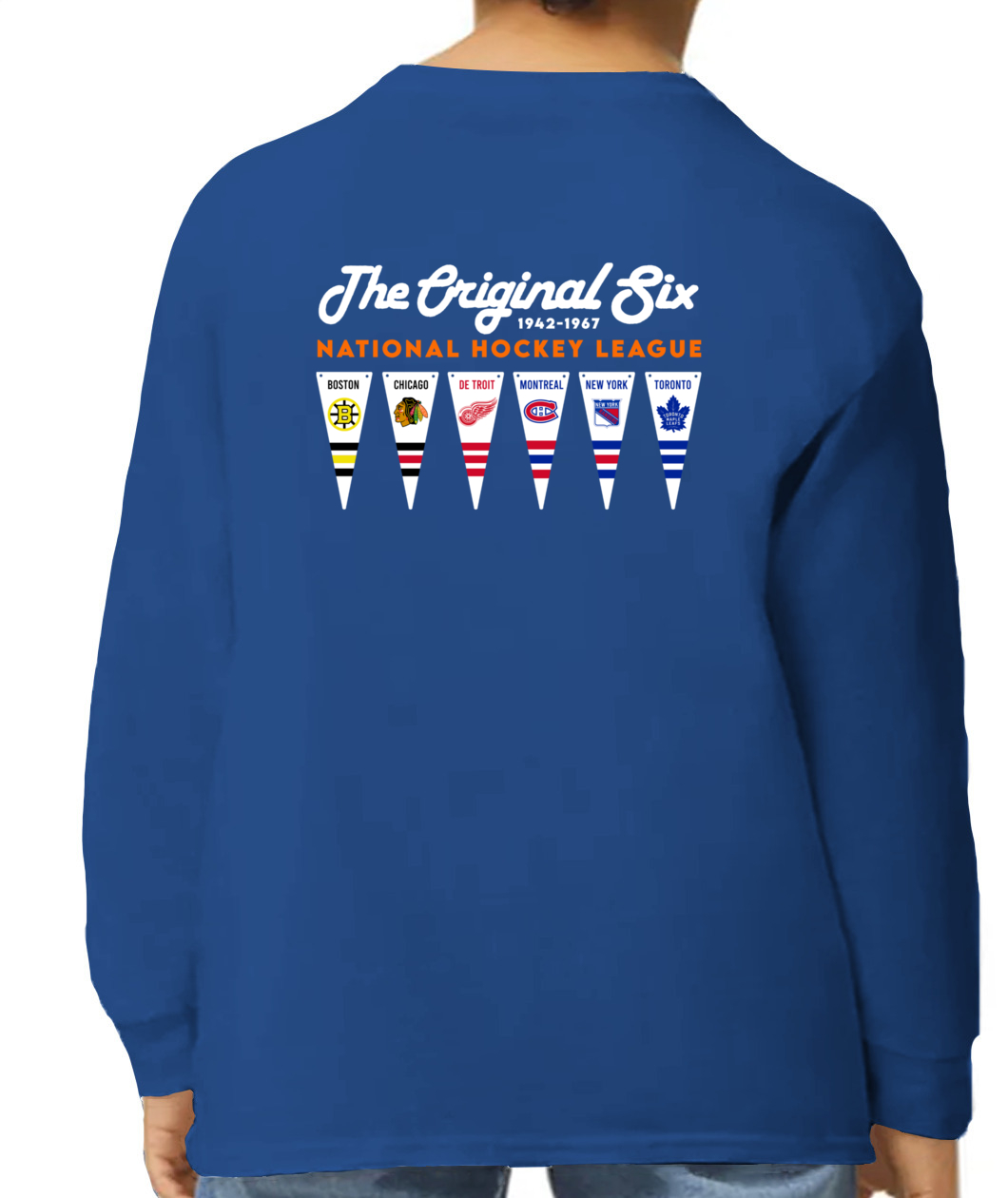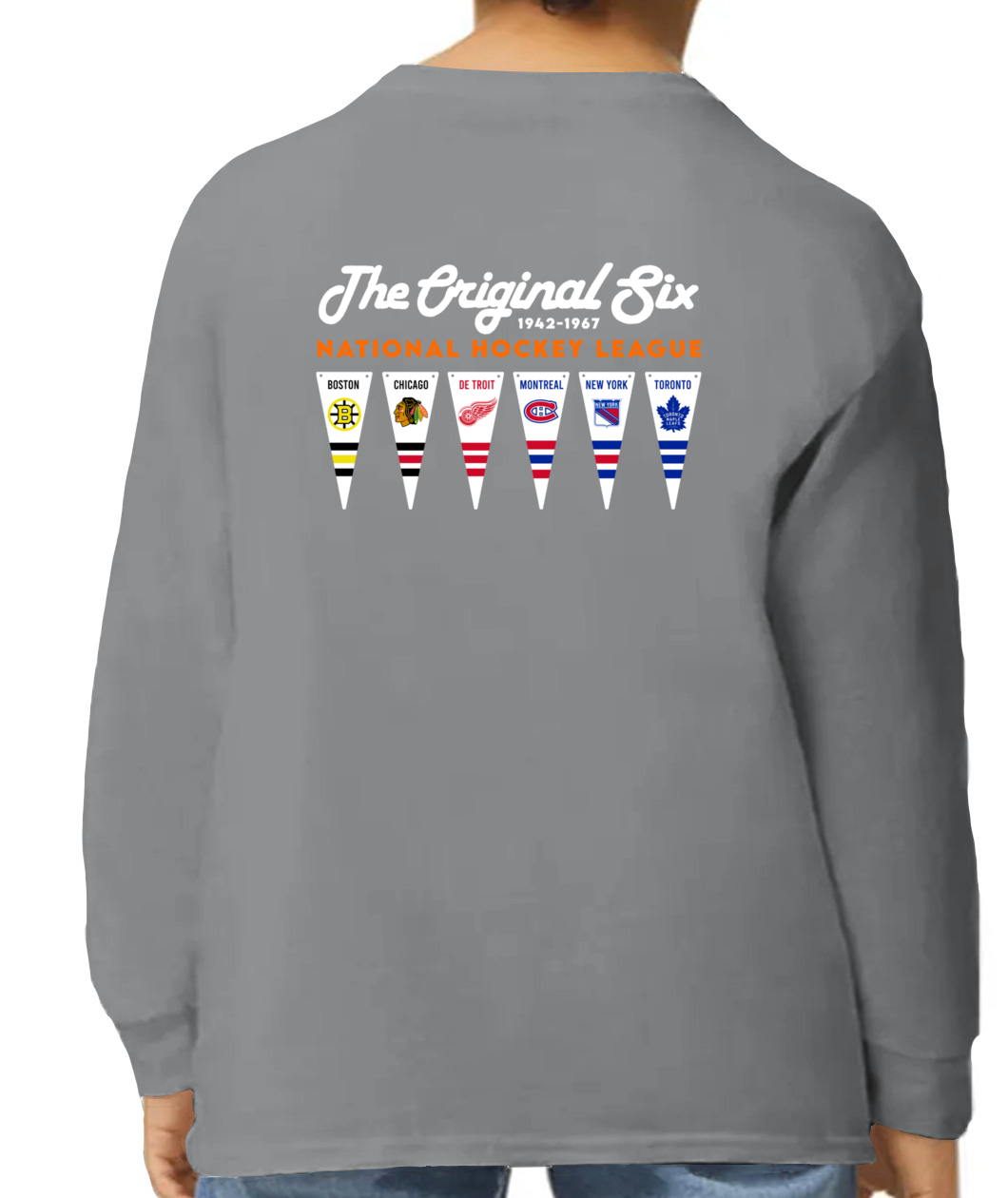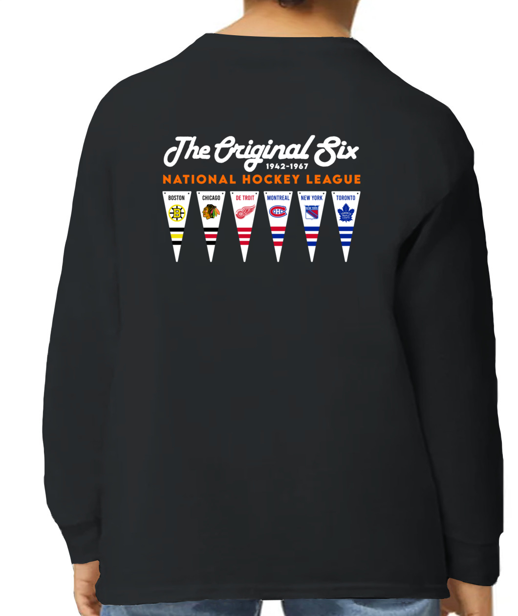 The ultimate heritage piece! This Original Six Hoodie features six pennant flags celebrating the founding NHL teams and the legendary 1942-1967 era.