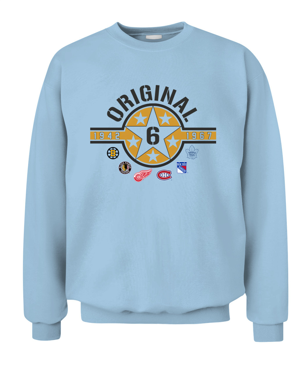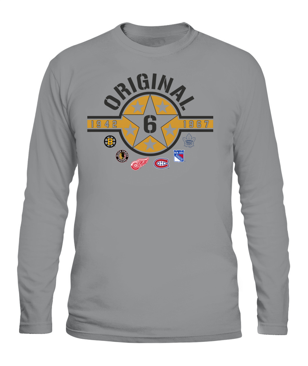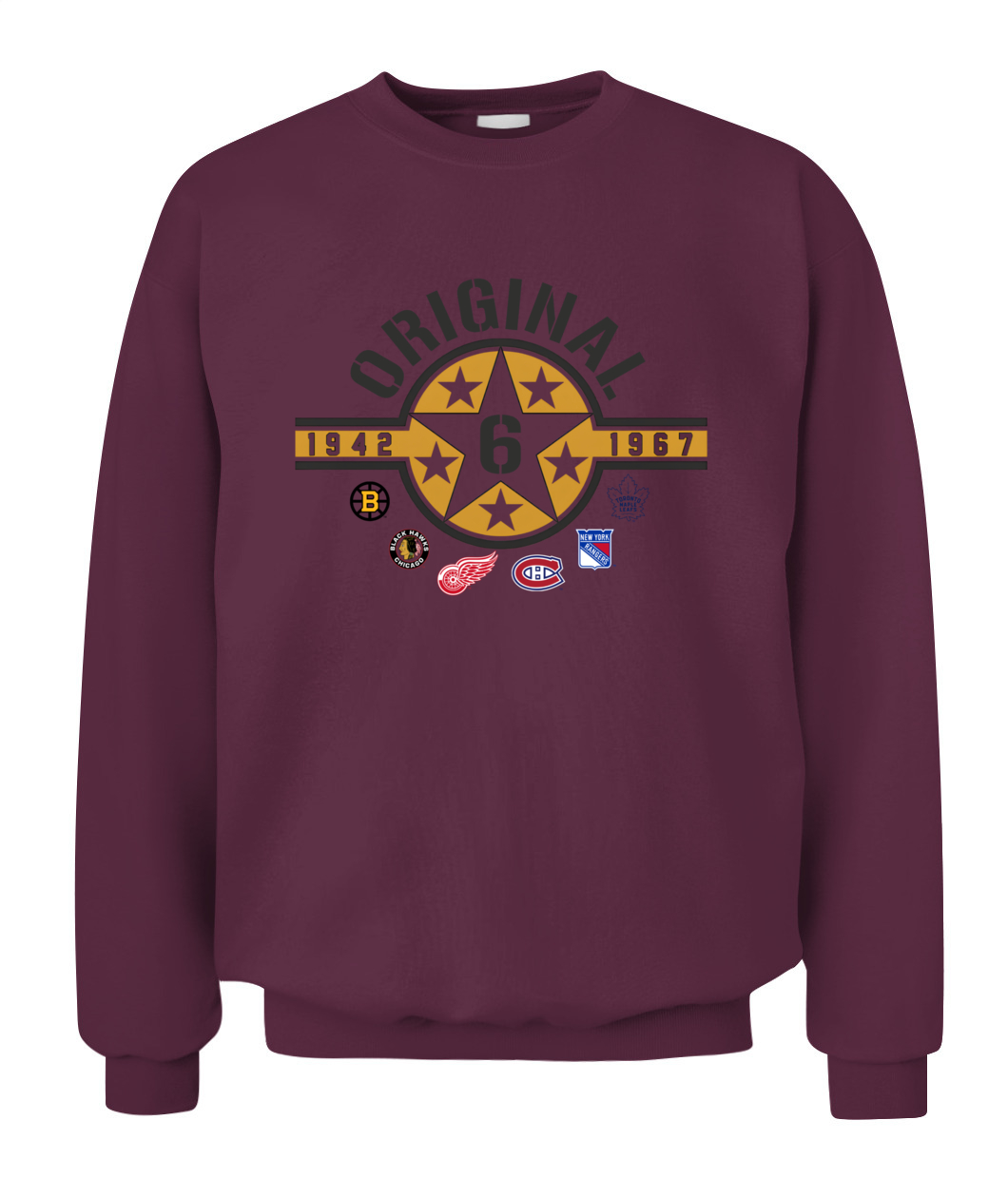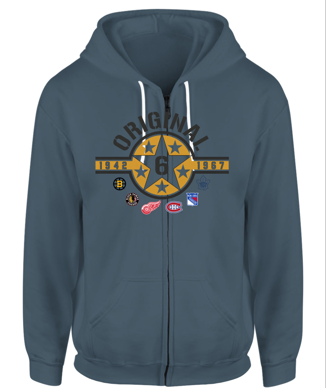 Wear the founding stars of the NHL! This Original Six Hoodie features a bold Star Badge with the number 6, honoring all six teams and the historic 1942-1967 era. ORIGINAL!