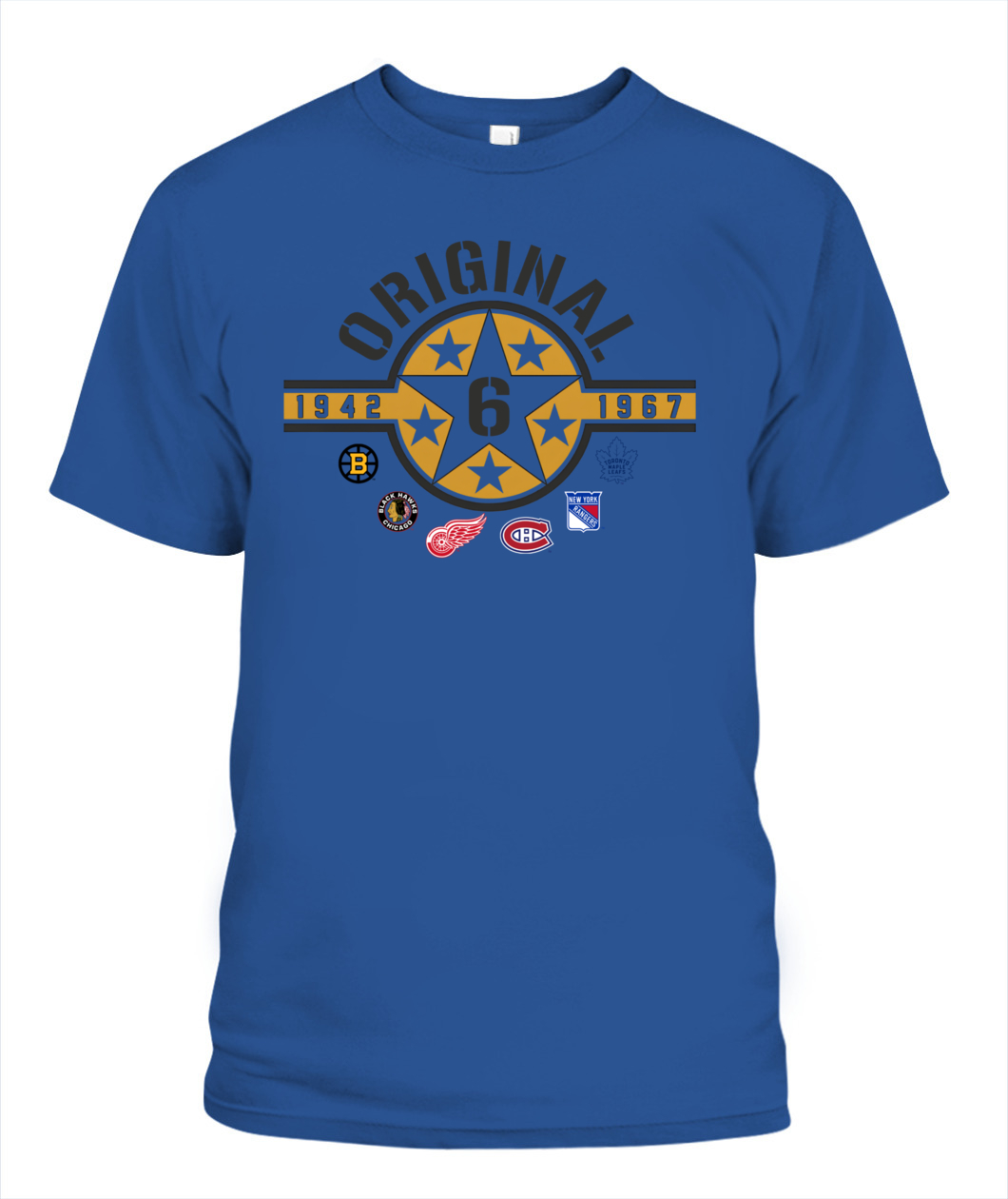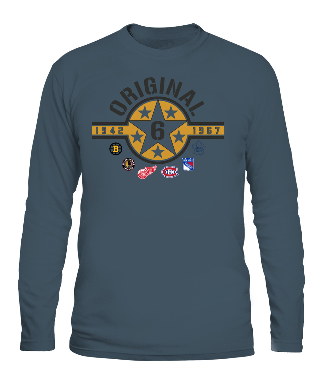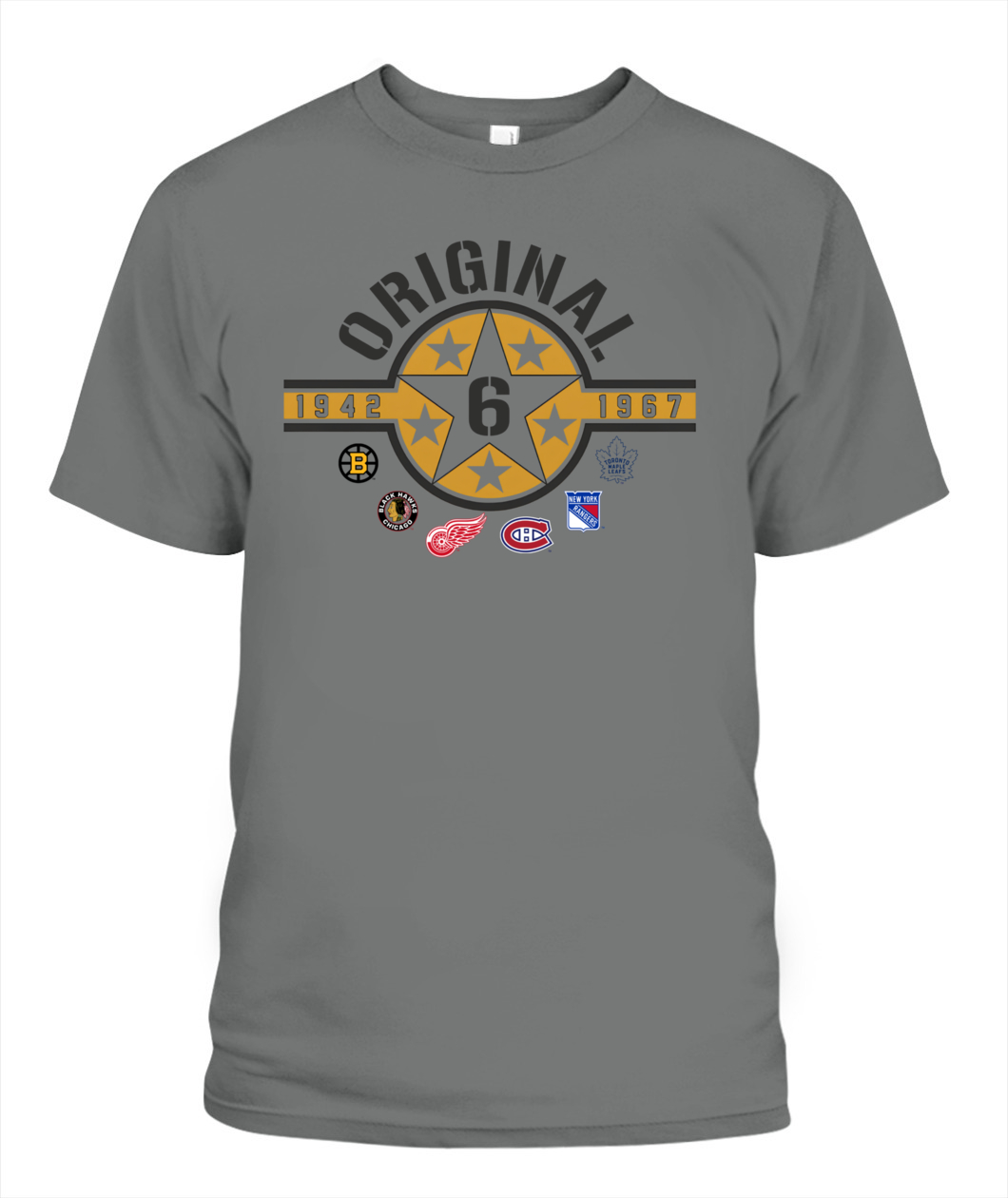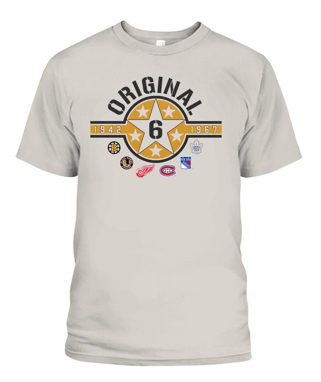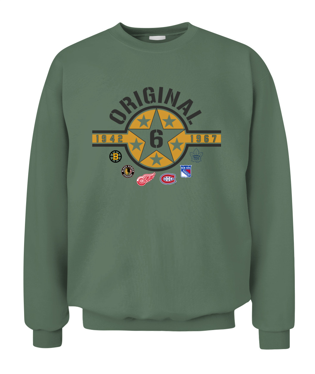 Wear the founding stars of the NHL! This Original Six Hoodie features a bold Star Badge with the number 6, honoring all six teams and the historic 1942-1967 era. ORIGINAL!