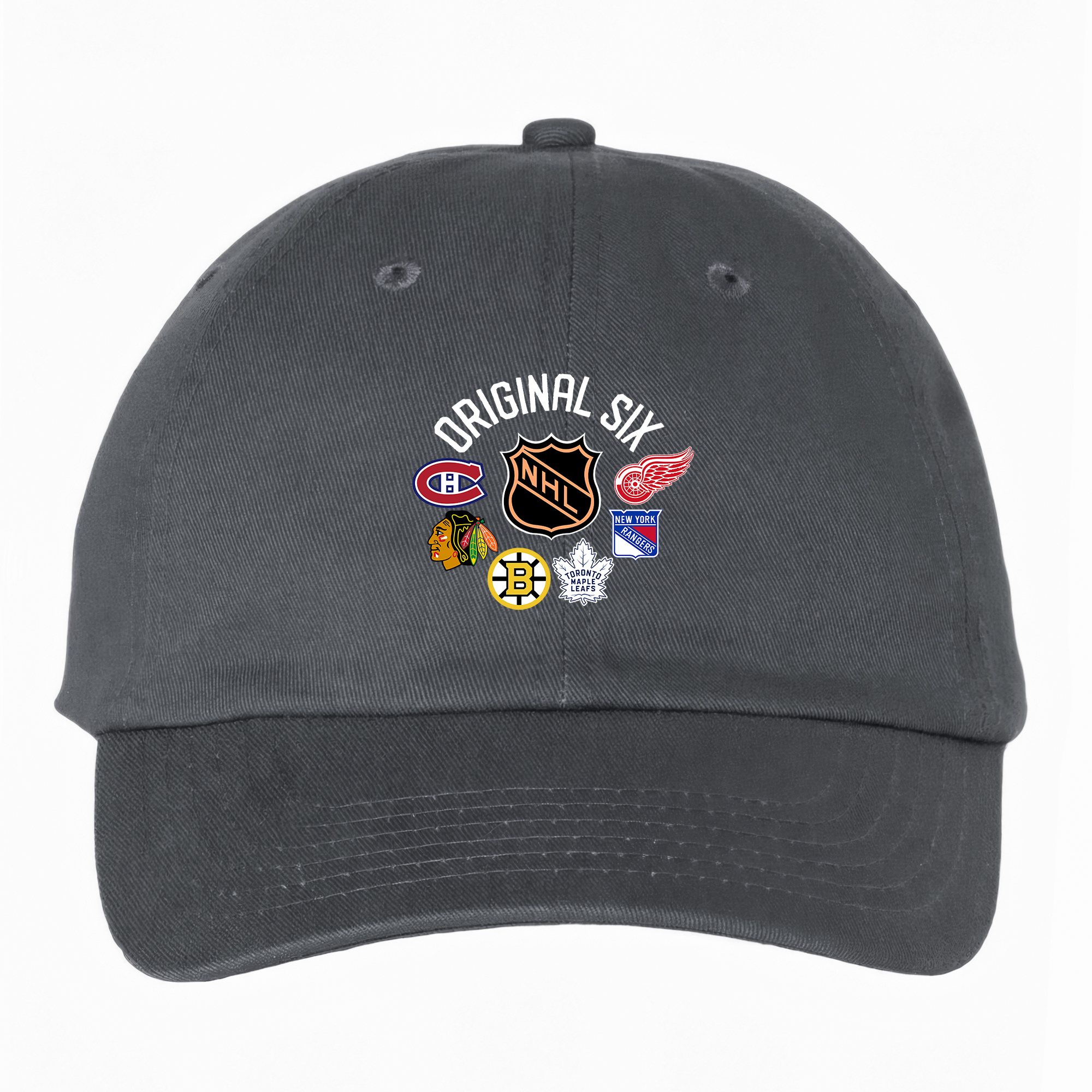A vintage classic! This NHL Dad Hat pays tribute to "The Original Six" with a bio-washed finish and all six founding team logos.