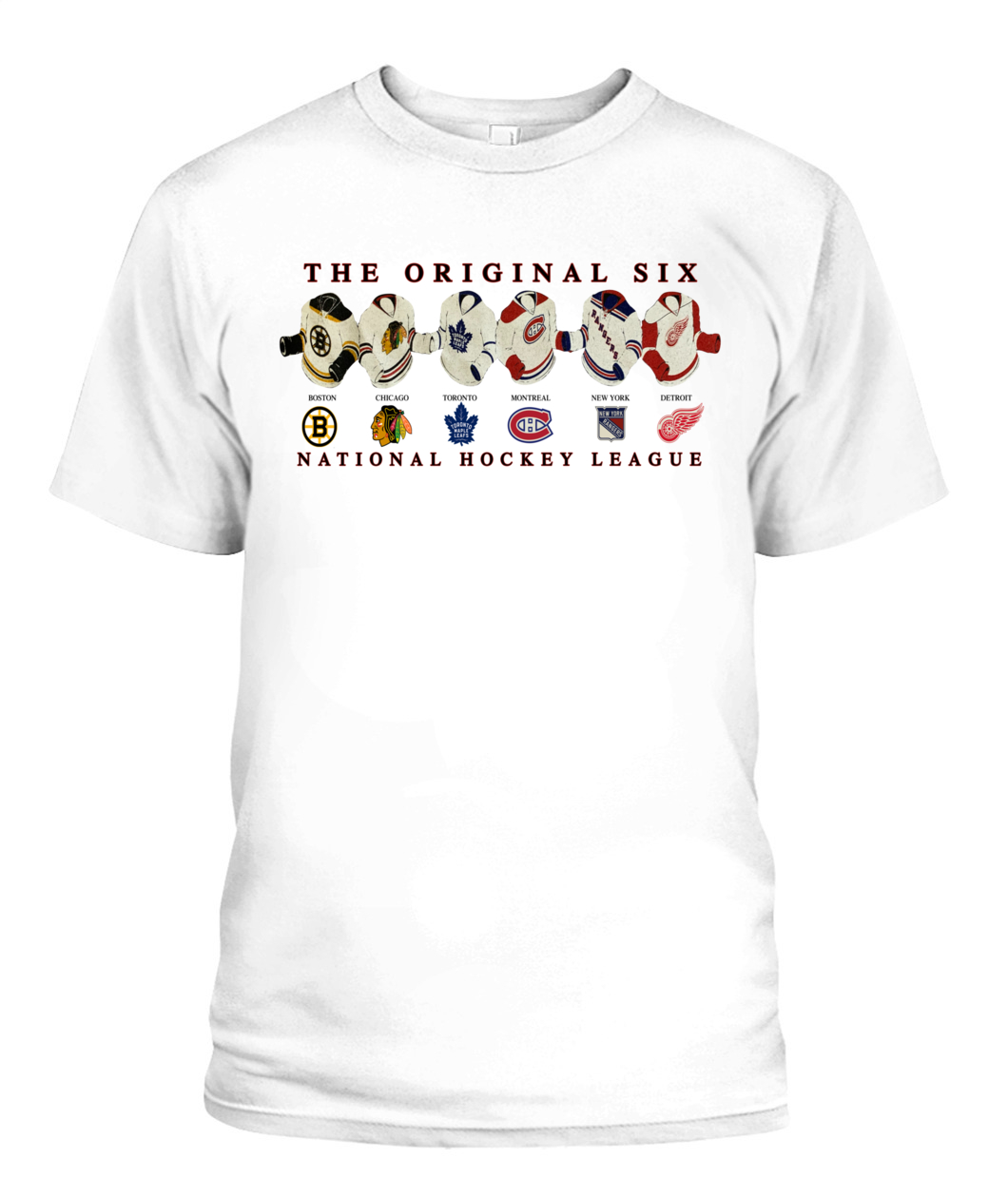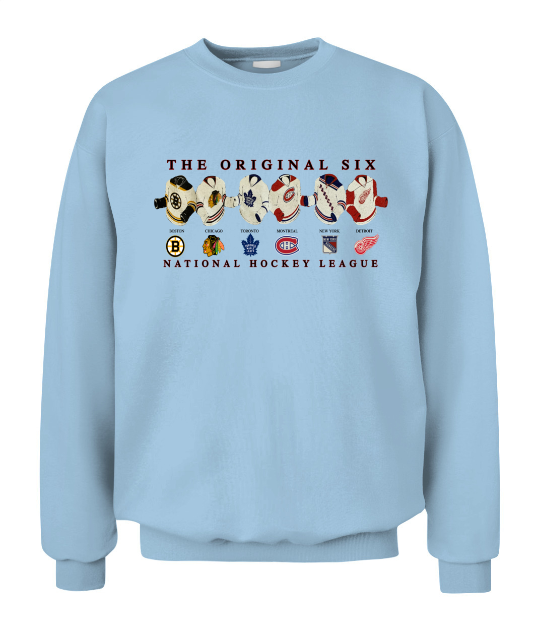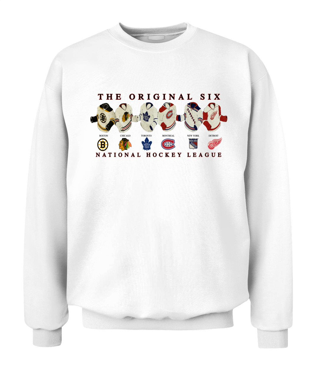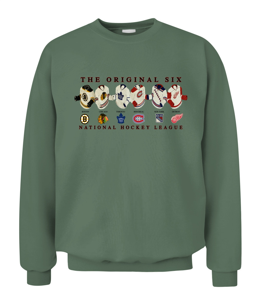 Honor NHL History! This hoodie features the classic jerseys of all "The Original Six" teams—Boston, Chicago, Toronto, Montreal, New York, and Detroit. A true heritage piece! 👑🏒