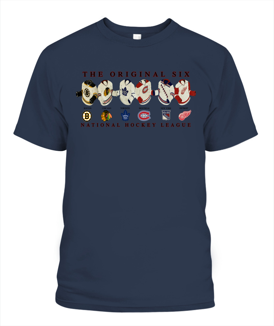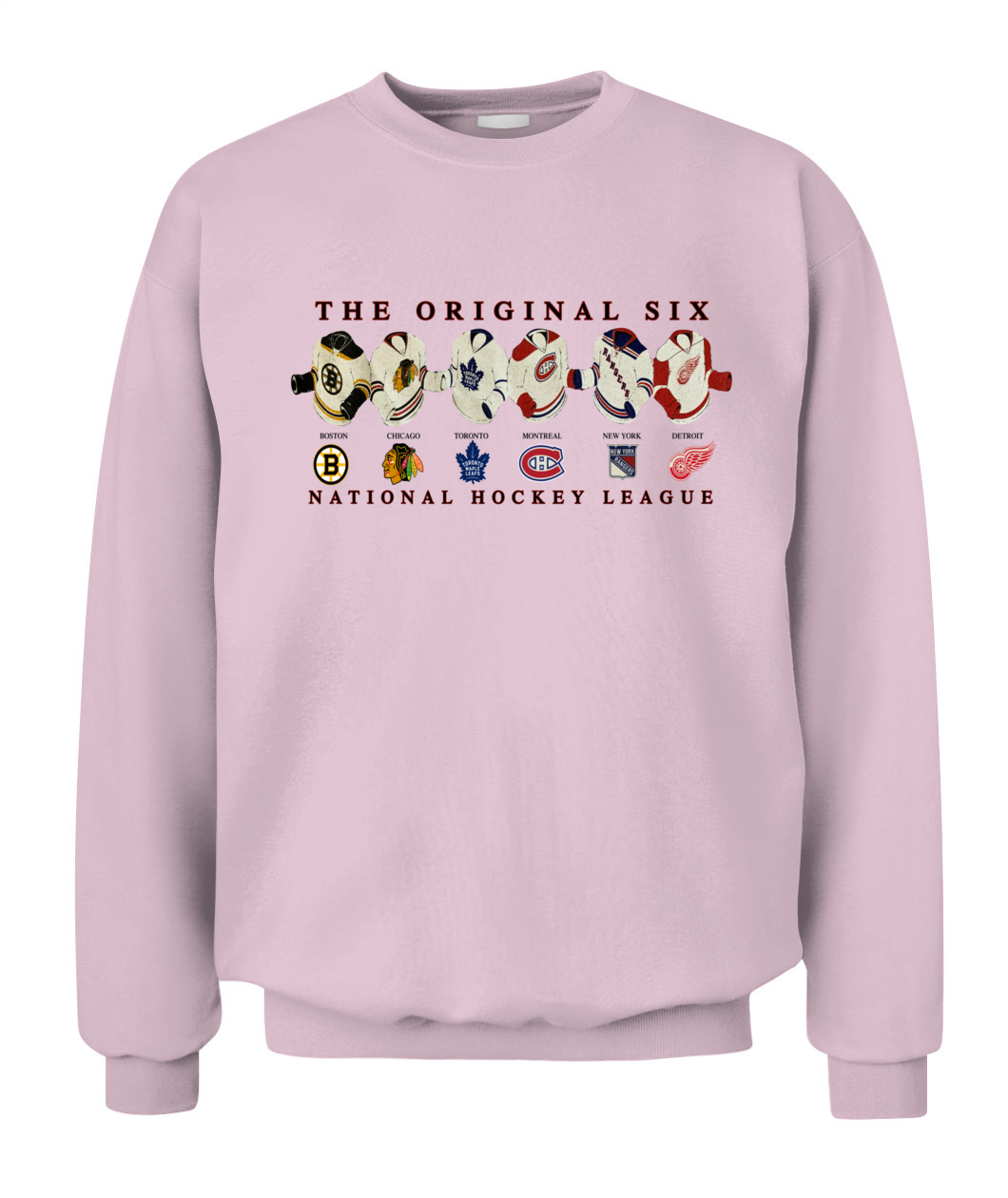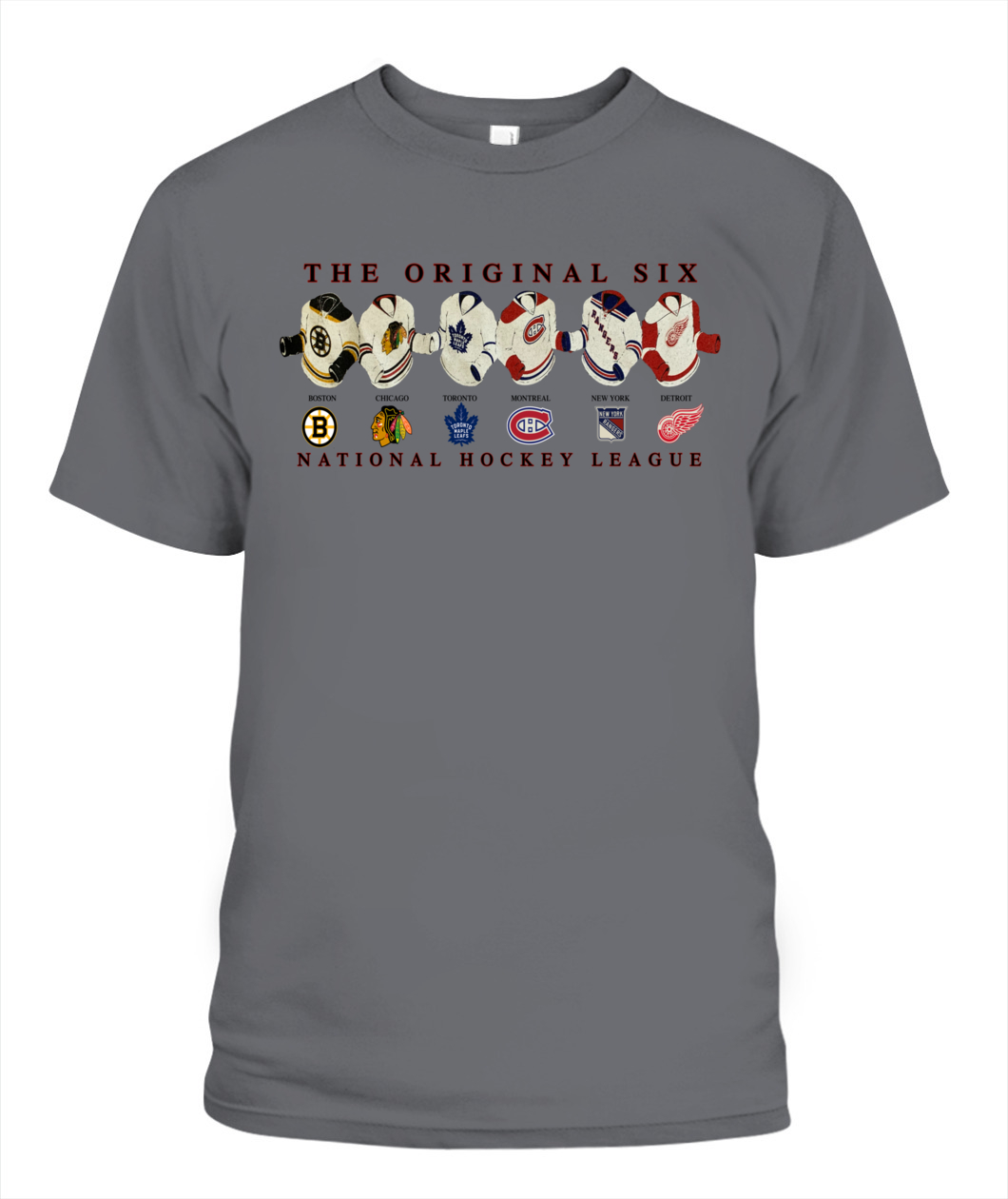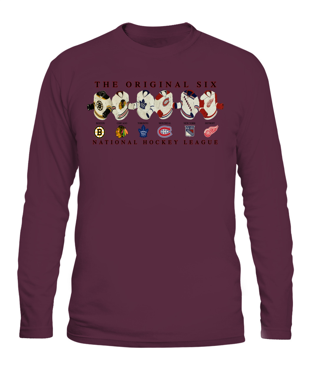Honor NHL History! This hoodie features the classic jerseys of all "The Original Six" teams—Boston, Chicago, Toronto, Montreal, New York, and Detroit. A true heritage piece! 👑🏒